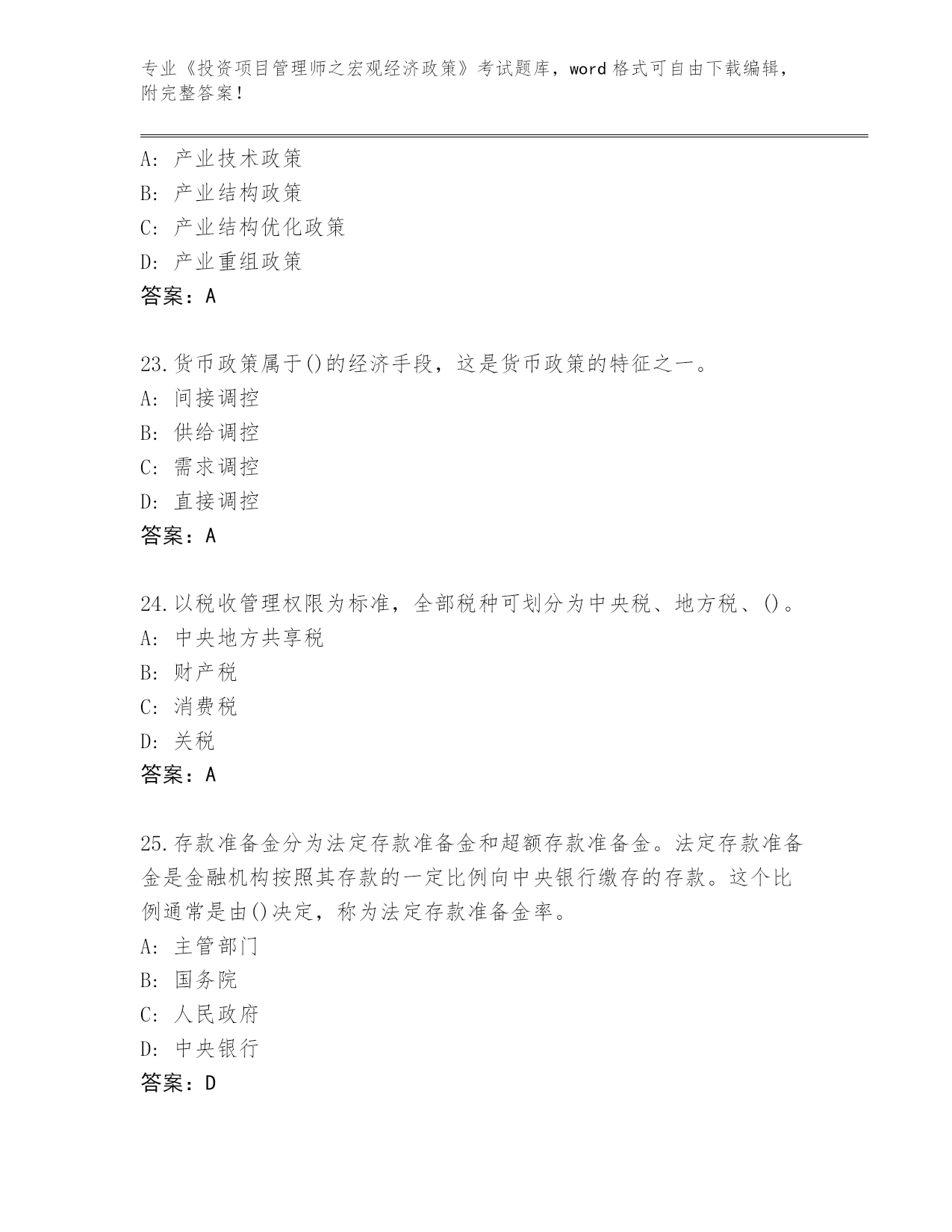 2023-2024年陕西省碑林区《投资项目管理师之宏观经济政策》考试大全【名师推荐】