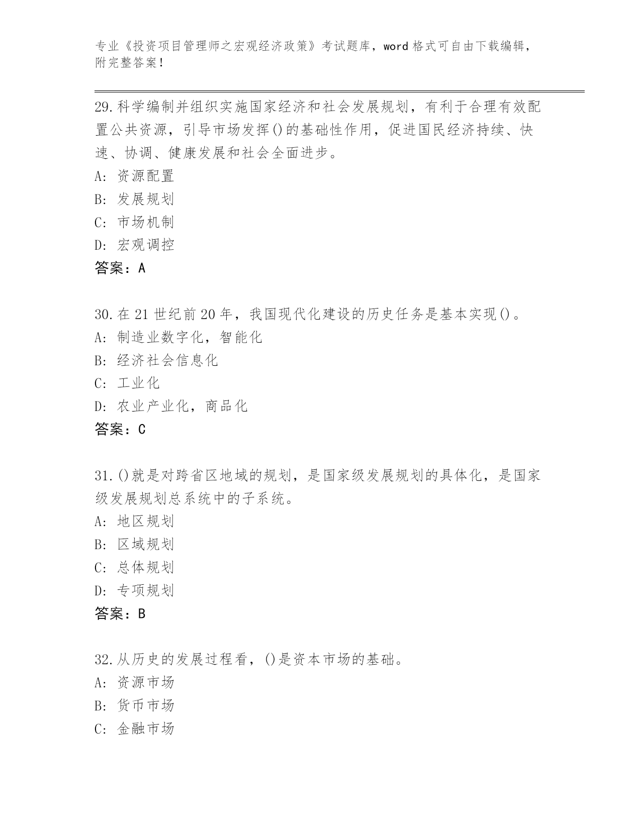江西省吉州区2024《投资项目管理师之宏观经济政策》考试必刷200题大全(名师推荐)