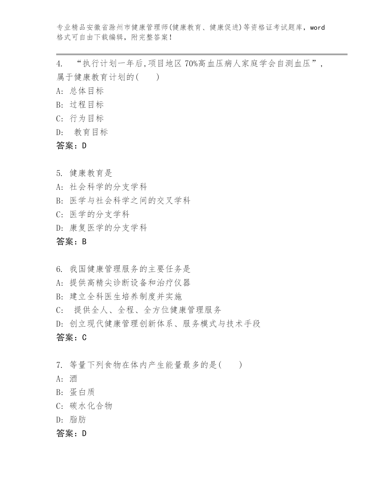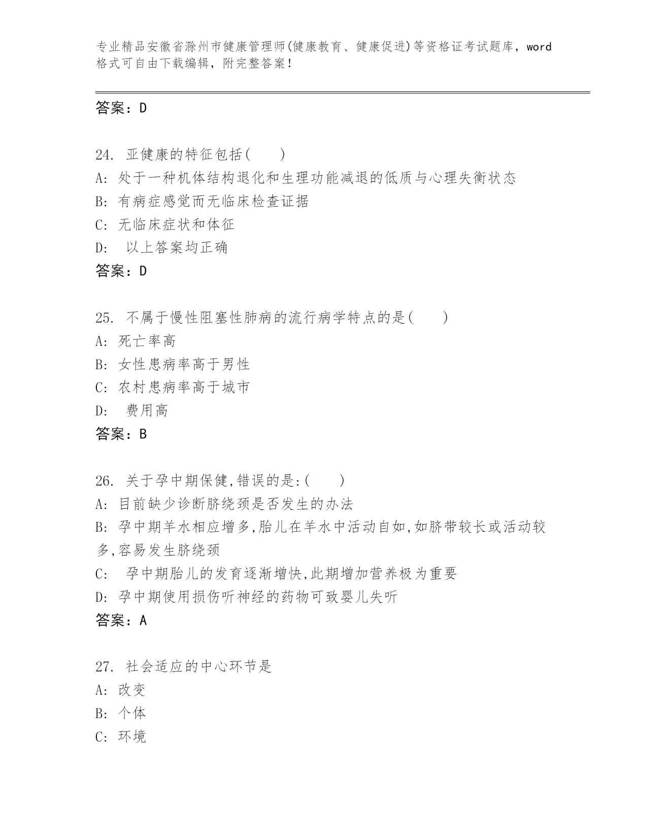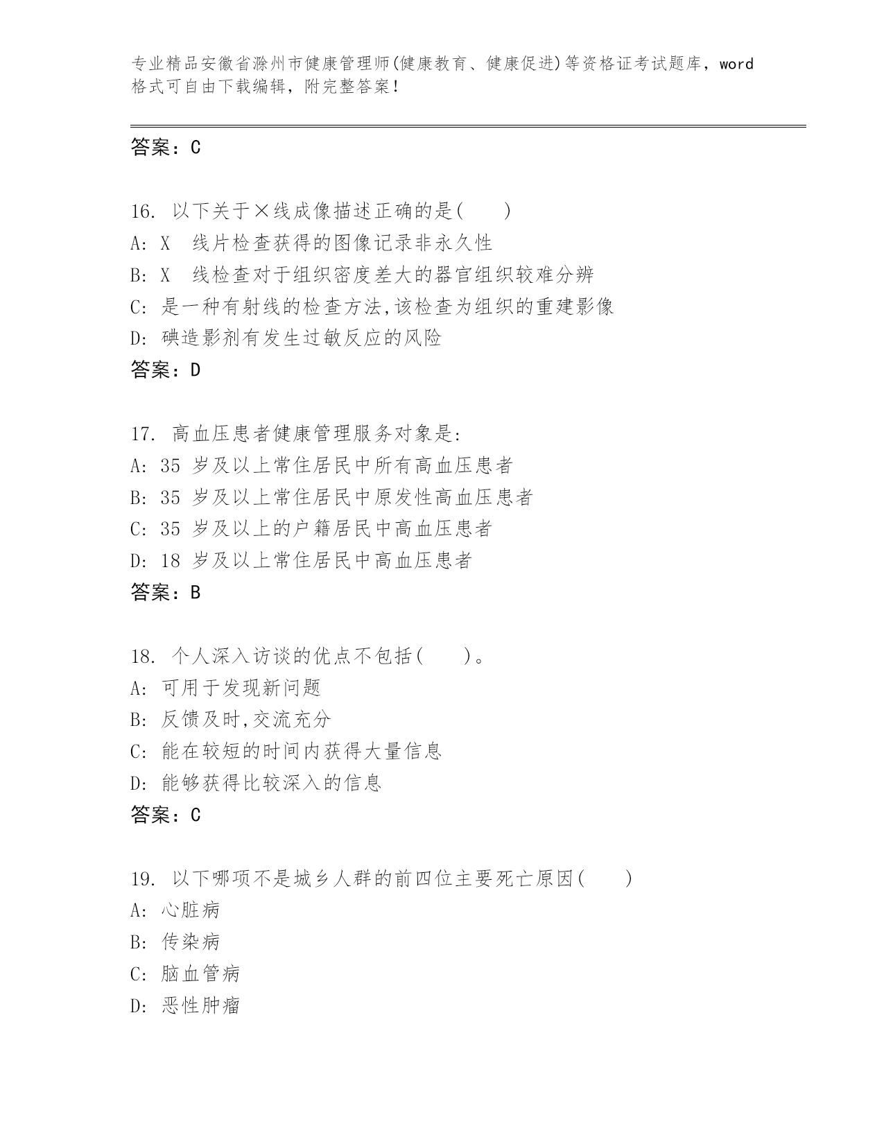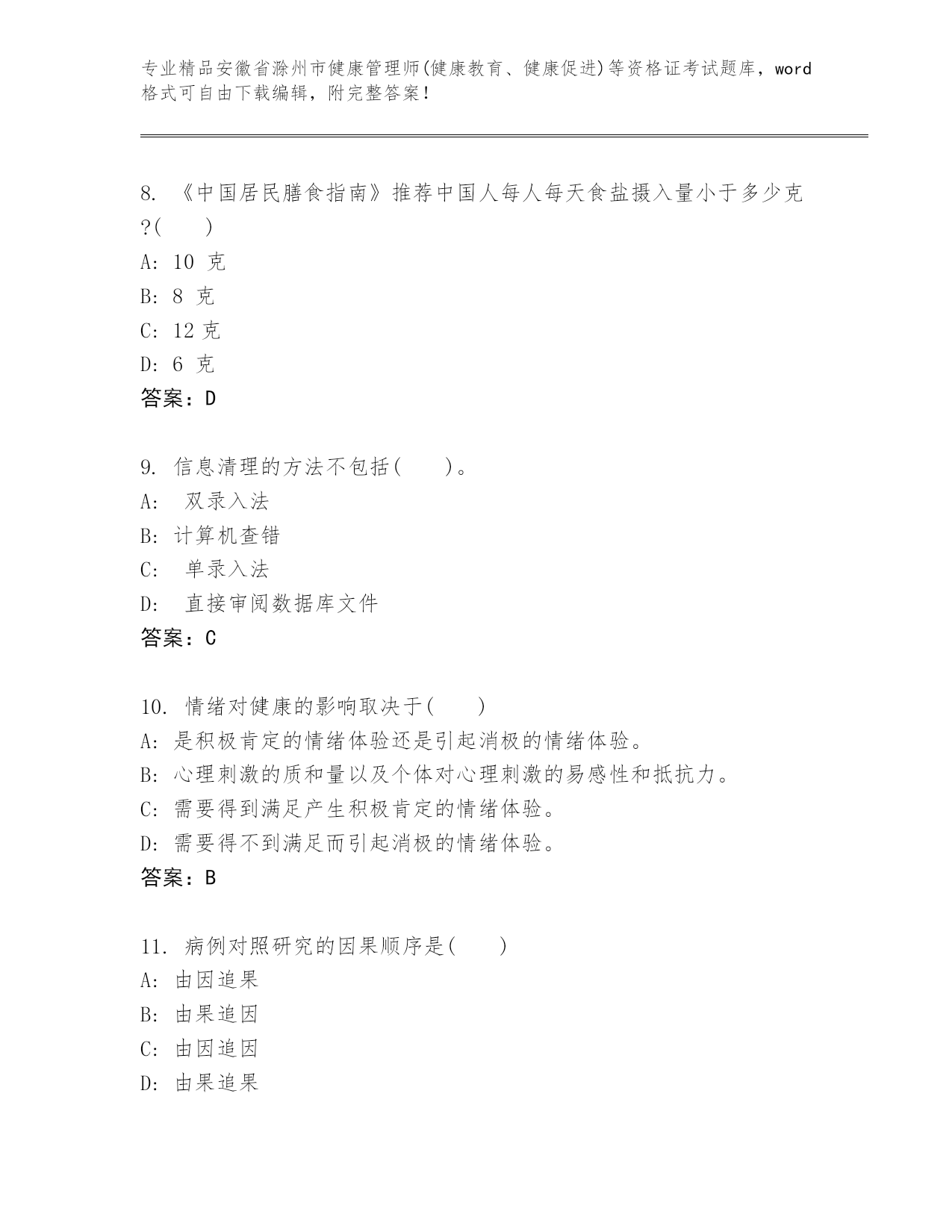 历年安徽省滁州市健康管理师(健康教育、健康促进)等资格证考试真题精品(实用)