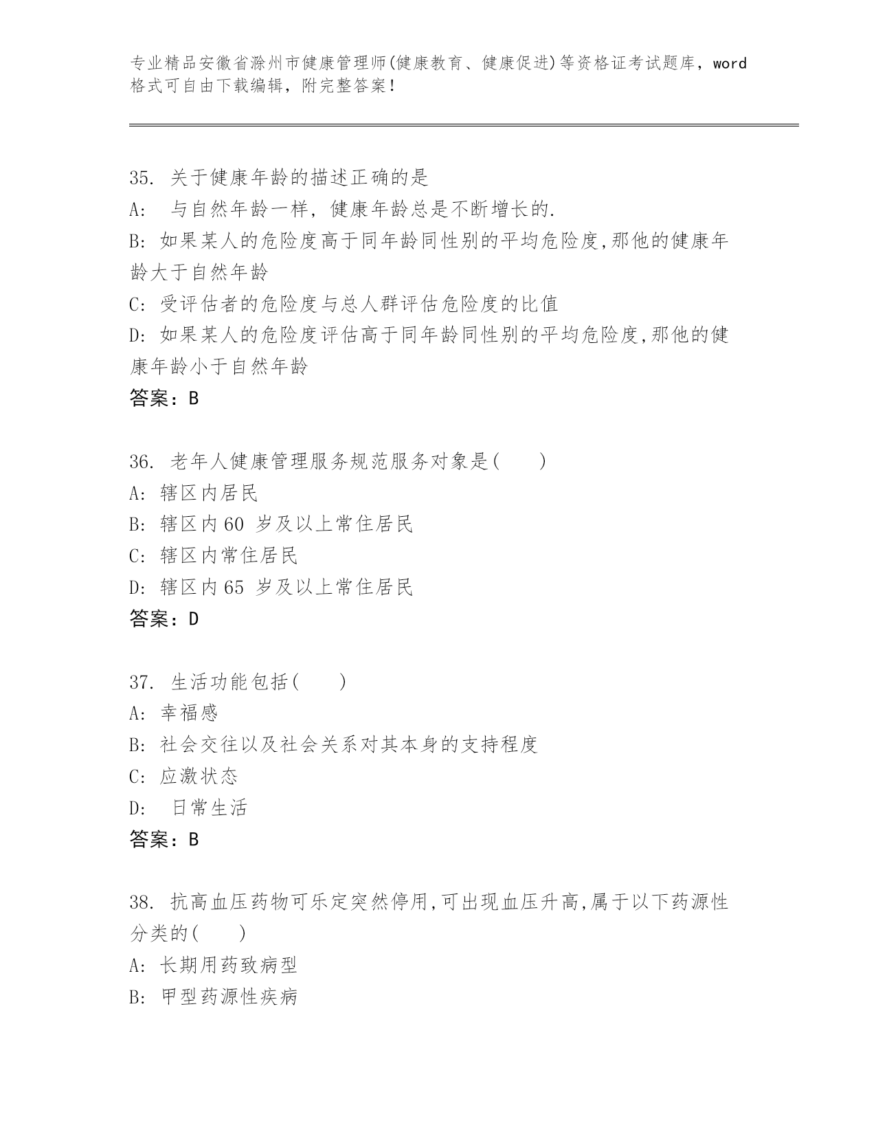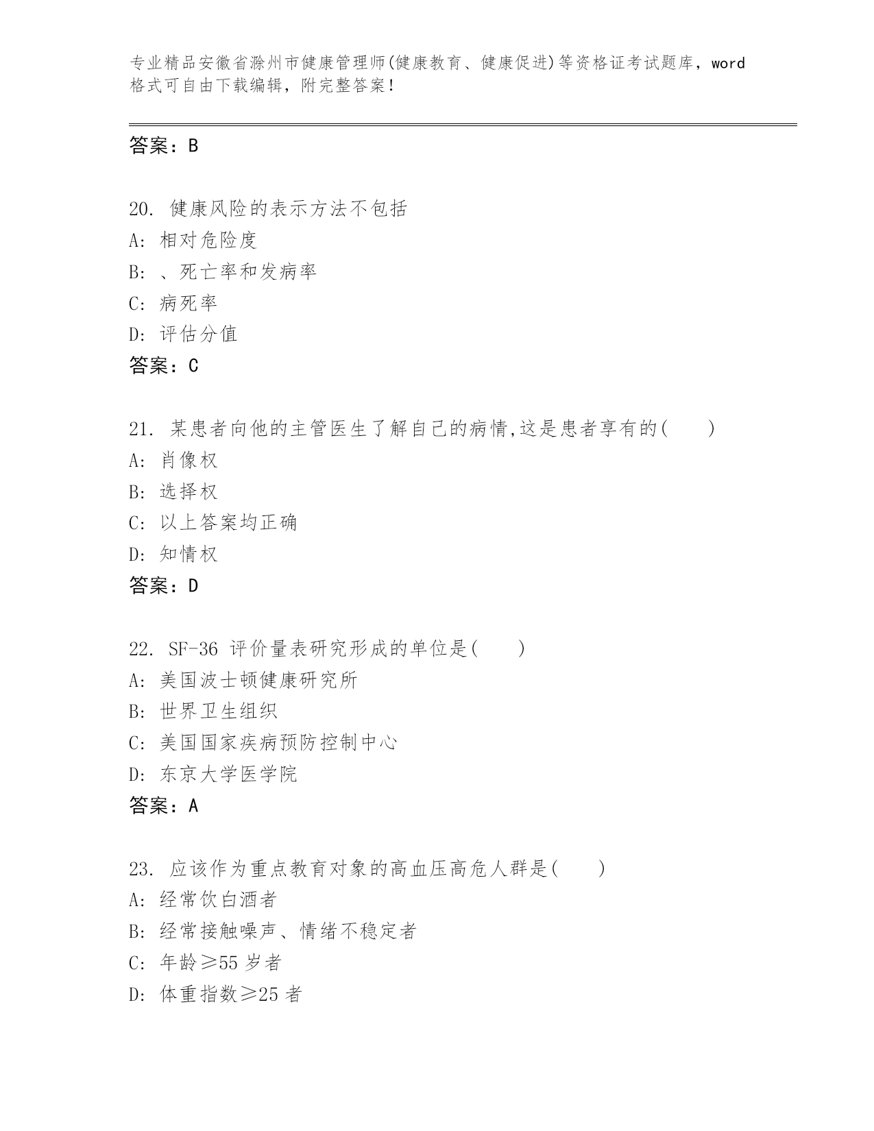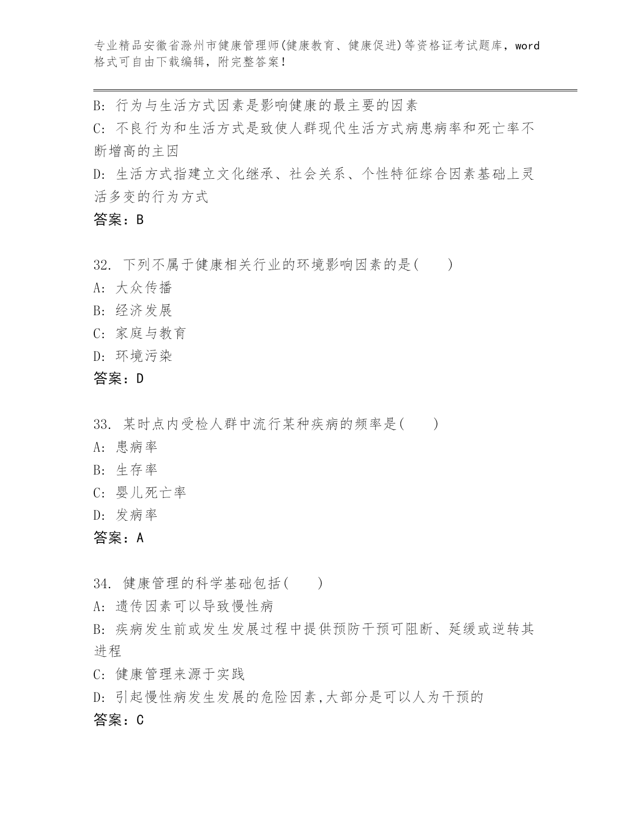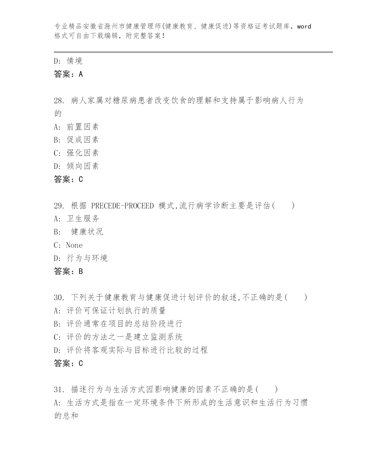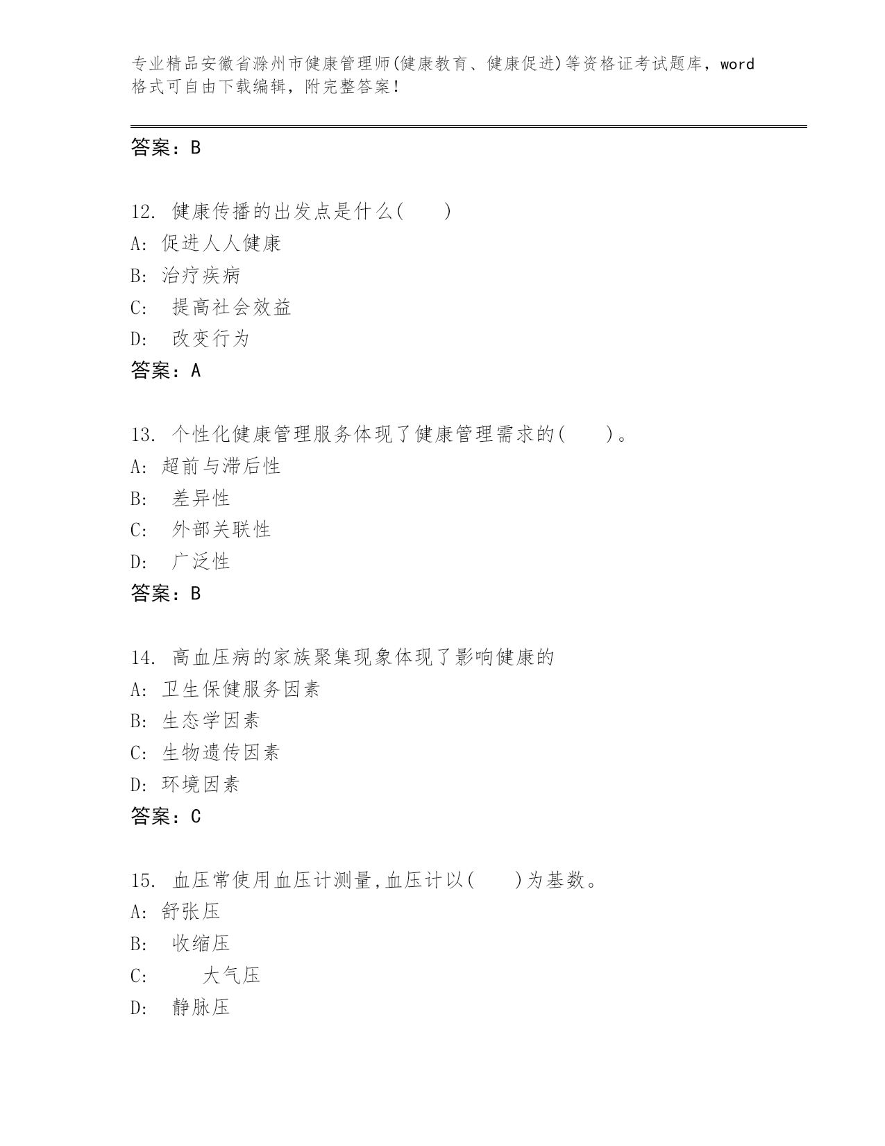 历年安徽省滁州市健康管理师(健康教育、健康促进)等资格证考试真题精品(实用)
