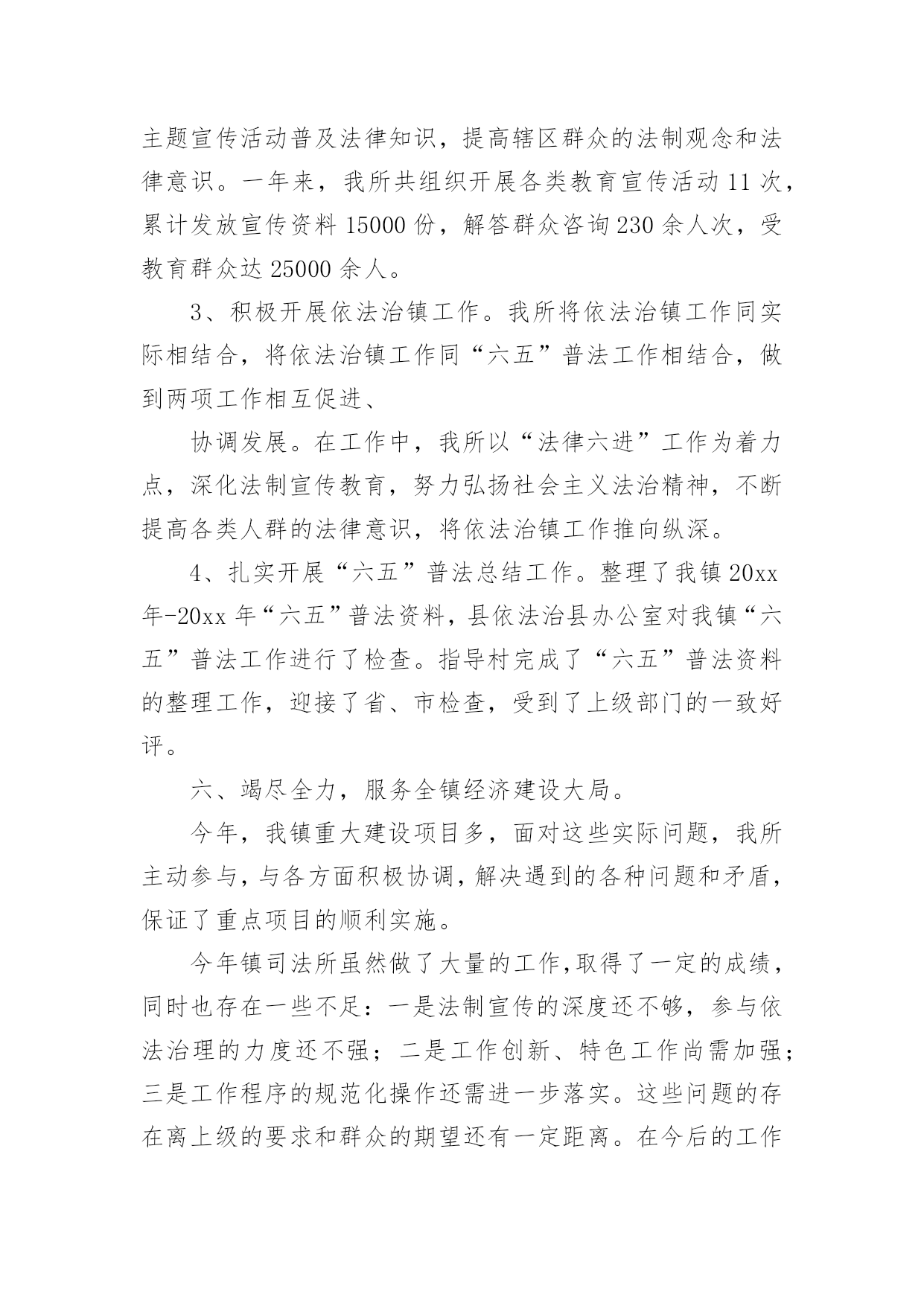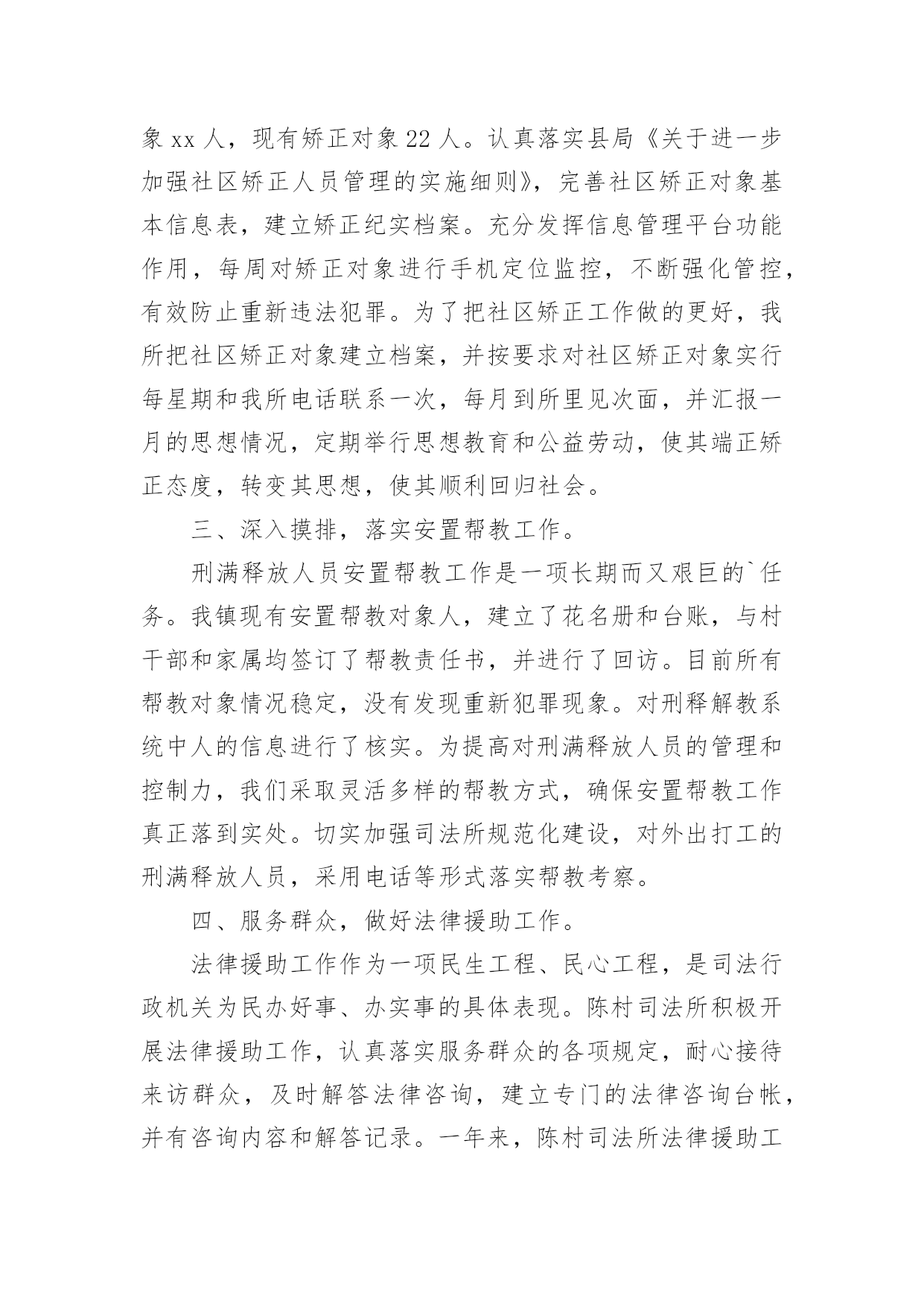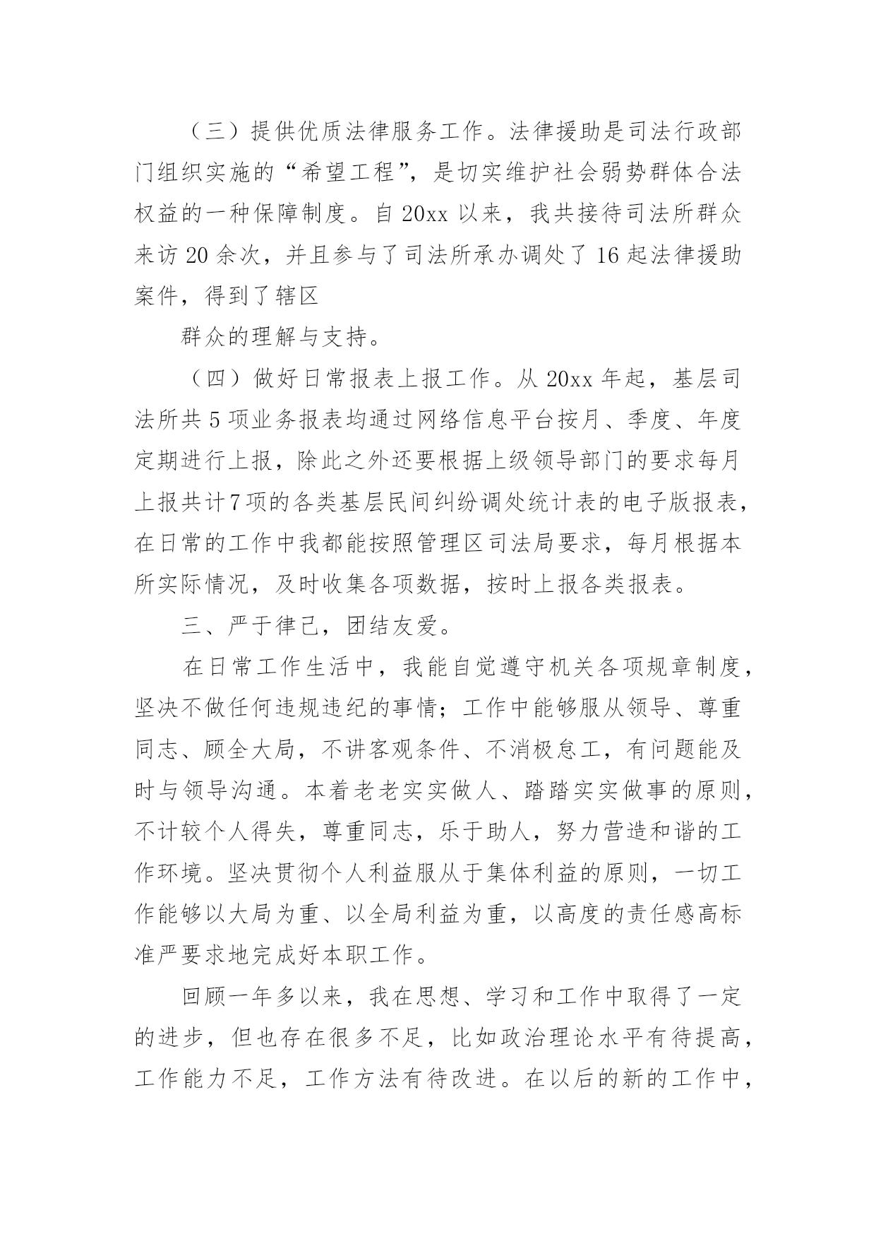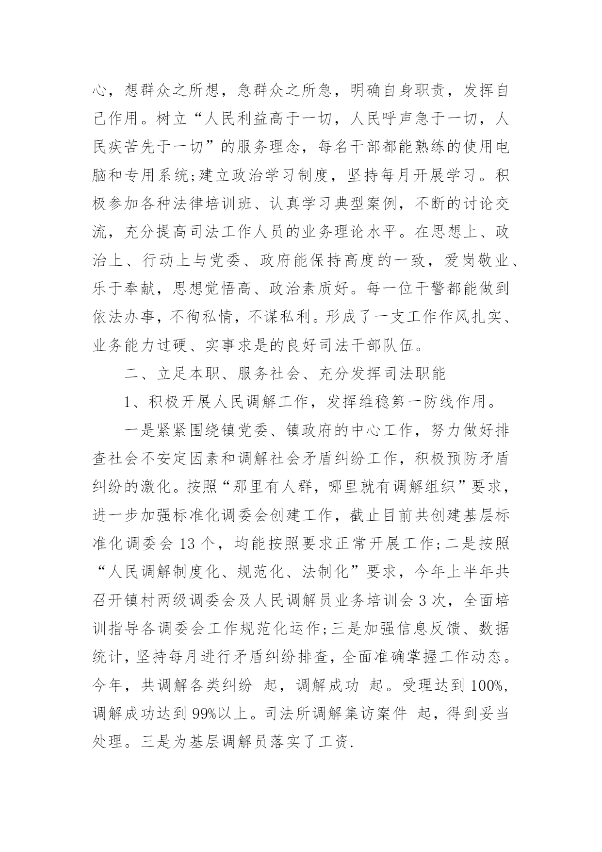 司法所所长个人总结总结是把一定阶段内的有关情况分析研究,做出有指导性的经验方法以及结论的书面材料,通过它可以正确认识以往学习和工作中的优缺点,因此我们要做好归纳,写好总结。我们该怎么去写总结呢?下面是小编为大家收集的司法所所长个人总结,仅供参考,欢迎大家阅读。司法所所长个人总结1xx司法所在镇党委、政府的领导下,在各级指导和大力支持下,以狠抓队伍建设、注重职能发挥、强化管理规范、提升硬件设施和争创文明站所为突破口,认真深入地开展普法教育、依法治理、人民调解、社区矫正、安置帮教、法律服务等工作,较好的完成了年度的各项工作,为xx镇的社会事业和经济发展起到了有力法律保障。现就xx年司法所工作总结如下:一、抓思想政治、扬优良作风打造过硬的司法队伍司法所直接与人民群众打交道,是一个基层窗口单位,担负着千家万户的.矛盾纠纷调解和法律服务工作,责任重大。能否适应新形势的需要,有一支政治素质高、业务能力强、作风纪律硬的司法行政队伍,直接影响着司法行政工作开展的好坏。我们本着“提升水平、打造品牌、发扬传统、坚定信念”的思想,不断加强思想教育工作。使每一位工作人员有一颗扎根基层,服务百姓的红心,想群众之所想,急群众之所急,明确自身职责,发挥自己作用。树立“人民利益高于一切,人民呼声急于一切,人民疾苦先于一切”的服务理念,每名干部都能熟练的使用电脑和专用系统;建立政治学习制度,坚持每月开展学习。积极参加各种法律培训班、认真学习典型案例,不断的讨论交流,充分提高司法工作人员的业务理论水平。在思想上、政治上、行动上与党委、政府能保持高度的一致,爱岗敬业、乐于奉献,思想觉悟高、政治素质好。每一位干警都能做到依法办事,不徇私情,不谋私利。形成了一支工作作风扎实、业务能力过硬、实事求是的良好司法干部队伍。二、立足本职、服务社会、充分发挥司法职能1、积极开展人民调解工作,发挥维稳第一防线作用。一是紧紧围绕镇党委、镇政府的中心工作,努力做好排查社会不安定因素和调解社会矛盾纠纷工作,积极预防矛盾纠纷的激化。按照“那里有人群,哪里就有调解组织”要求,进一步加强标准化调委会创建工作,截止目前共创建基层标准化调委会13个,均能按照要求正常开展工作;二是按照“人民调解制度化、规范化、法制化”要求,今年上半年共召开镇村两级调委会及人民调解员业务培训会3次,全面培训指导各调委会工作规范化运作;三是加强信息反馈、数据统计,坚持每月进行矛盾纠纷排查,全面准确掌握工作动态。今年,共调解各类纠纷起,调解成功起。受理达到100%,调解成功达到99%以上。司法所调解集访案件起,得到妥当处理。三是为基层调解员落实了工资.2、社区矫正流程规范,作用发挥效果明显。社区矫正严格按照工作要求,规范业务、严密监管、强强教育。全镇6名矫正对象按时报到履行登记手续;建立健全了镇村两级的社区矫正网络机制,设立了以司法所成员、派出所干警、村治保主任组成的监管机制,与矫正对象签订了不再犯罪保证书,同其家属亲属签订了社区矫正对象监管协议书。我们结合矫正对象实际情况,制定了全镇社区矫正分类矫正方案套;积极开展政策宣传及矫正工作,家访、谈话、定期汇报、集中授课等规范运行,切实做到周闻其声,月见其人,全面实施季度考察、考评。同时,针对每位矫正对象成立帮教小组,社会志愿者、监督人、责任人到位,逐人落实监管教育责任,实行一人一档式管理。目前,名矫正对象认罪态度积极,服刑表现端正,生产生活稳定,没有重新违法犯罪现象。3、安置帮教扎实有效,真情帮扶妥善安置。为进一步加强对刑满释放人员的管理,结合各自实际,采取有效多样的帮教方法,确保安置帮教工作真正落到实处。全镇刑满释放人员共人,镇司法所对所有刑满释放人员全部建立了个人档案,指定专人实施帮教,完善年度帮教考核记录。对外出打工的刑满释放人员,采用书信、电话等形式落实帮教。雪河村车北组张文革等刑满释放人员都因家庭面临的各种困难,一度生活举步维艰。司法所通过与民政工作站联系,为他们争取了边缘人群生活补助,累计解决救助资金余元,并为其家庭办了农村低保,解决了生活中的实际问题。通过人性化的帮教工作,使解教人员彻底走出低落情绪,重新树立起了生活的勇气和信心。司法所所长个人总结2在xx司法所工作的这段时间里,在管理区司法局、xx镇党委的正确领导下,我按照所在岗位的职责要求,自觉服从各项工作安排,扎实工作,圆满完成了各项工作任务。现将两年来的学习、工作情况汇报如下:一、加强学习,提高素质。要做好新形势下司法行政的各项工作,就必须主动加强学习,不断提高自身素质和工作水平。(一)加强政治理论学习,提高思想政治素质。在日常的工作、生活中,我能以科学发展观为统领,根据实际工作需要积极主动学习党的各项路线方针政策,提高自己的思想政治素质,深刻领会基层司法工作者的重要地位,理清工作思路,鼓足干事劲