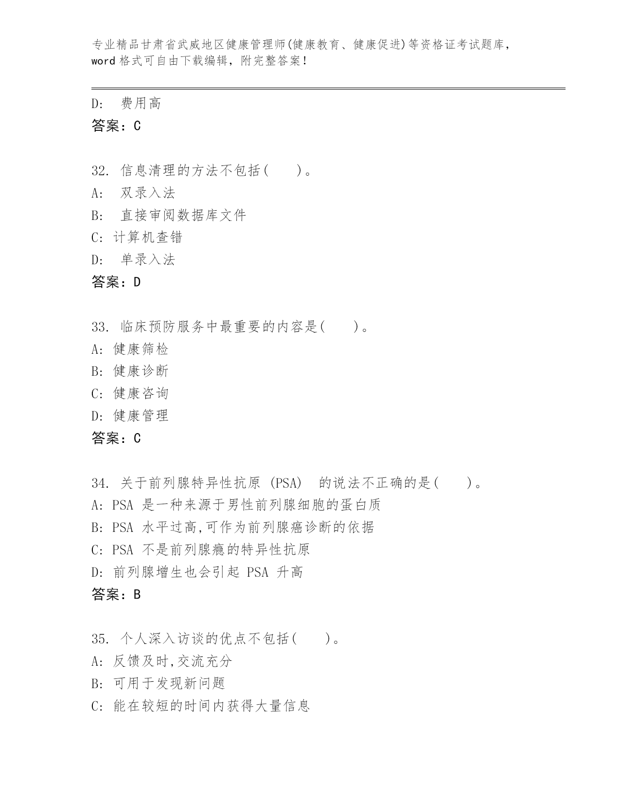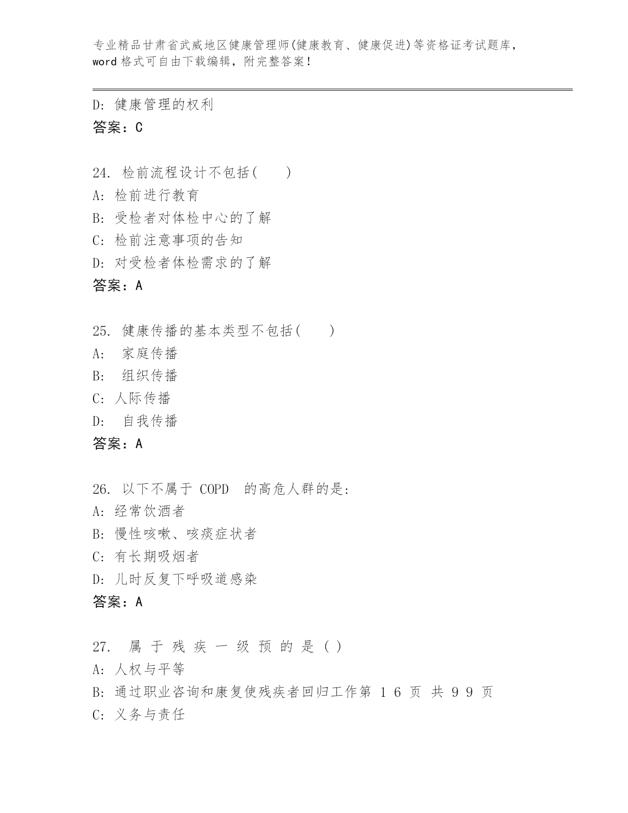 精编甘肃省武威地区健康管理师(健康教育、健康促进)等资格证考试大全(历年真题)