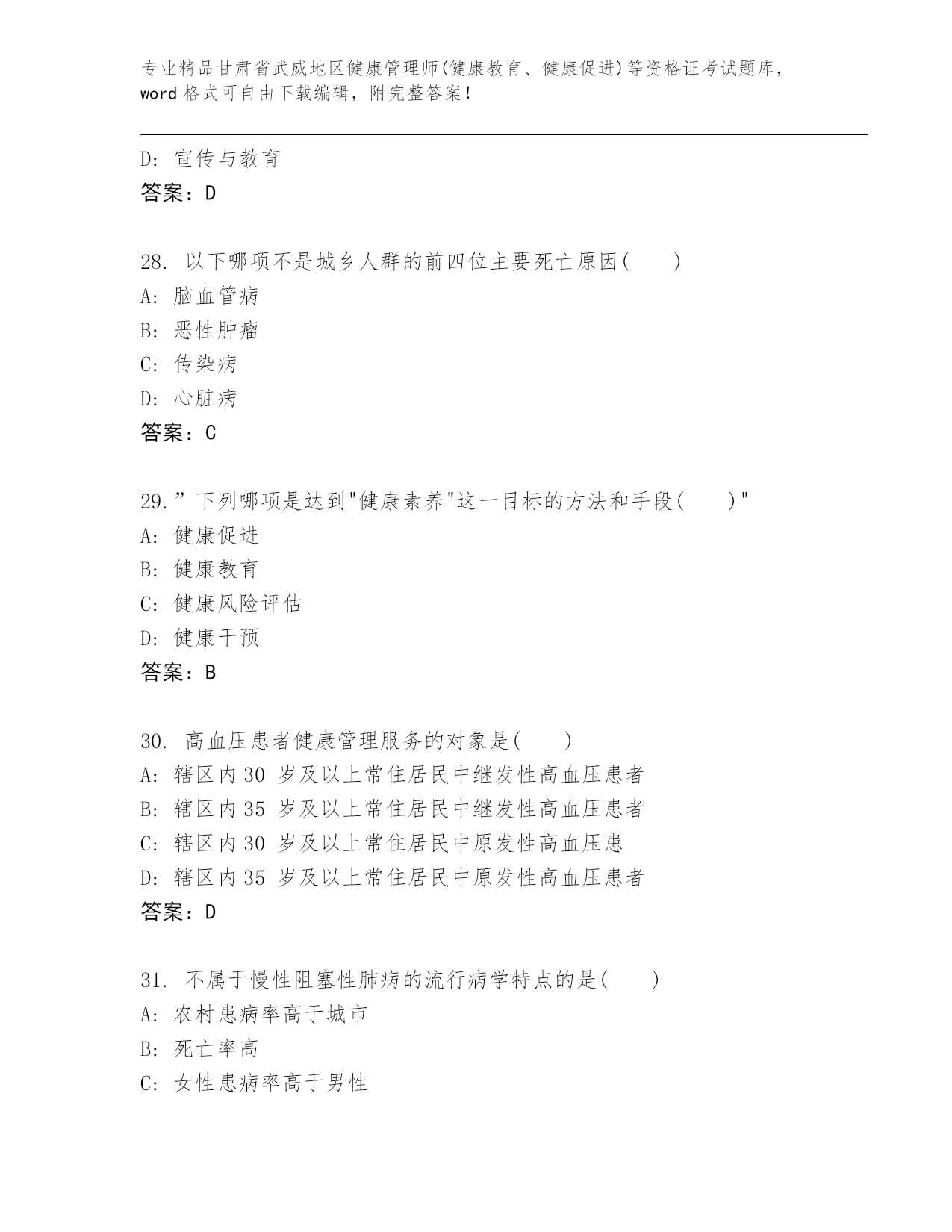 精编甘肃省武威地区健康管理师(健康教育、健康促进)等资格证考试大全(历年真题).docx