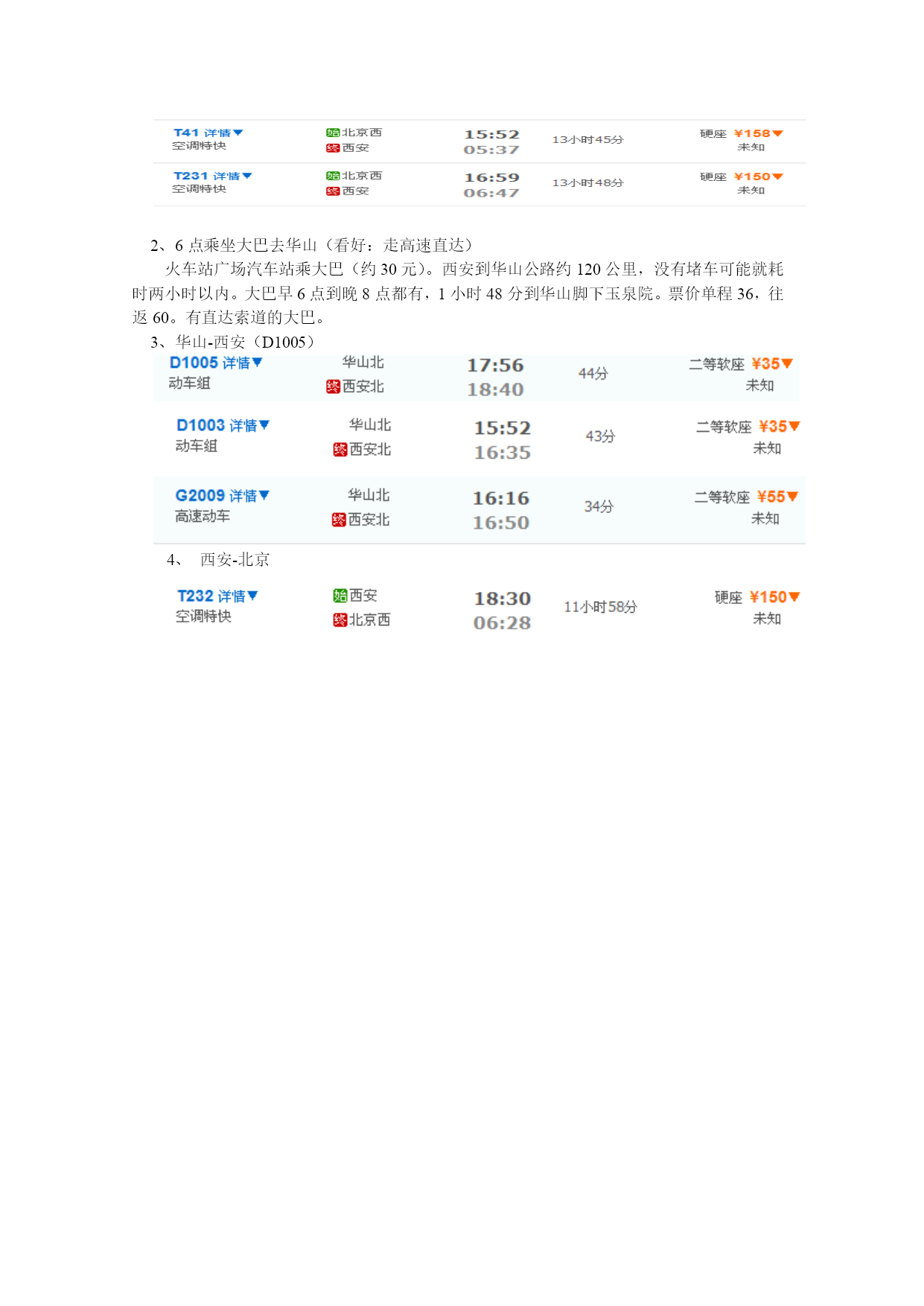 根据参考示意图,HYPERLINK"http://www.yododo.com/area/1-01-23-16-01"\o"华山自助游"\t"_blank"华山景点分为几大块:1HYPERLINK"http://www.yododo.com/area/1-01-23-16-3592"\o"北峰自助游"\t"_blank"北峰景区,2HYPERLINK"http://www.yododo.com/area/1-01-23-16-3596"\o"苍龙岭自助游"\t"_blank"苍龙岭-HYPERLINK"http://www.yododo.com/area/1-01-23-33-7403"\o"金锁关自助游"\t"_blank"金锁关,3HYPERLINK"http://www.yododo.com/area/1-01-23-91-7320"\o"东峰景区自助游"\t"_blank"东峰景区(最险)-鹞子翻身+长空栈道+HYPERLINK"http://www.yododo.com/area/1-01-17-08-111"\o"朝阳自助游"\t"_blank"朝阳台,4HYPERLINK"http://www.yododo.com/area/1-01-23-16-3591"\o"南峰自助游"\t"_blank"南峰景区(最高)-HYPERLINK"http://www.yododo.com/area/1-01-30-39-5289"\o"南天门自助游"\t"_blank"南天门+登顶,5HYPERLINK"http://www.yododo.com/area/1-01-23-16-3590"\o"西峰自助游"\t"_blank"西峰景区(个人觉得很壮美),6智取HYPERLINK"http://www.yododo.com/area/1-01-23-16-01"\o"华山自助游"\t"_blank"华山道:3999级台阶,上行2小时,下行1小时,7HYPERLINK"http://www.yododo.com/area/1-01-23-16-01"\o"华山自助游"\t"_blank"华山古道:所谓的“自古HYPERLINK"http://www.yododo.com/area/1-01-23-16-01"\o"华山自助游"\t"_blank"华山一条道”,上行4小时,下行2小时。华山古道(4小时):第4险:千尺峡和百尺幢。(4小时)北峰(0.5小时休息拍照):想节约体力可以乘索道上山(不用太早,8点即可),首先到达的是HYPERLINK"http://www.yododo.com/area/1-01-23-16-3592"\o"北峰自助游"\t"_blank"北峰景区。游玩大概需40分钟。注意:如果有计划玩转HYPERLINK"http://www.yododo.com/area/1-01-23-16-01"\o"华山自助游"\t"_blank"华山各峰,不建议在此停留,应直接取道往HYPERLINK"http://www.yododo.com/area/1-01-23-16-3596"\o"苍龙岭自助游"\t"_blank"苍龙岭(第3险)-HYPERLINK"http://www.yododo.com/area/1-01-23-33-7403"\o"金锁关自助游"\t"_blank"金锁关走,否则如果把体力消耗在了HYPERLINK"http://www.yododo.com/area/1-01-23-16-3592"\o"北峰自助游"\t"_blank"北峰,后面的山就没有体力爬了。HYPERLINK"http://www.yododo.com/area/1-01-23-16-3592"\o"北峰自助游"\t"_blank"北峰可留在最后下山时(必过此处)再游览。而且这样安排,还可以避开不少早晨上山的游客——因为HYPERLINK"http://www.yododo.com/area/1-01-23-16-3592"\o"北峰自助游"\t"_blank"北峰是所有游客上山的第一站。HYPERLINK"http://www.yododo.com/area/1-01-23-16-3596"\o"苍龙岭自助游"\t"_blank"苍龙岭-HYPERLINK"http://www.yododo.com/area/1-01-23-33-7403"\o"金锁关自助游"\t"_blank"金锁关(1小时)。首先可见的是关中八景之首“华岳HYPERLINK"http://www.yododo.com/ar