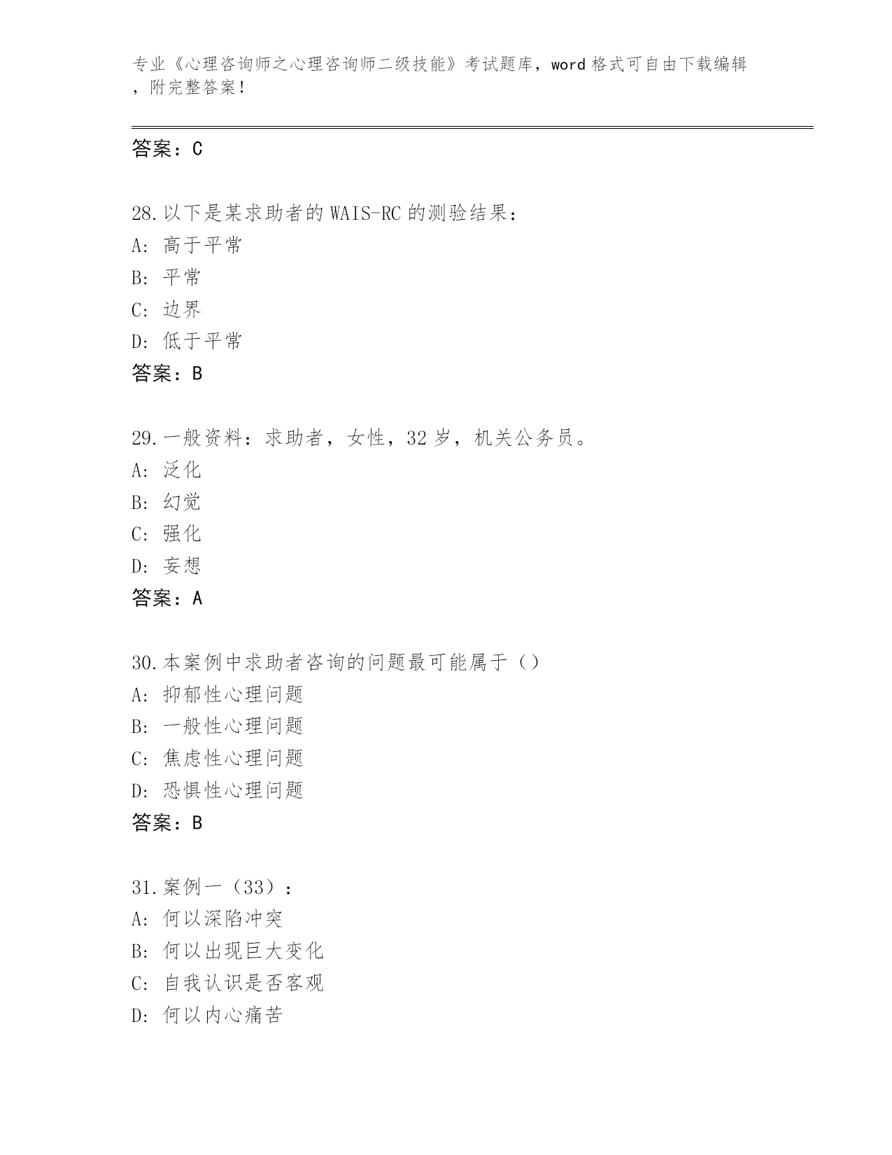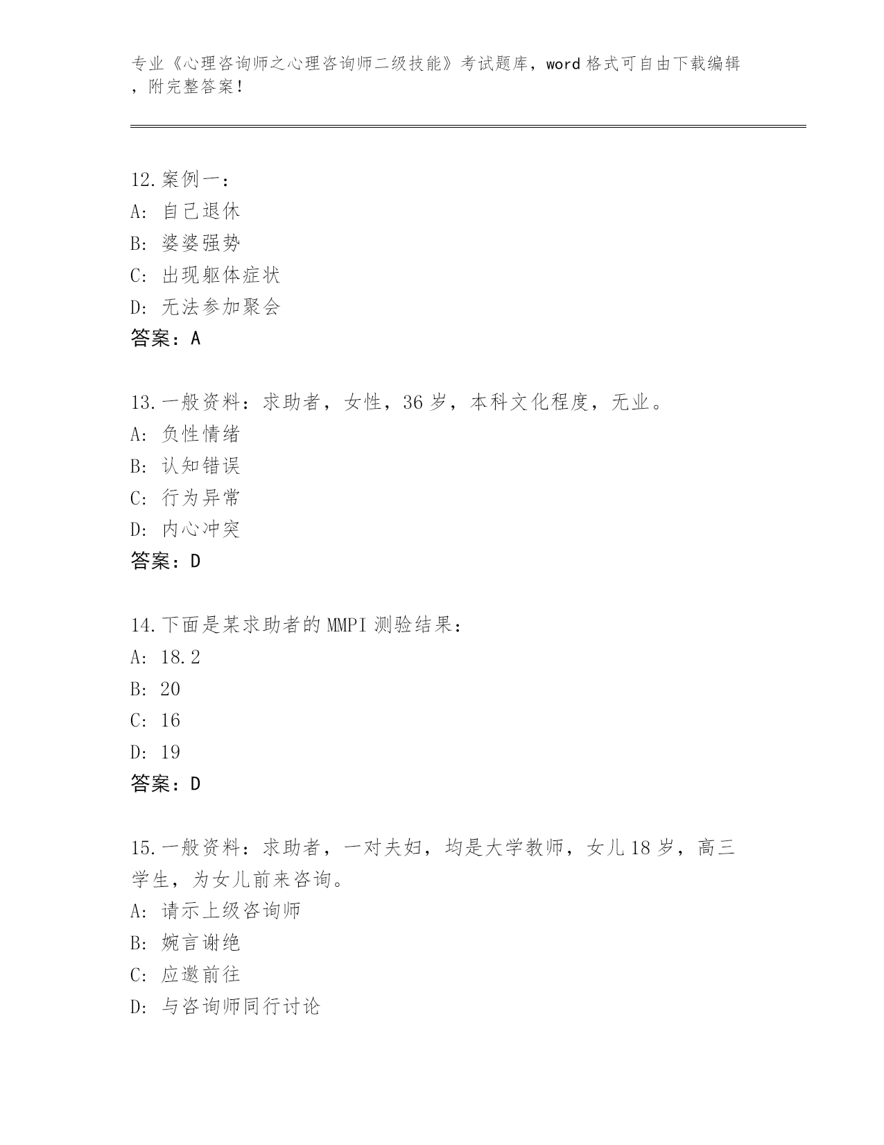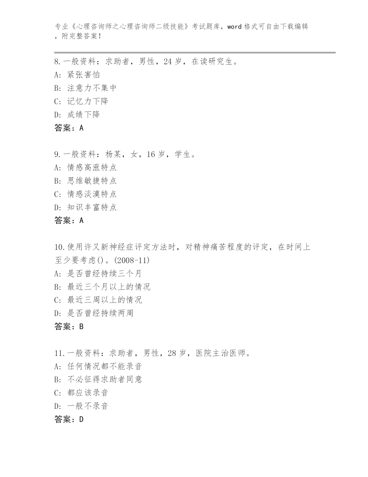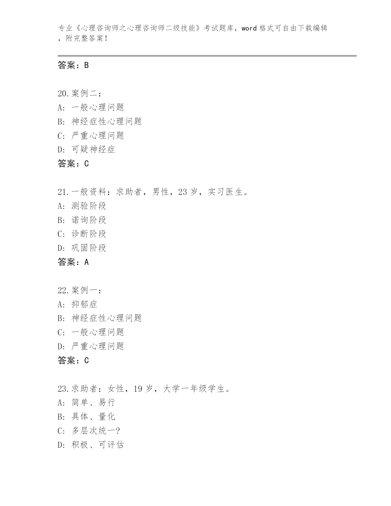 山西省盂县2024年《心理咨询师之心理咨询师二级技能》考试必考200题题库及答案(历年真题)