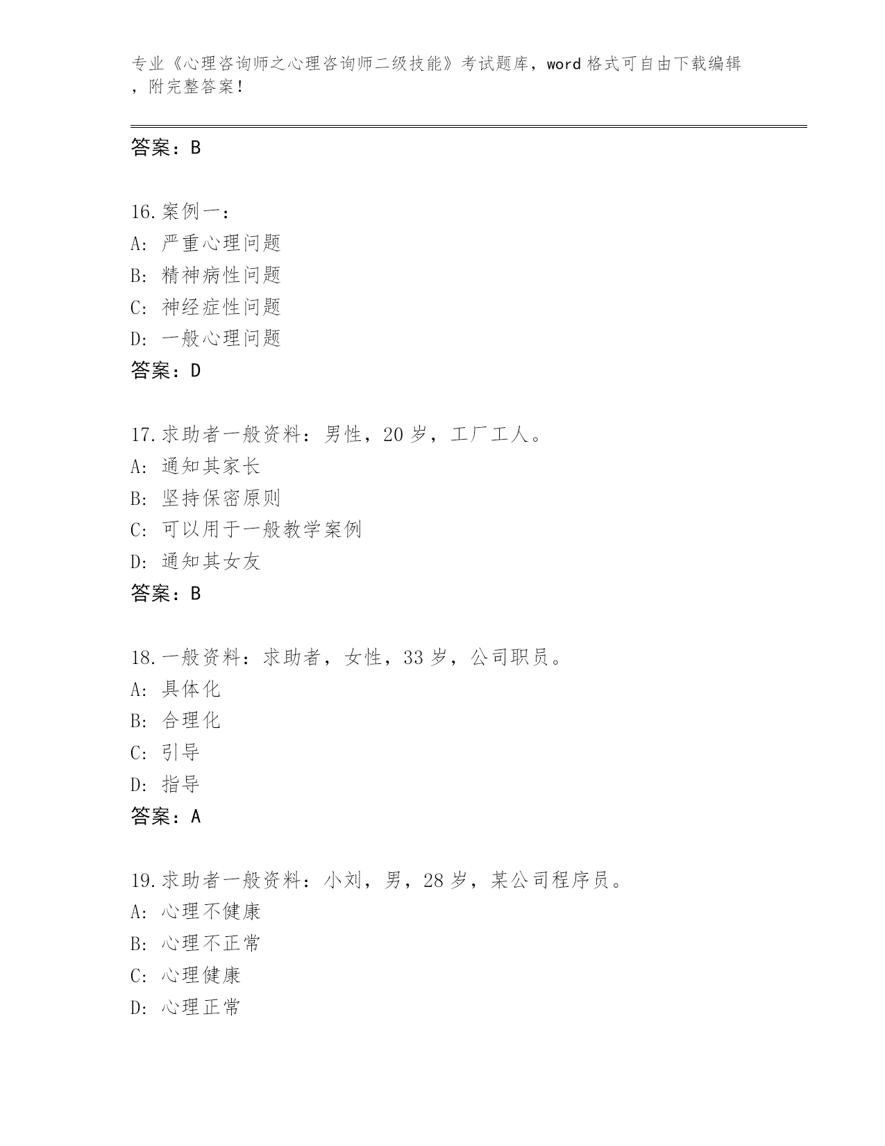 山西省盂县整理《心理咨询师之心理咨询师二级技能》资格考试必背200题【精选题】