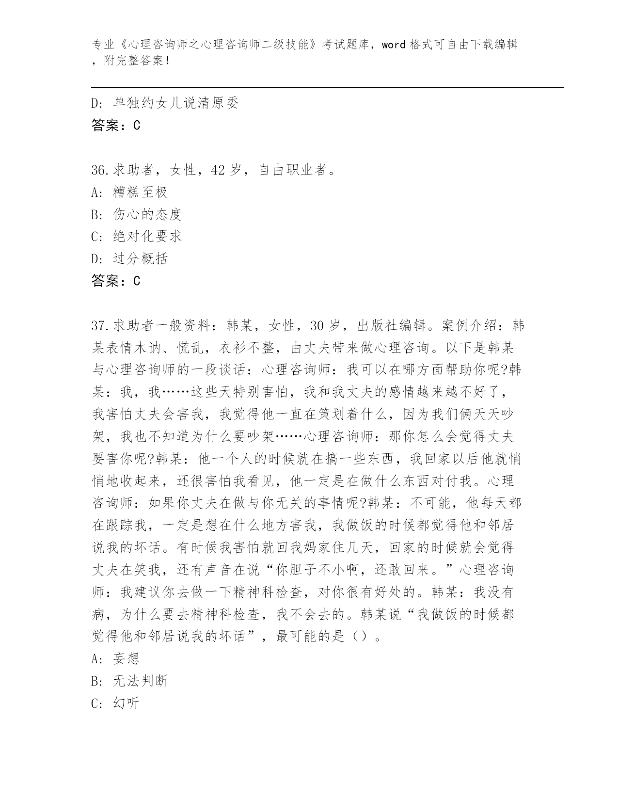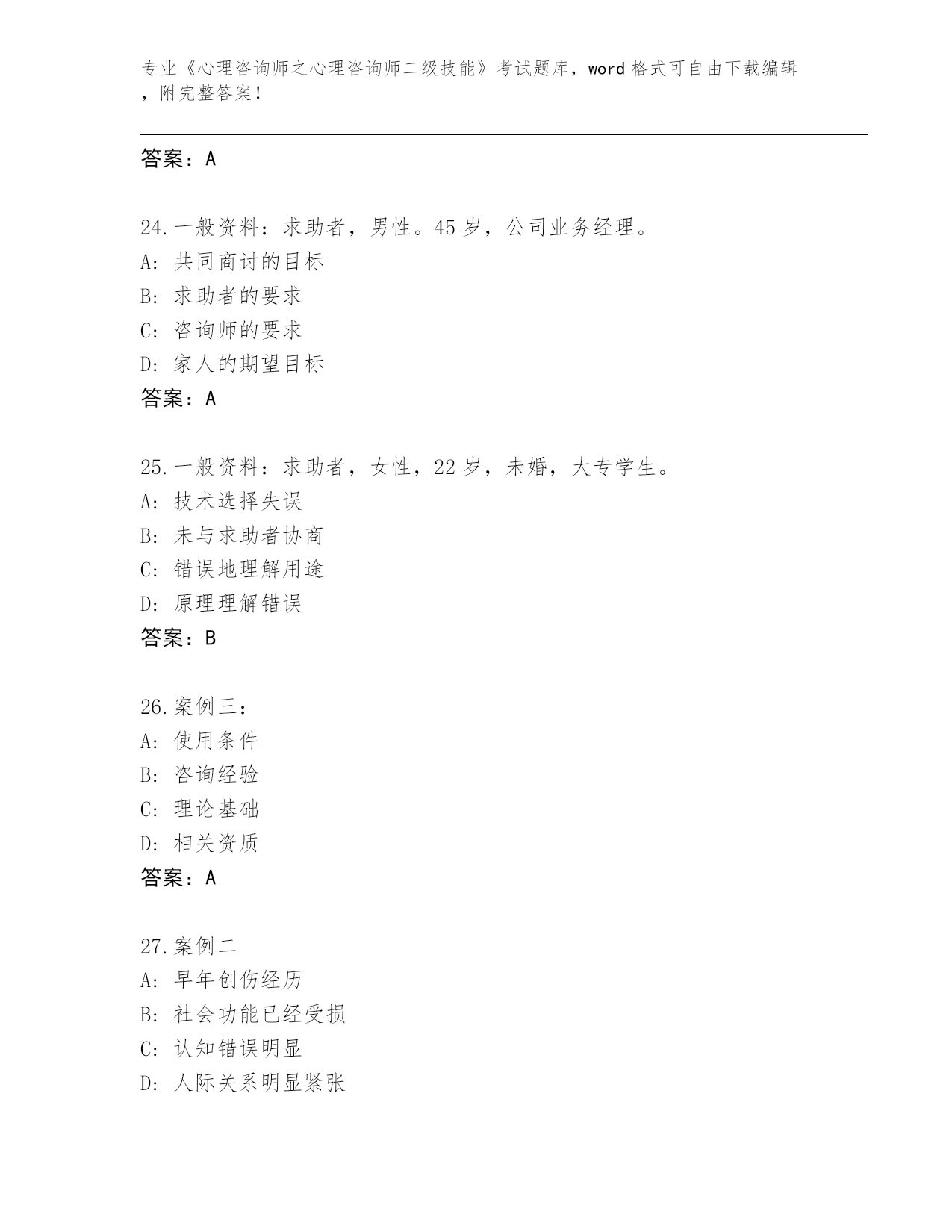 2024年山西省盂县《心理咨询师之心理咨询师二级技能》考试必刷200题完整版带答案(突破训练)