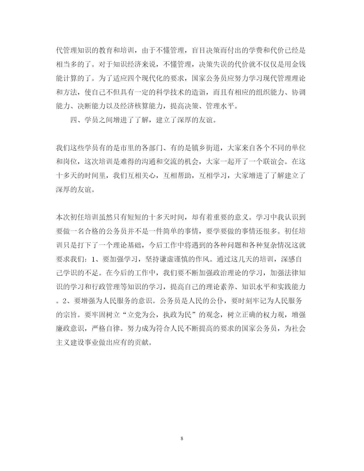 此资料由网络收集而来,如有侵权请告知上传者立即删除。资料共分享,我们负责传递知识。PAGEPAGE8公务员培训期间自我鉴定公务员培训期间你有没有懂的求知、求真、求实、服务社会、服务人民的含义呢?那么你要怎么去写公务员培训期间自我鉴定呢?下面由本小编精心整理的公务员培训期间自我鉴定,希望可以帮到你哦!公务员培训期间自我鉴定篇一我有幸参加了公务员初任培训班。短短的十几天培训即将过去,但是留给我的宝贵财富却使我感到受益终生。在这里我要感谢区人事局和党校领导和老师的精心组织安排的课程,使我们在在这紧张、充实的培训中收获颇多,我始终以高昂的热情、严谨的态度全身心地投入到学习当中去,主要谈以下几点感受:一、开阔了视野,加强对自我的认识。通过在党校的学习培训,特别是通过对《公务员法》的学习,全面的了解了公务员的权利和义务,我深刻认识到作为一个国家公务员为人民服务并不是一件简单的事情,不仅要有主观上的热情和干劲,还要求有扎实的业务知识和作为公务员必须具备的能力,才能达到为人民服务的要求才不会被人民淘汰。要牢固树立为人民服务的意识,特别是作为一名在基层街道工作的青年干部,更要扎扎实实的把本职工作做好,扎根基层,提高为人民群众服务的本领。在这一点上,前辈公务员也为我们树立了榜样,他们都是在岗位上作出突出成绩的佼佼者,他们的成功经验使我体会到,只有不断加强自我修炼,带着追求事业的热情,才能够成为一名合格的公务员。二、增长了知识,锻炼了自身的能力。为了让我们尽快地掌握为履行职责所必须的基本知识,为今后的工作做好准备,本次初任培训在十多天的时间里安排了大量的学习内容。通过学习了**区的历史、现状和未来,加强了对我区区情和未来发展的更全面的了解;学习建设学习型组织、情商—走向成功的关键、缔造阳光心态等等和我们工作生活密切相关的课程,不仅扩大了知识面开阔了眼界,而且加强我们对自身各方面修养的重视;通过学习公务礼仪,我们了解了公务员还要有一个良好的个人形象;公文写作与处理是公务员的必修课,在学习过程中大家仔细聆听,格外认真,掌握了一定的公文写作方法和技巧特别是此次培训为了体现互动式学习,组织了破冰活动、主题辩论赛和答辩式考试等内容,让我们在听的同时加强了互动交流,检验了我们的学习成果。虽然很遗憾我没能作为辩手参加辩论赛,但整个比赛我也积极准备,在聆听辩手激烈的辩论同时也积极阐述了自己的观点,感到受益匪浅。通过这种学习方式,提高了能力和素质,在短时间内最大限度地充实自己,感觉收获颇丰。同时在今后的工作中也要孜孜不倦地学习、钻研业务知识、不断提高自己的知识素养,只有这样,才能更好地担负起区大发展中青年干部的重任,把我区建设得更加美好,为广大人民群众和社会提供优质高效的服务。三、同学之间增进了了解,建立了深厚的友谊。我们这些学员有的是全区的各部门,大家来自各个不同的单位和岗位,这次培训是难得的沟通和交流的机会,大家都是年轻人在这十多天的时间里,我们互相关心,互相帮助,互相学习,大家增进了了解建立了深厚的友谊,也为今后工作中互相沟通交流打下了良好的基础。通过这几天的培训,作为一名刚刚走入公务员队伍的年轻干部深感自己学识的不足。在今后的工作中,我们要不断加强政治理论的学习,加强对本岗位业务知识的学习,提高自己的理论素养、知识水平和工作能力。要时刻牢记为人民服务的宗旨。要牢固树立“立党为公,执政为民”的观念,树立正确的权力观,增强廉政意识,严格自律。努力成为符合人民不断提高的要求的国家公务员,为区建设事业做出应有的贡献!公务员培训期间自我鉴定篇二20xx年6月24日—29日,根据市人事局的安排,我有幸参加了20xx年度全市新录用公务员初任培训学习班。在为期一周的培训中,培训班紧紧围绕“快速适应岗位,争当合格公务员”这一主题,精心安排**市委党校学识渊博的教授专家开展深入浅出地授课,使我较为系统的学习了xx届六中全会精神、科学发展观、《公务员法》、《公文写作》、《政务与社交礼仪》、《规范行政程序》、《公务员职业道德》、《行政机关公务员处分条例》等一些与实际工作密切相关的理论知识。通过培训学习,我认清了这次培训的重大意义、认清了公务员岗位的重要、认清了自身的不足和努力方向,更使我深刻的认识到,要成为一名合格的公务员,只有全方位提高自身的素质能力,严格遵守《公务员法》的要求,在创新中不断迎接新时期社会发展的各种挑战。一是明确了党的大政方针,政治理论素养有了很大提高。作为一名合格的公务员,必须提高自身的政治理论素养。应该熟知党的各项方针政策,认清各种当前社会政治、经济形势,要善于把握正确的前进方向,要毫不动摇的坚持社会主义道路。只有首先解决好方向问题我们才能够走的稳,走的远。而过硬的政治素质,高尚的政治情操是保证我们正确方向的根本。
