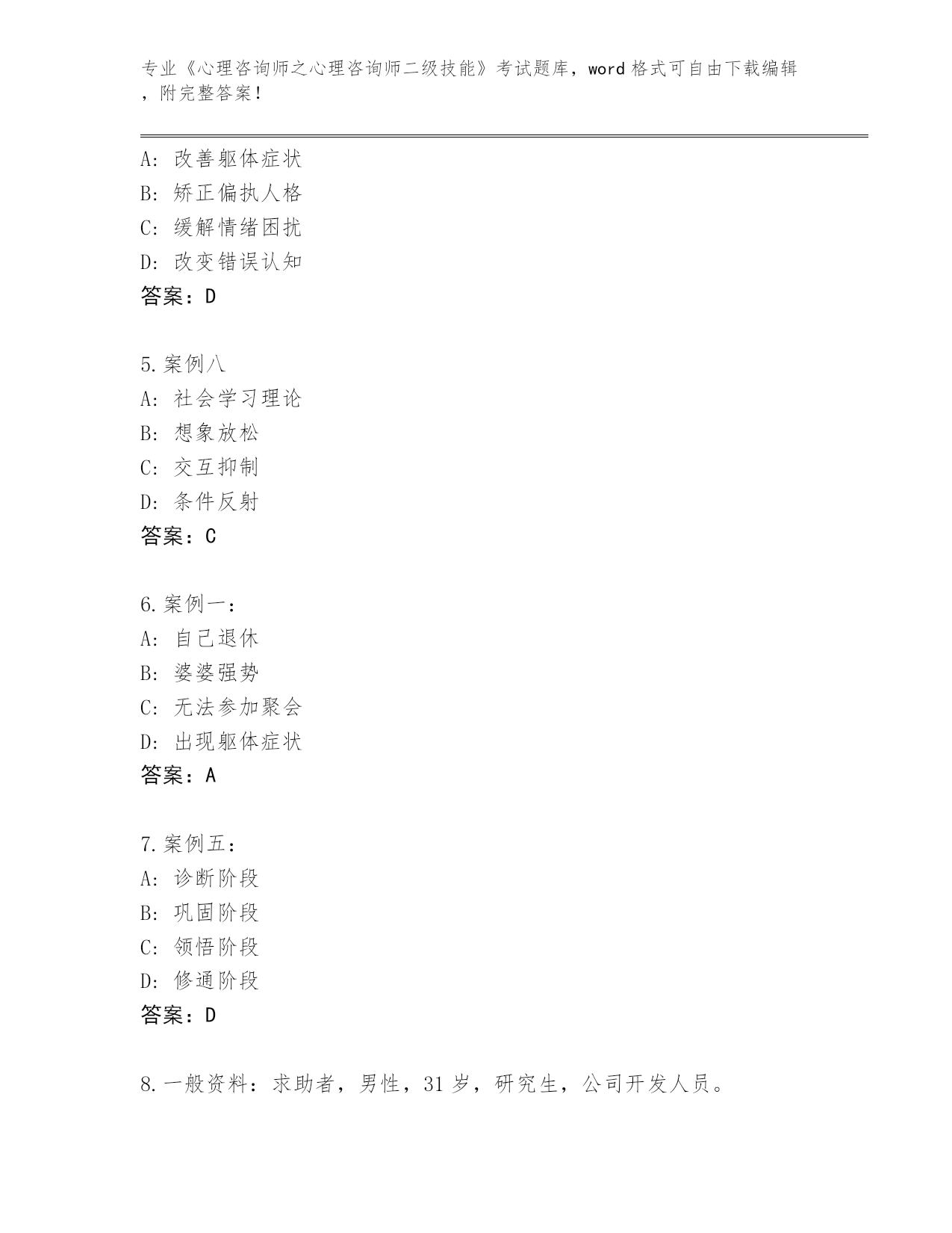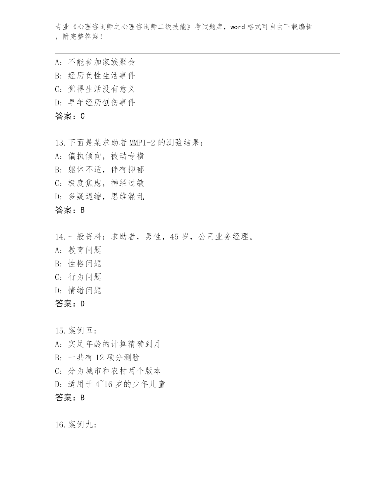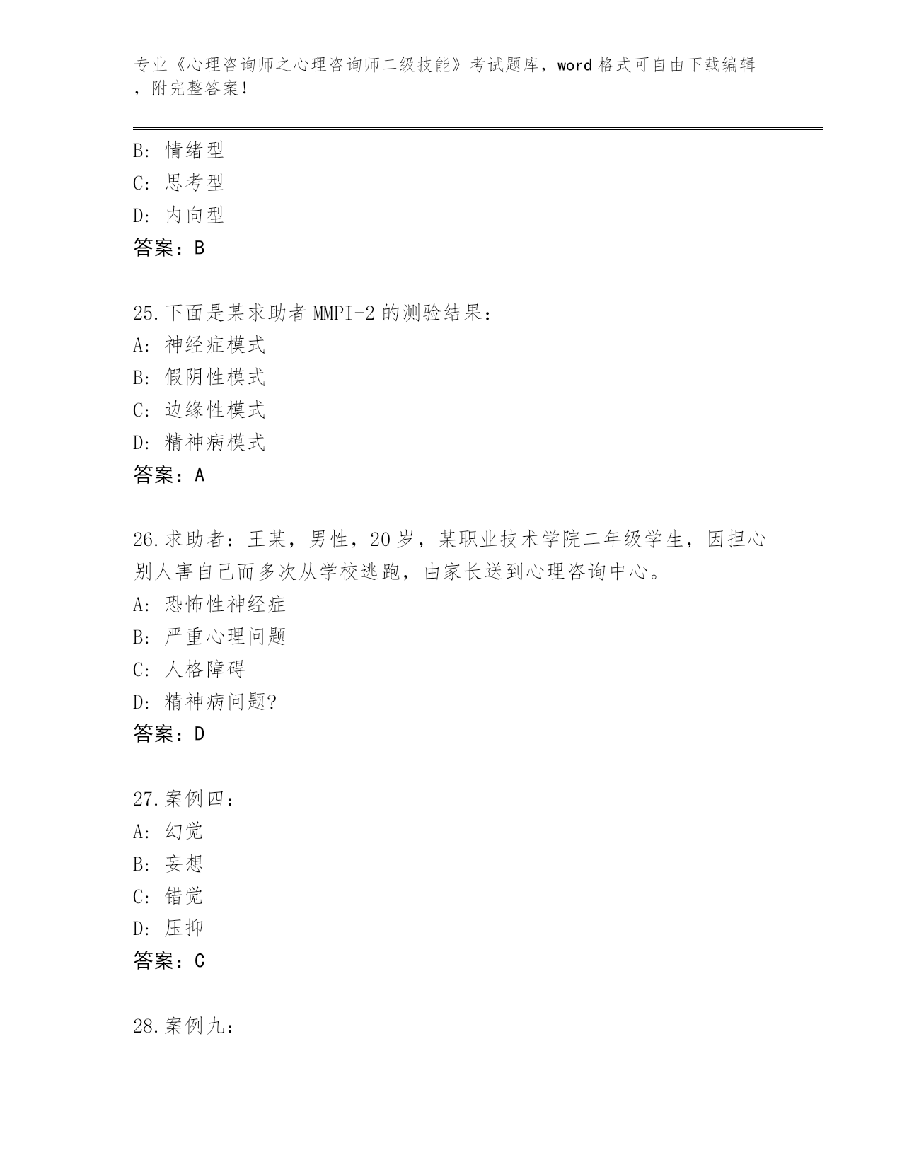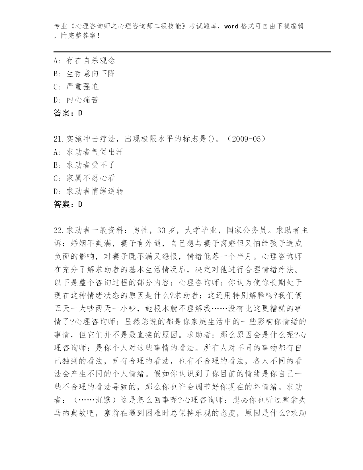 浙江省临安市2023-2024年《心理咨询师之心理咨询师二级技能》考试(典型题)