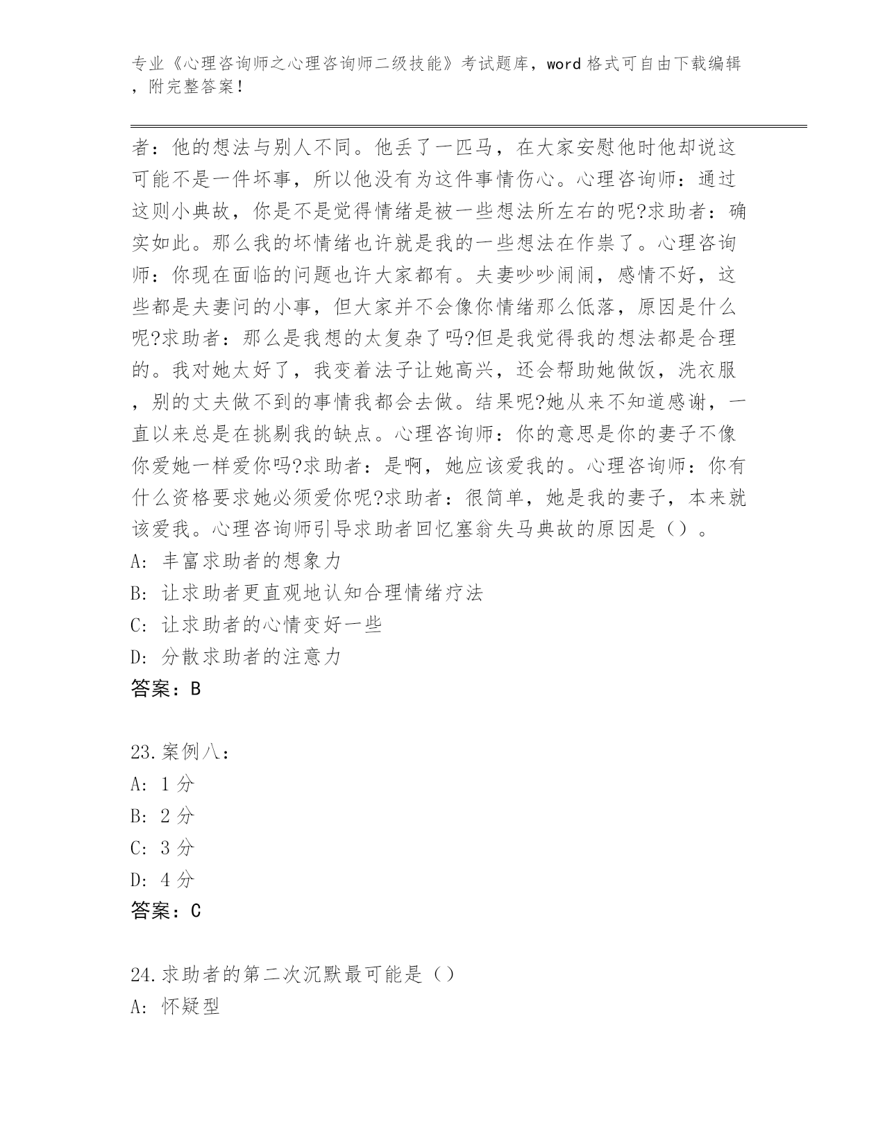 浙江省临安市2023-2024年《心理咨询师之心理咨询师二级技能》考试(典型题).docx