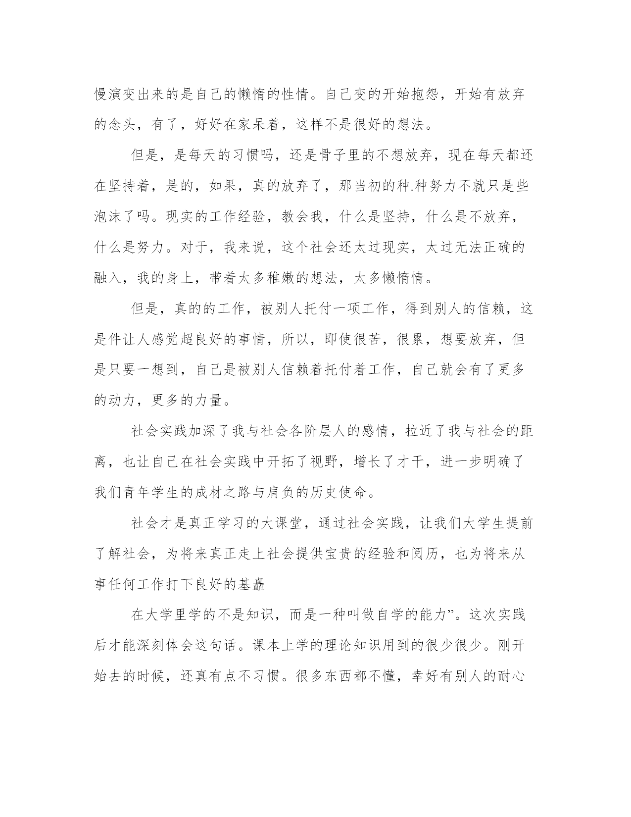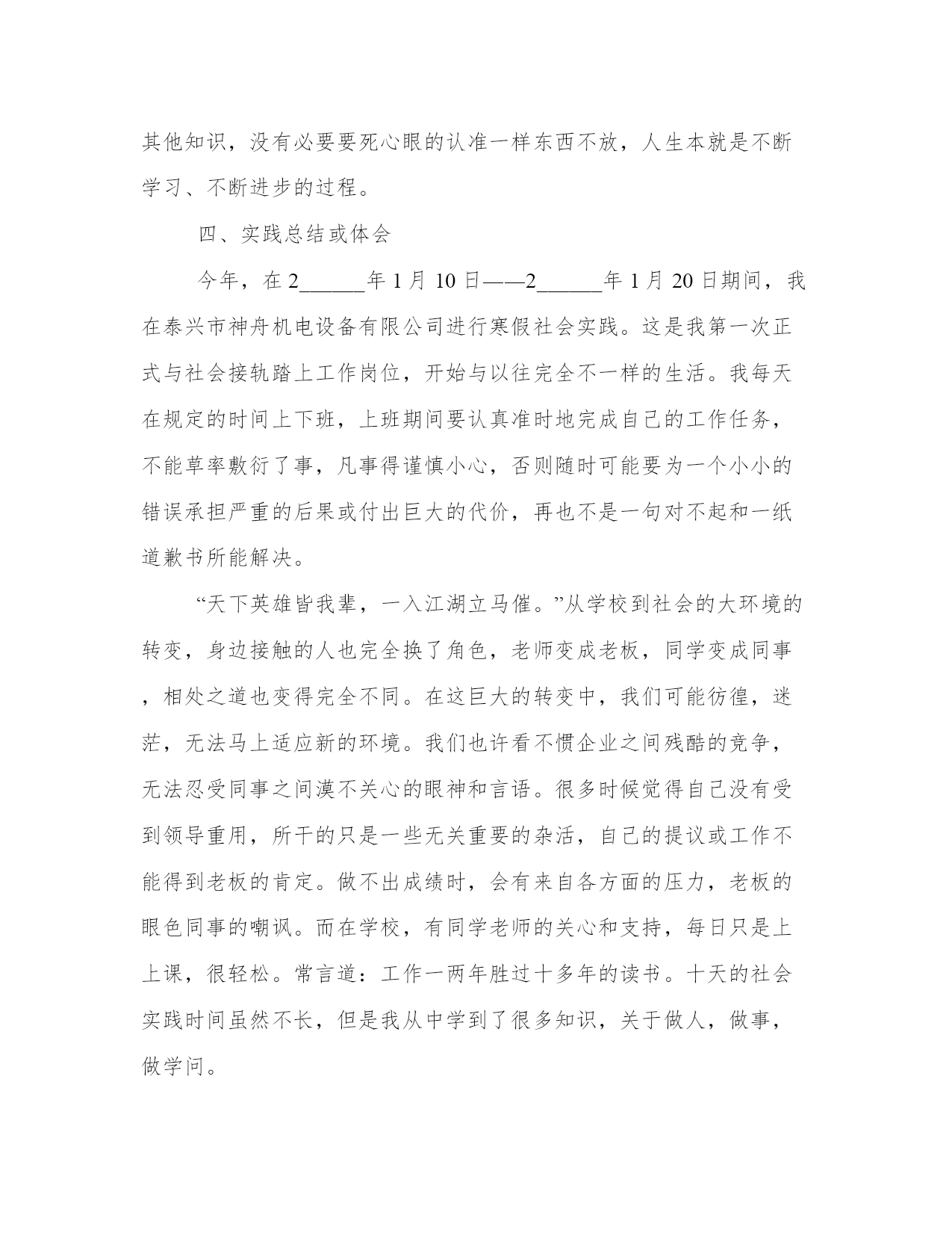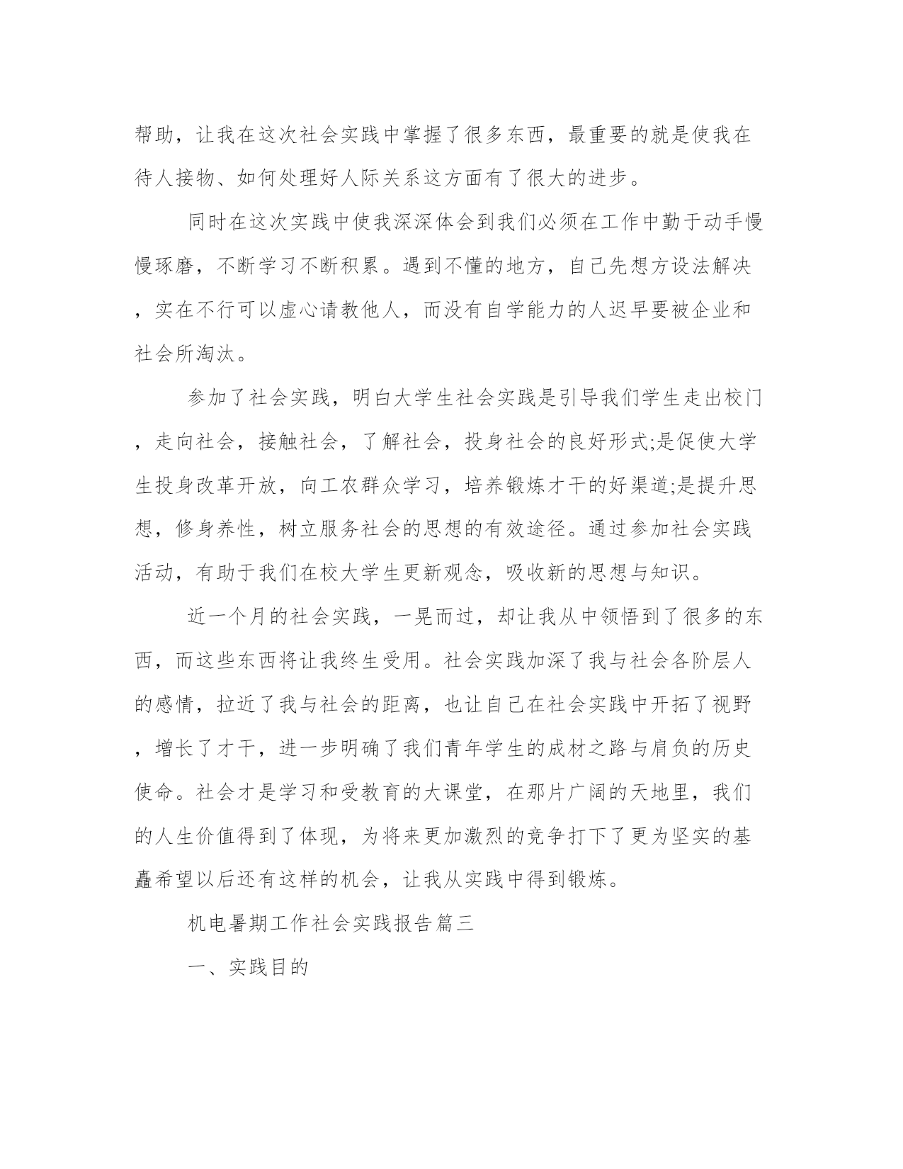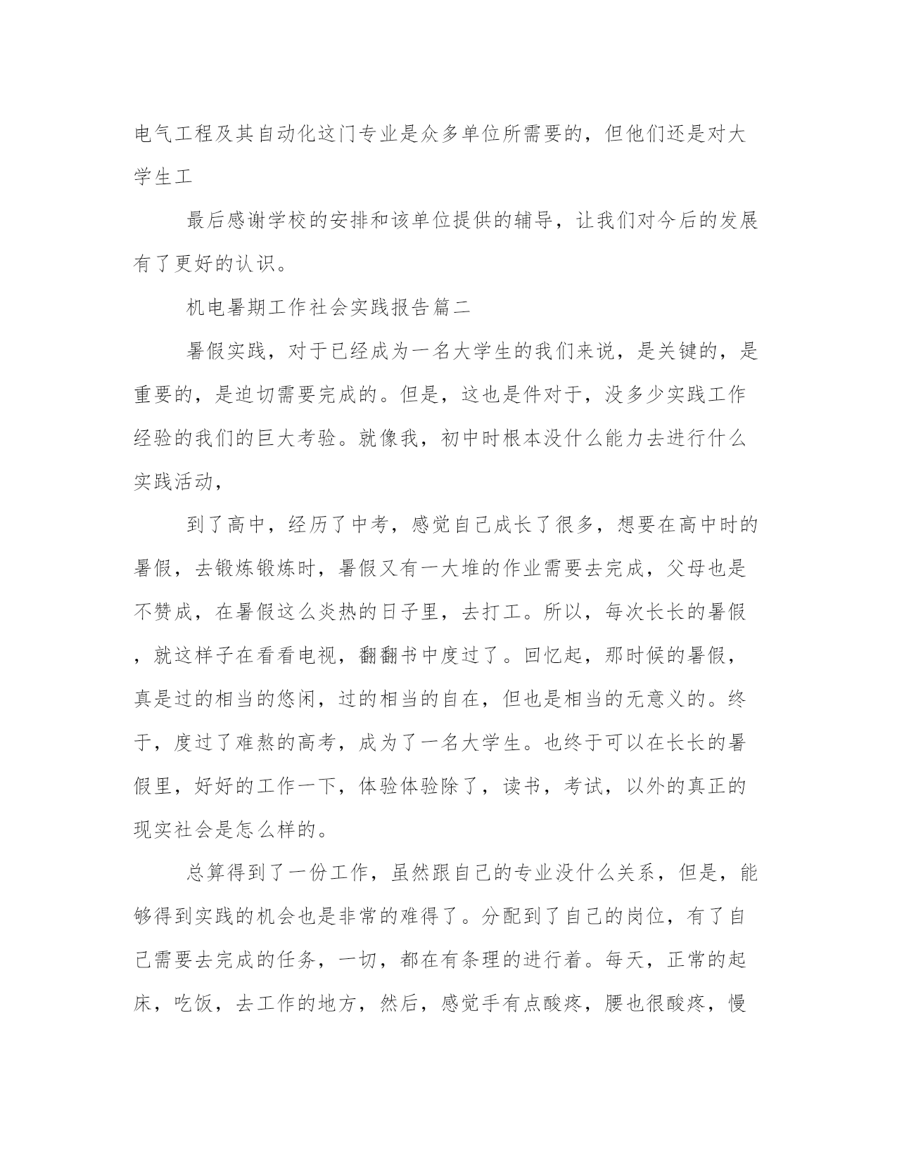 最新机电暑期工作社会实践报告(3篇)随着社会一步步向前发展,报告不再是罕见的东西,多数报告都是在事情做完或发生后撰写的。那么我们该如何写一篇较为完美的报告呢?以下是我为大家搜集的报告范文,仅供参考,一起来看看吧机电暑期工作社会实践报告篇一学院:职业技术学院专业:电气工程及其自动化年级:____级姓名:____学号:____实践单位:____能源股份公司____矿机电科实践时间:20____年2月8日转眼间,大学一个学期已经过去,我们迎来了寒假,寒假是学生充实自我、增加阅历、了解社会的重要阶段。作为社会中思想最活跃的群体,大学生都有着自己精彩的假期计划。学校也为我们安排了进行寒假社会实践的要求,通过亲身体验社会实践让自己更进一步了解社会,在实践中增长见识,锻炼自己的.才干,培养自己的韧性,更为重要的是检验一下自己所学的东西能否被社会所用,自己的能力能否被社会所承认。想通过社会实践,找出自己的不足和差距所在。所以我去____能源股份公司____矿机电科进行了为期一天的社会实践。____能源股份公司____矿机电科是一个需要大量专业技术人员的单位,我认为只有深入专业部门,了解相关工作人员的工作情况,才可以对电气工程及其自动化这个专业有更深的了解,了解这个专业今后的就业方向和工作情况,激发我们的学习热情,让我们有更好的就业意识。在这一天中,我的主要参观了该单位的工作场所以及相关车间,对该单位工作人员的工作情况进行了了解,在我参观过程中,有关师傅对我进行了简单的专业知识的讲解,教授我了一些简单的操作,让我尝试并进行了简单的操作实践,我也帮着有关技术人员进行了简单工作,技术人员也十分热情的帮助我解决了我在工作过程中的问题。这次的实践让我对这个专业的工作环境与相关工作内容进行了了解与认识。此外,我对该公司单位进行采访,对其所需的各项人才进行调查,以及所需要的人才的个数。采访该单位书记,进行本专业的看法的调查与询问。该公司单位对电气工程及其自动化为专业的人才还是很短缺的,并了解到公司对此类人才的主要要求就是专业知识强硬,工作勤勉等,他们对我校培养出的相关人才抱了极大希望。通过这次的社会实践,我发现我们目前学习的知识还远远不够,相关人员也提出大学生对相关专业知识还很缺乏,无法顺利进行与专业知识有关的工作的问题。虽然现在该单位对该人才很缺乏,也表示电气工程及其自动化这门专业是众多单位所需要的,但他们还是对大学生工最后感谢学校的安排和该单位提供的辅导,让我们对今后的发展有了更好的认识。机电暑期工作社会实践报告篇二暑假实践,对于已经成为一名大学生的我们来说,是关键的,是重要的,是迫切需要完成的。但是,这也是件对于,没多少实践工作经验的我们的巨大考验。就像我,初中时根本没什么能力去进行什么实践活动,到了高中,经历了中考,感觉自己成长了很多,想要在高中时的暑假,去锻炼锻炼时,暑假又有一大堆的作业需要去完成,父母也是不赞成,在暑假这么炎热的日子里,去打工。所以,每次长长的暑假,就这样子在看看电视,翻翻书中度过了。回忆起,那时候的暑假,真是过的相当的悠闲,过的相当的自在,但也是相当的无意义的。终于,度过了难熬的高考,成为了一名大学生。也终于可以在长长的暑假里,好好的工作一下,体验体验除了,读书,考试,以外的真正的现实社会是怎么样的。总算得到了一份工作,虽然跟自己的专业没什么关系,但是,能够得到实践的机会也是非常的难得了。分配到了自己的岗位,有了自己需要去完成的任务,一切,都在有条理的进行着。每天,正常的起床,吃饭,去工作的地方,然后,感觉手有点酸疼,腰也很酸疼,慢慢演变出来的是自己的懒惰的性情。自己变的开始抱怨,开始有放弃的念头,有了,好好在家呆着,这样不是很好的想法。但是,是每天的习惯吗,还是骨子里的不想放弃,现在每天都还在坚持着,是的,如果,真的放弃了,那当初的种.种努力不就只是些泡沫了吗。现实的工作经验,教会我,什么是坚持,什么是不放弃,什么是努力。对于,我来说,这个社会还太过现实,太过无法正确的融入,我的身上,带着太多稚嫩的想法,太多懒惰情。但是,真的的工作,被别人托付一项工作,得到别人的信赖,这是件让人感觉超良好的事情,所以,即使很苦,很累,想要放弃,但是只要一想到,自己是被别人信赖着托付着工作,自己就会有了更多的动力,更多的力量。社会实践加深了我与社会各阶层人的感情,拉近了我与社会的距离,也让自己在社会实践中开拓了视野,增长了才干,进一步明确了我们青年学生的成材之路与肩负的历史使命。社会才是真正学习的大课堂,通过社会实践,让我们大学生提前了解社会,为将来真正走上社会提供宝贵的经验和阅历,也为将来从事任何工作打下良好的基矗在大学里学的不是知识,而是一种叫做自学的能力”。这次实践后才能深刻体会这句话。