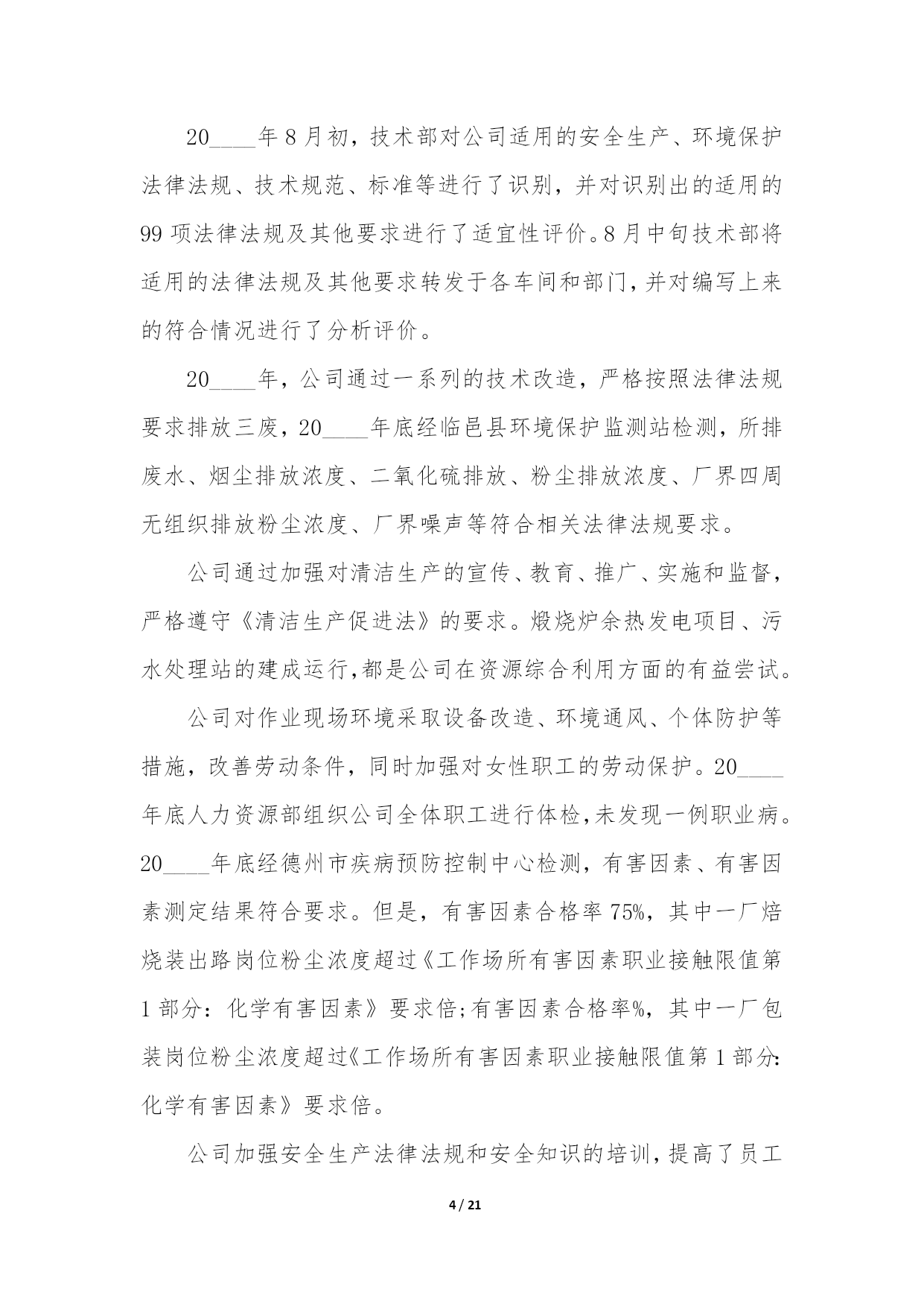 PAGE21/NUMPAGES21技术部年度总结报告(汇总7篇)技术部年度总结报告第1篇尊敬的各位领导,和全体员工:根据质量、环境、职业健康安全一体化管理体系中对技术部职责和权限及管理目标分解的要求,20____年技术部在提高产品质量、新品种规格阳极开发、技改项目立项实施方面开展了大量工作。20____年,技术部职责中新增了对原料、过程产品和最终产品的理化检验以及污水的检验工作。同时,按照体系要求如期进行了法律法规的适宜性评价和符合性评价。现将本部门的工作总结报告如下:新品种阳极开发情况20____年除生产常规品种阳极1535、1460、914、1500外,新增阳极品种共6种,包括1580、1550、1550__580、1600、1445、1650、1625等。为满足客户要求,在每种阳极试产之前,技术部都要根据原料计划、生产能力、阳极自身特点,进行详细的质量策划,并根据策划情况制定作业指导书。对于特殊要求新品种阳极,在生产初期要进行小批量试产,根据生坯和阳极的外观合格率和理化指标,及时对工艺参数进行调整。待产品质量稳定,能符合客户要求后再批量生产。试产和批量生产期间,技术部对批次成品均进行了分析。针对不同品种阳极存在的特殊问题开展专项技术攻关。技改项目的运行情况20____年,在以技术部牵头,各个部门努力工作和支持下,共完成7项技改项目,为提高公司的产品质量和增加效益做出了贡献。成型2号冷却辊道的改造,为全年生坯合格率和产量提高创造了有利条件。一厂1号成型机生坯下水方式的改造,大大降低了生坯底裂现象的出现,这也是20____年生坯合格率提高的原因之一。一厂成型冷却水循环利用改造项目,解决了设备冷却水直排的问题,一天节约水不少于300吨,达到了资源综合利用和保障生产的目的。一厂成型沥青库烟气治理项目,提高了处理沥青烟气的效果,且节约电费4~5万元/年。焙烧车间一期焙烧炉的节能减排技改项目,使天然气消耗降低了20m3/t阳极左右。一厂煅前石油焦精准配料系统项目,通过提高石油焦配料量的准确性,达到稳定和提高阳极质量的目的。一期煅烧车间原料库封闭改造,对美化环境和稳定煅烧工艺起到了很好的作用。20____年8月,中国有色金属工业协会在北京主持召开了索通发展有限公司铝用炭素工程技术研究中心完成的《多品种优质预焙阳极生产工艺技术》等项目科技成果鉴定会。其中《煅前石油焦掺配精准配料技术的研究及开发》获20____年度中国有色金属工业科学技术二等奖,《炭素成型车间沥青烟气综合吸附技术开发》、《多品种优质预焙阳极生产工艺技术》获20____年度中国有色金属工业科学技术三等奖。产品符合性情况通过对原料、过程产品的检验和控制,20____年公司产品质量有了稳步提高。20____年,检测中心对每日进厂的原料按批次进行检测。全年抽检石油焦1166车次,一次检测合格率为%。全年石油焦不合格的主要原因是硫含量超标,年初部分齐鲁石化的石油焦硫含量严重超标,十一月、十二月进厂的燕山焦和石家庄焦硫含量超标。技术部根据产品要求,不合格石油焦经掺配后投入使用后,硫份基本控制在产品质量要求之内。检测中心全年抽检沥青550车次,一次检验合格率为%,其中黄骅合格率为%,晨光合格率为%,固德合格率为%,东旭合格率为%,考伯斯合格率为%。全年中温改质沥青不合格的主要原因是挥发份超标,高温硬质沥青不合格品大多是软化点略超标。根据阳极产品取样计划,检测中心全年共抽检1924个阳极样品,一次检验合格率为%。其中,1500倒角合格率为%,1402合格率为%,1500合格率为%,1580合格率为%,1460合格率为%,1535合格率为%,914合格率为%,1550、1445合格率为0%。全年阳极品质虽能达到YS/T28520XX中TY2牌号的要求,且阳极均质性较好,但就满足客户合同要求来说,成品理化指标令人堪忧。主要问题在于电阻率、空气渗透率和CO2反应性较难达到客户要求,部分阳极存在真密度、抗压强度和微量元素含量无法达到客户要求的情况。目前存在的问题主要是法律法规及其他要求适宜性、符合性评价20____年8月初,技术部对公司适用的安全生产、环境保护法律法规、技术规范、标准等进行了识别,并对识别出的适用的99项法律法规及其他要求进行了适宜性评价。8月中旬技术部将适用的法律法规及其他要求转发于各车间和部门,并对编写上来的符合情况进行了分析评价。20____年,公司通过一系列的技术改造,严格按照法律法规要求排放三废,20____年底经临邑县环境保护监测站检测,所排废水、烟尘排放浓度、二氧化硫排放、粉尘排放浓度、厂界四周无组织排放粉尘浓度、厂界噪声等符合相关法律法规要求。公司通过加强对清洁生产的宣传、教育、推广、实施和监督,严格遵守《清洁生产促进法》的要求。煅烧炉余热发电