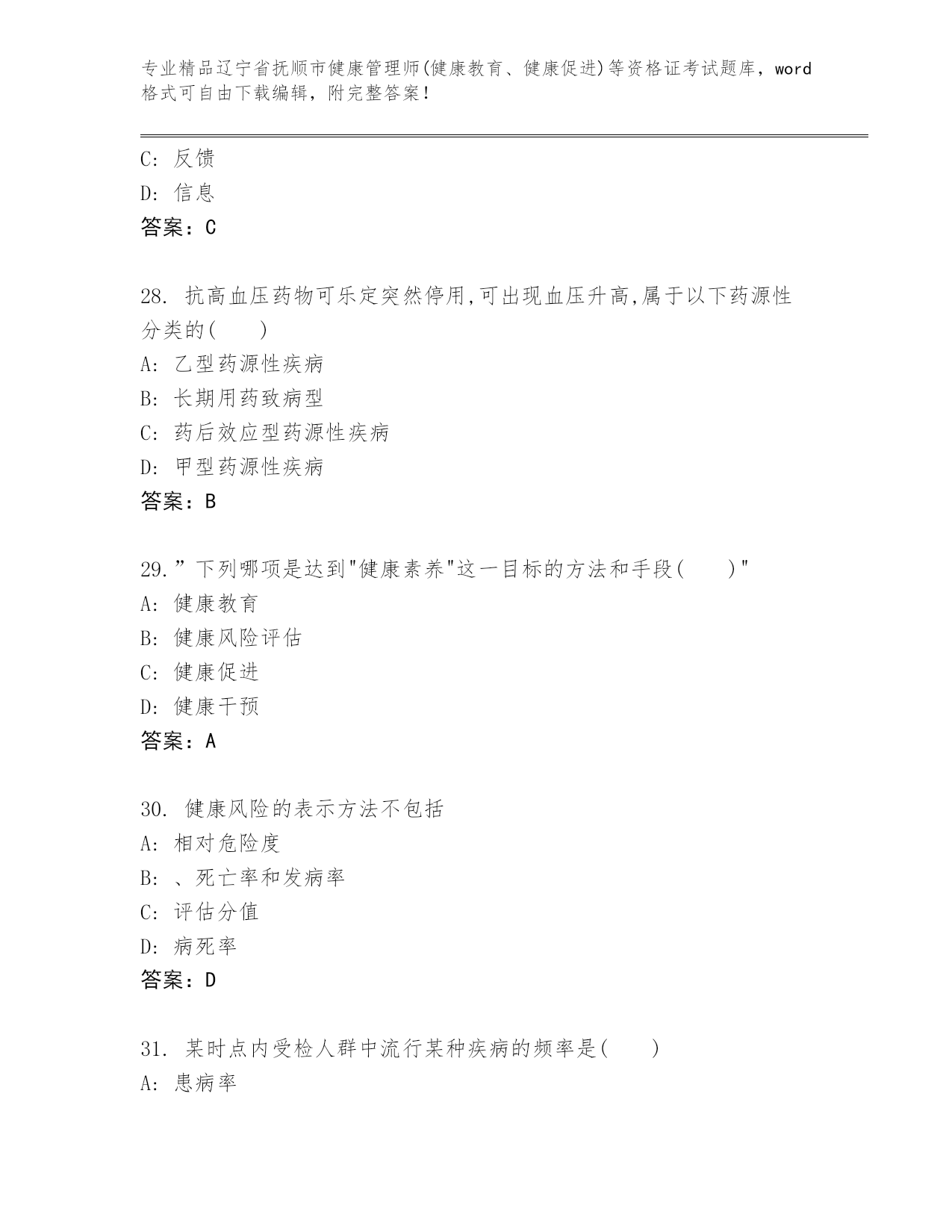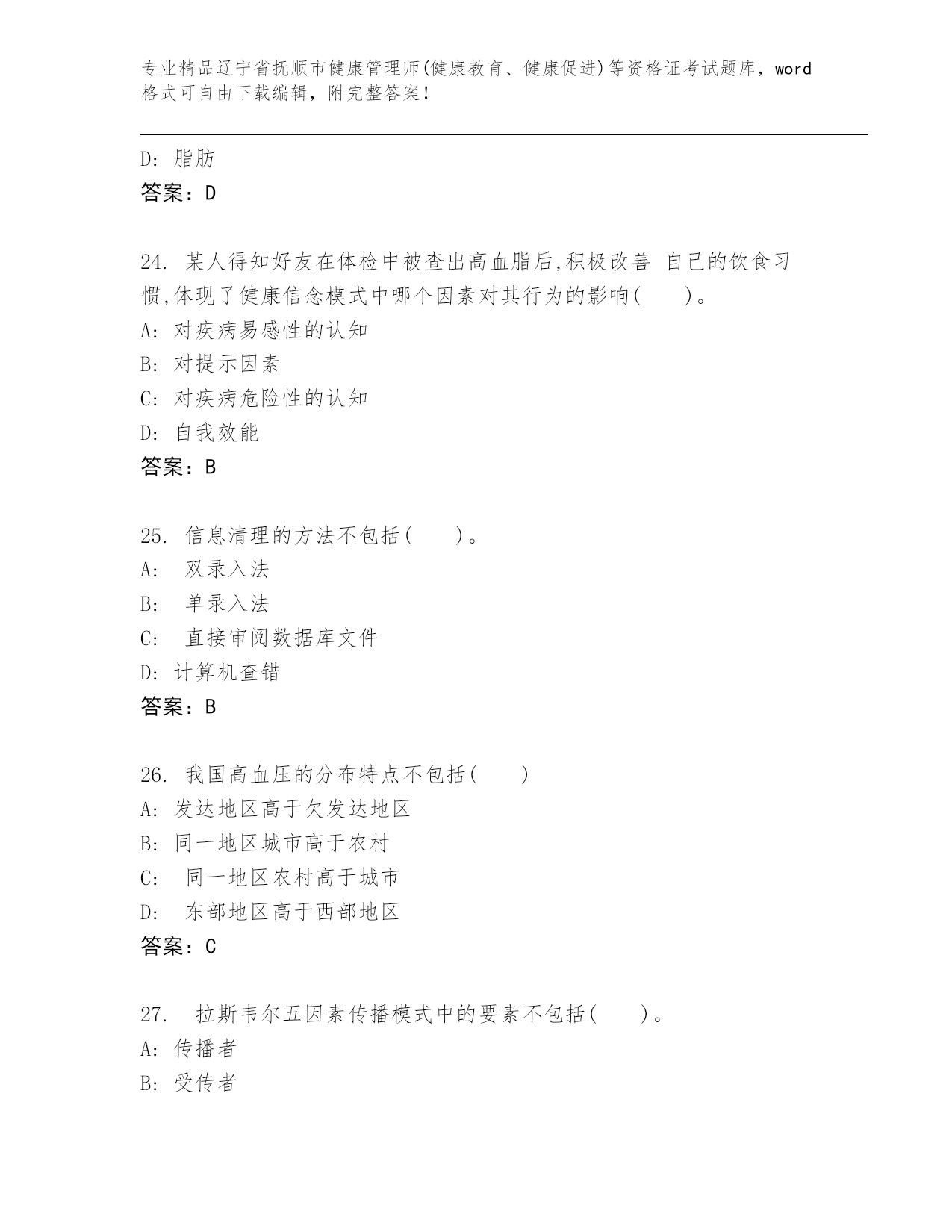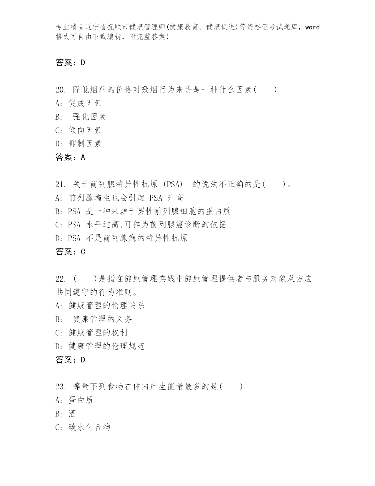 历年辽宁省抚顺市健康管理师(健康教育、健康促进)等资格证考试优选题库(预热题)