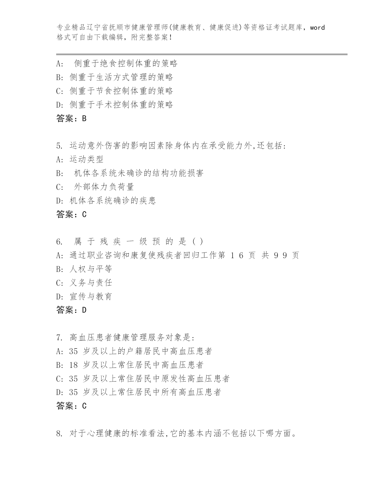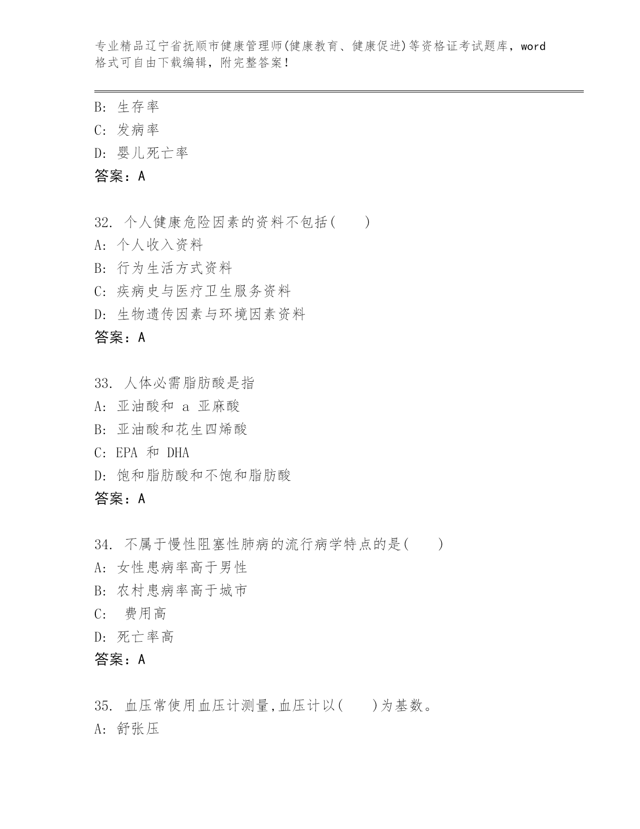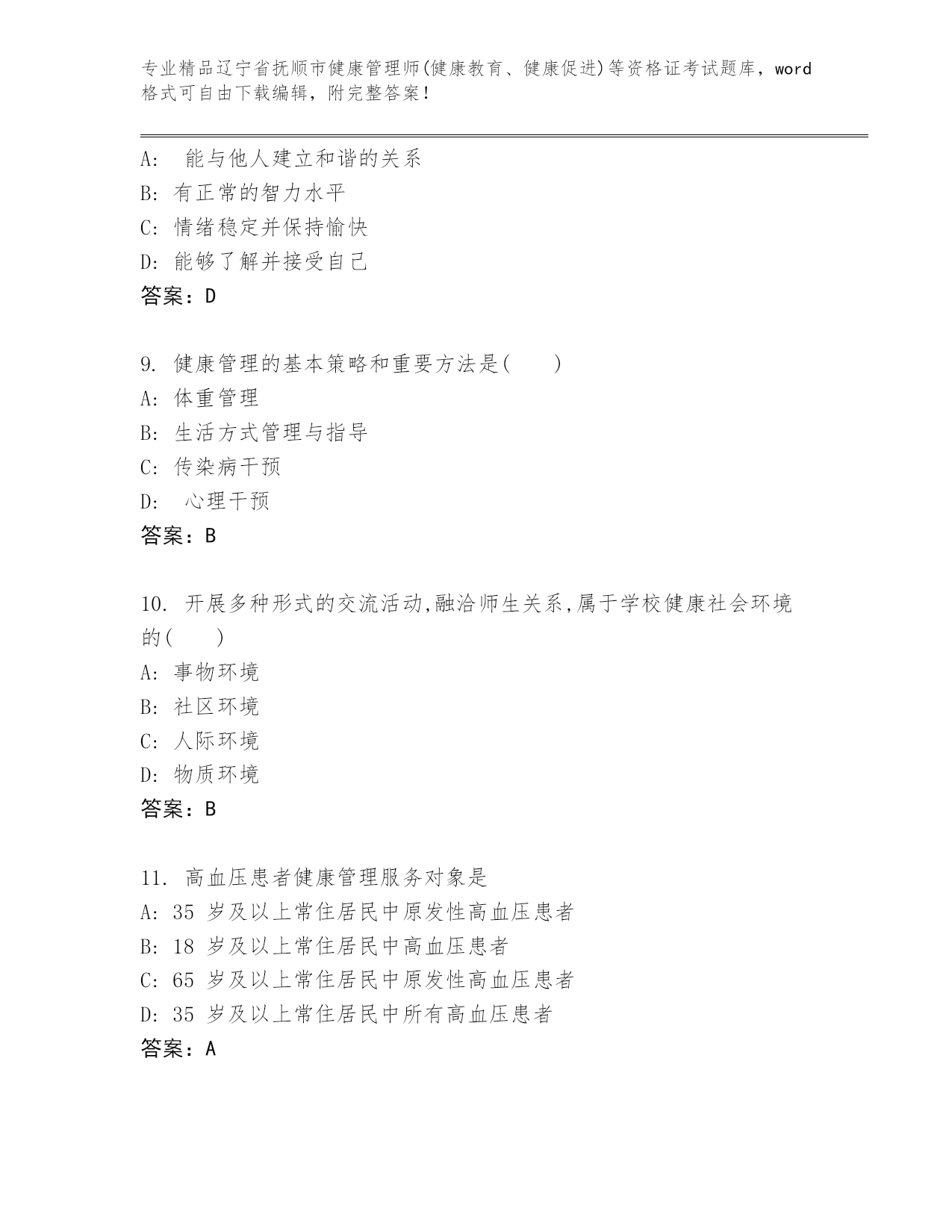 历年辽宁省抚顺市健康管理师(健康教育、健康促进)等资格证考试优选题库(预热题)