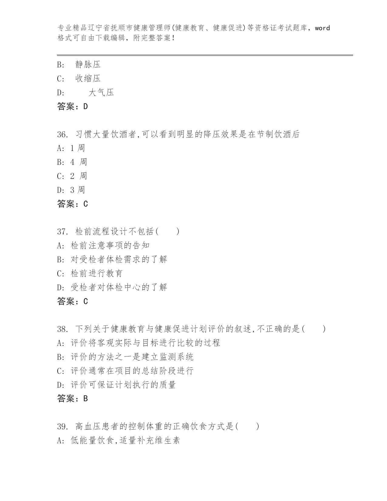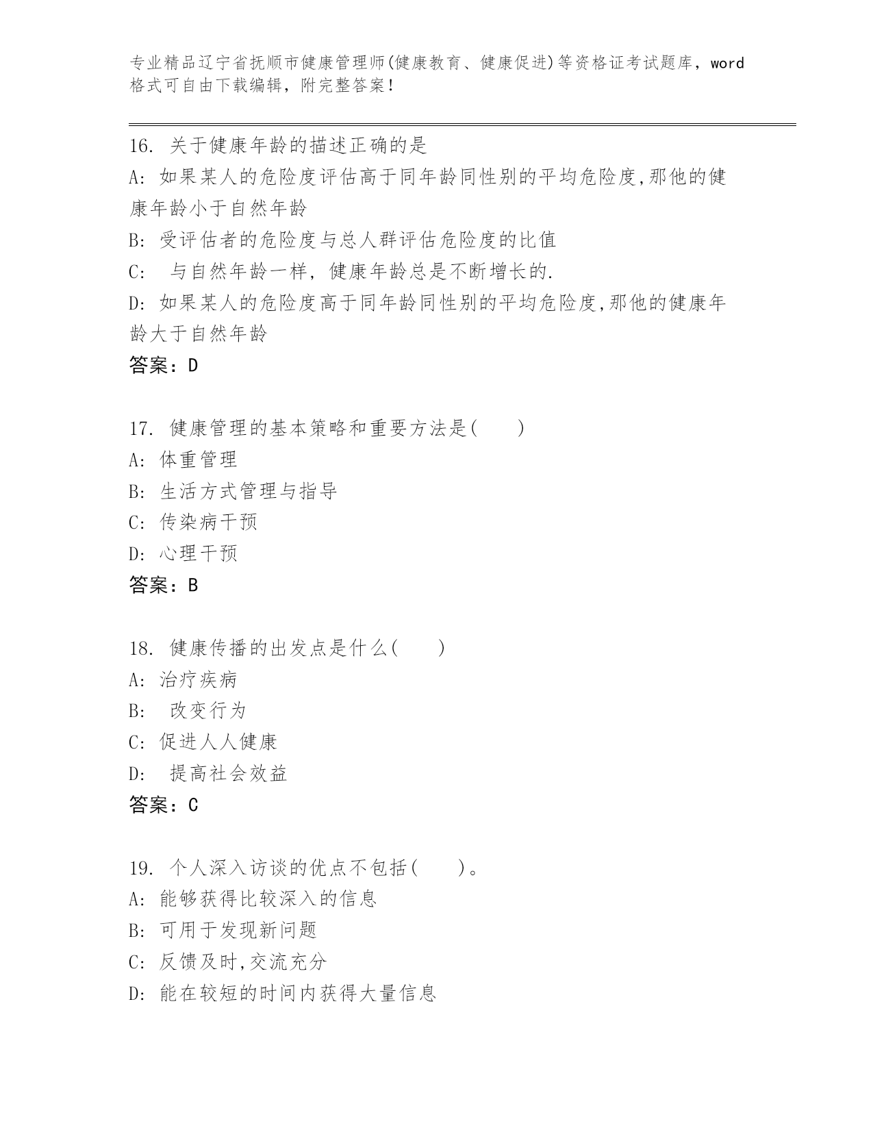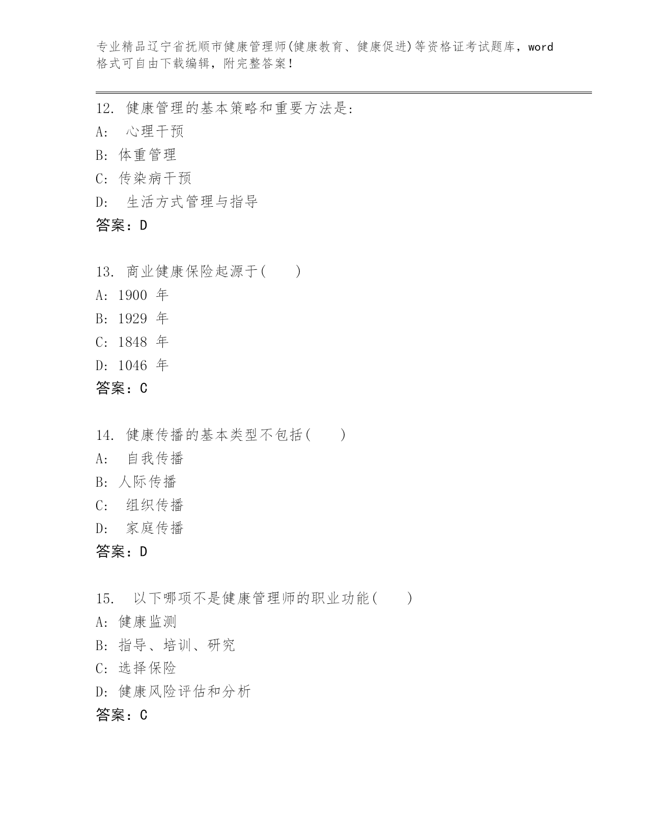 历年辽宁省抚顺市健康管理师(健康教育、健康促进)等资格证考试优选题库(预热题).docx