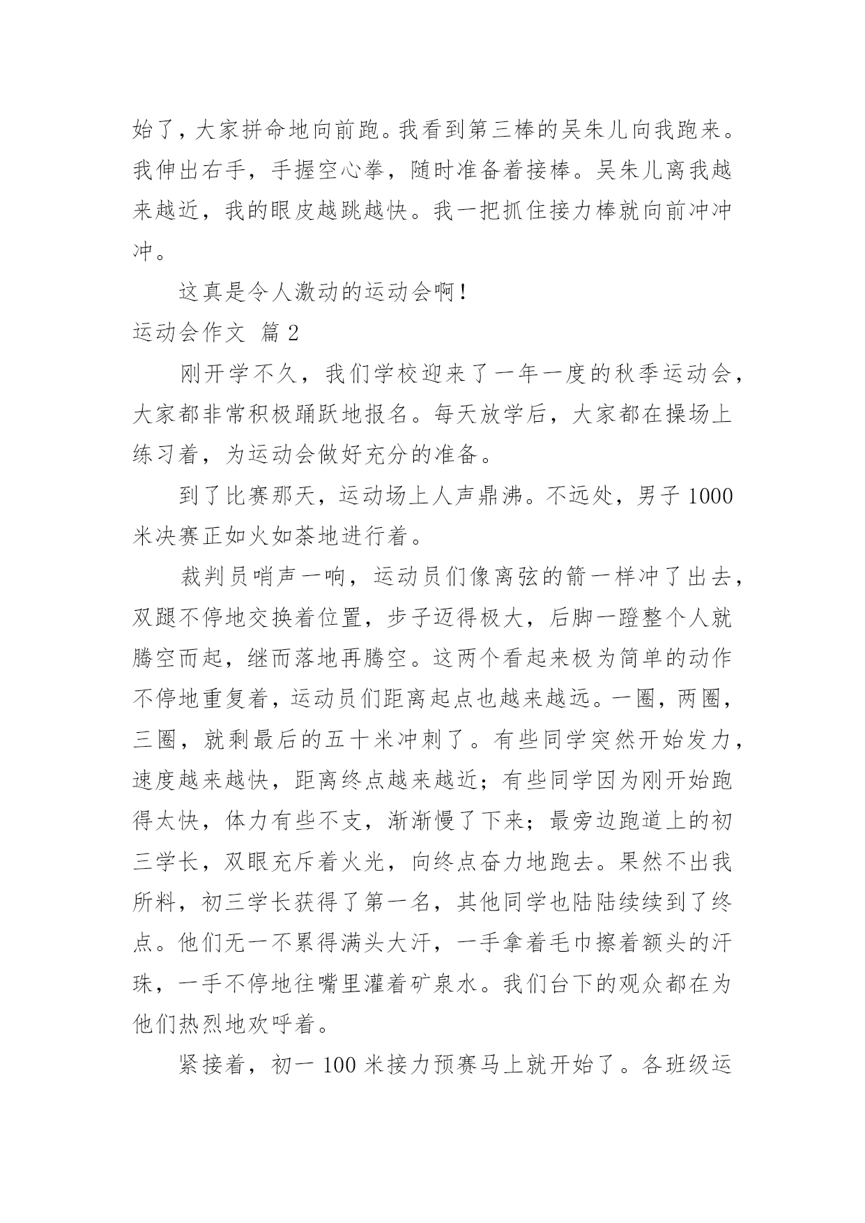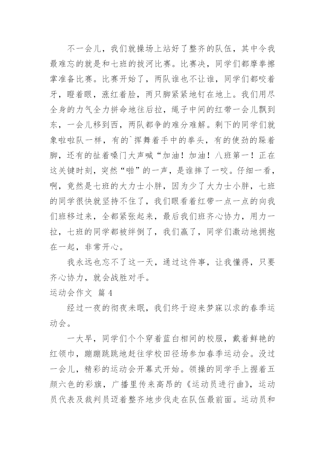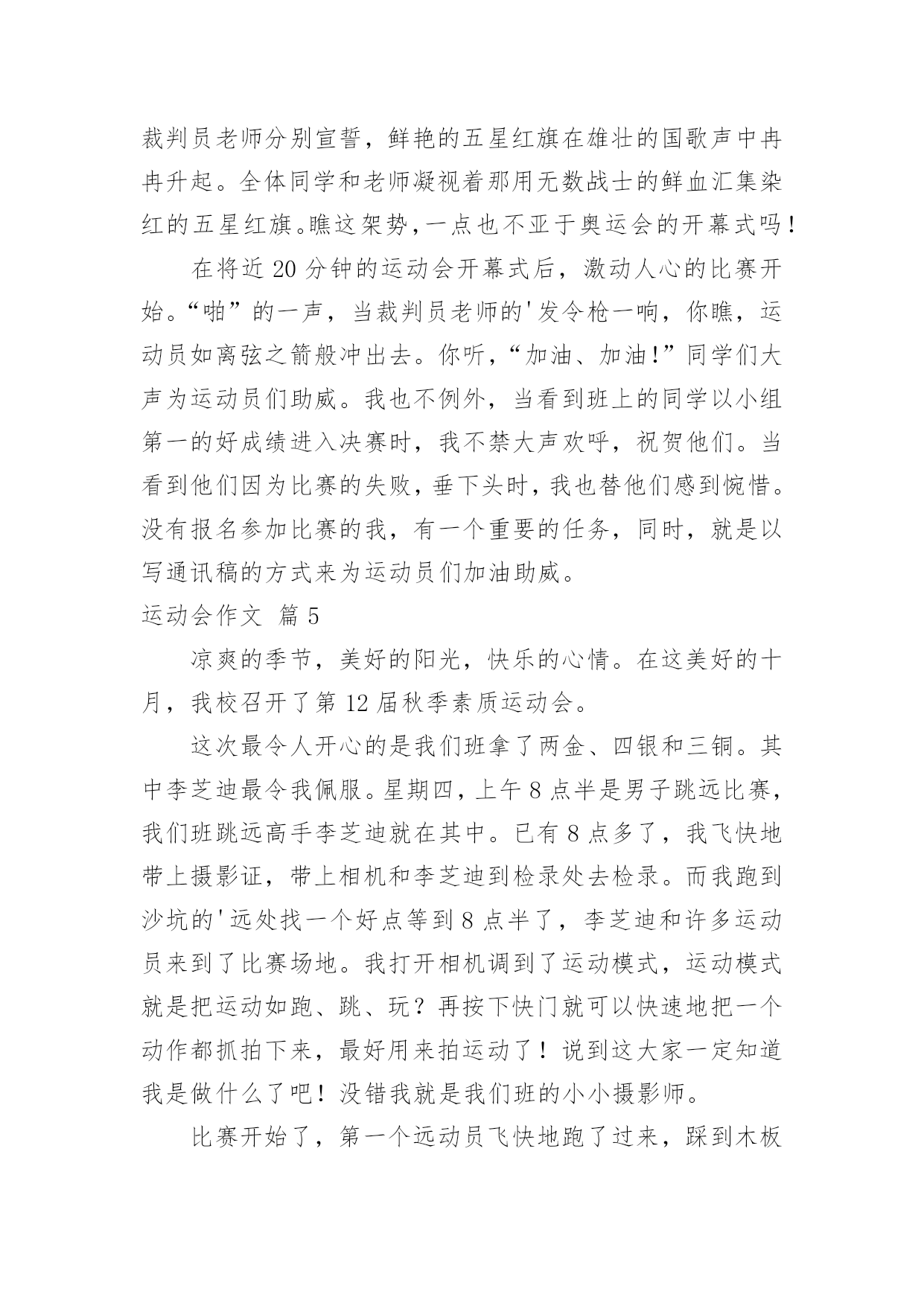 运动会作文运动会作文在日常学习、工作抑或是生活中,大家或多或少都会接触过作文吧,作文根据写作时限的不同可以分为限时作文和非限时作文。那么问题来了,到底应如何写一篇优秀的作文呢?下面是小编为大家收集的运动会作文8篇,希望对大家有所帮助。运动会作文篇1期盼已久的运动会终于来了。这天早上我们都很开心,希望看到我班运动员的出色表现。吴老师说明了运动员的.比赛项目。我也是运动员,我要用最好的状态发挥出最好的成绩。我有三项比赛。第一项是立定跳远。我双手握拳,高高举过耳朵,心里默默数数,数到二的时候,手摆到身后,双腿下蹲,用力一瞪跳出去。立定跳远可以跳三次。前两次都是1·45米。最后一次我跳了1·50米。我很开心,因为我有进步了。我准备去检录的时候,听到广播里报立定跳远的比赛结果。我听到了我的名字,特别开心。我飞奔到领奖台。大姐姐给我一束鲜花。傅老师微笑着给我一张奖状。傅老师还给我们拍了照。我的心情特别激动。我可以和其他同学一起完成接力赛,我很开心。比赛开始了,大家拼命地向前跑。我看到第三棒的吴朱儿向我跑来。我伸出右手,手握空心拳,随时准备着接棒。吴朱儿离我越来越近,我的眼皮越跳越快。我一把抓住接力棒就向前冲冲冲。这真是令人激动的运动会啊!运动会作文篇2刚开学不久,我们学校迎来了一年一度的秋季运动会,大家都非常积极踊跃地报名。每天放学后,大家都在操场上练习着,为运动会做好充分的准备。到了比赛那天,运动场上人声鼎沸。不远处,男子1000米决赛正如火如荼地进行着。裁判员哨声一响,运动员们像离弦的箭一样冲了出去,双蹆不停地交换着位置,步子迈得极大,后脚一蹬整个人就腾空而起,继而落地再腾空。这两个看起来极为简单的动作不停地重复着,运动员们距离起点也越来越远。一圈,两圈,三圈,就剩最后的五十米冲刺了。有些同学突然开始发力,速度越来越快,距离终点越来越近;有些同学因为刚开始跑得太快,体力有些不支,渐渐慢了下来;最旁边跑道上的初三学长,双眼充斥着火光,向终点奋力地跑去。果然不出我所料,初三学长获得了第一名,其他同学也陆陆续续到了终点。他们无一不累得满头大汗,一手拿着毛巾擦着额头的汗珠,一手不停地往嘴里灌着矿泉水。我们台下的观众都在为他们热烈地欢呼着。紧接着,初一100米接力预赛马上就开始了。各班级运动员缓缓走上跑道,拿好红白相间的接力棒,弓下身子,在起跑线上各自站好位置等待比赛的开始。随着,裁判员的哨声响起,七班的第一棒同学以领先之势冲在了最前边,只见他略弯着腰紧咬牙关,手臂前后摆动,双腿快速的交替着,朝前方快速地跑着。突然意外出现了,那根红白相间的.接力捧随着他手的大幅度摆动竟飞了出去,落在了六班同学的跑道上。他赶忙向前飞奔几步,弯下腰拾起了接力棒。而后,他站起身来,此时其他班级的同学已经超过了他,他由于失误成了最后一个。他紧忙向前狂奔,但还是有些晚了,在他交棒的时候,第二棒的同学用责备的目光看了他一眼,便跑走了。最后他们班是倒二,他似乎很沮丧,蹲了下来,双手捂着脸陷入了沉思。他班上的同学都纷纷围了上来安慰他,良久,他才绽开了笑容。运动会还在紧张有序地进行着,场上的加油呐喊声,和运动员挥洒汗水的声音,构成了一副充满朝气的画面。运动会结束后,我们班喜获2金3银1铜的好成绩,这真是一次难忘的运动会啊!运动会作文篇3一下课,班主任快速地走进教室,大声地宣布道:“今天学校要举行一次运动会。”一听到这个消息,班里立刻沸腾了起来,其中张翼霖最引人注目,他手中拿了一支钢笔,高举双臂,用力地挥舞着,嘴里还喊着:“去参加运动了,太好了。”不一会儿,我们就操场上站好了整齐的队伍,其中令我最难忘的就是和七班的拔河比赛。比赛决,同学们都摩拳擦掌准备比赛。比赛开始了,两队谁也不让谁,同学们都咬着牙,瞪着眼,涨红着脸,两只脚紧紧地钉在地上。我们用尽全身的力气全力拼命地往后拉,绳子中间的红带一会儿飘到东,一会儿移到西,两队都争的难分难解。剩下的同学们就象啦啦队一样,有的`挥舞着手中的拳头,有的使劲的跺着脚,还有的扯着嗓门大声喊“加油!加油!八班第一!正在这关键时刻,突然“啪”的一声,是谁摔了一咬。仔细一看,啊,竟然是七班的大力士小胖,因为少了大力士小胖,七班的同学很快就坚持不住了,我们眼看着红带一点一点的向我们班移过来,全都紧张起来,最后我们班齐心协力,用力一拉,七班的同学都被绊倒了,我们赢了,同学们激动地拥抱在一起,非常开心。我永远也忘不了这一天,通过这件事,让我懂得,只要齐心协力,就会战胜对手。运动会作文篇4经过一夜的彻夜未眠,我们终于迎来梦寐以求的春季运动会。一大早,同学们个个穿着蓝白相间的校服,戴着鲜艳的红领巾,蹦蹦跳跳地赶往学校田径场参加春季运动会。没过一会儿,精彩的运动会开幕式开始。领操的同学手上握着五颜六色的彩旗,广播里传来高昂的《运动员进行曲》,运动员代表及裁判