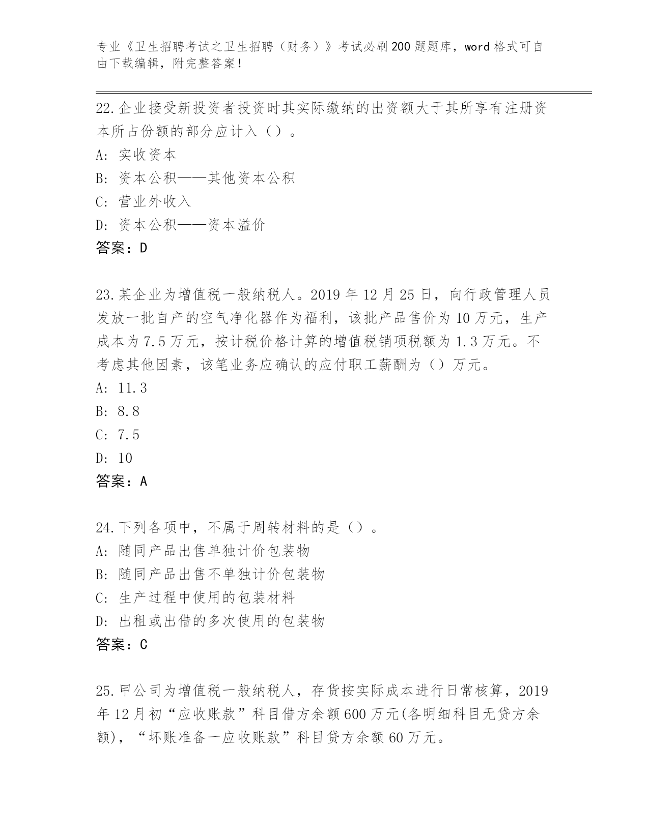 整理江苏省淮阴区《卫生招聘考试之卫生招聘(财务)》考试必刷200题王牌题库答案下载