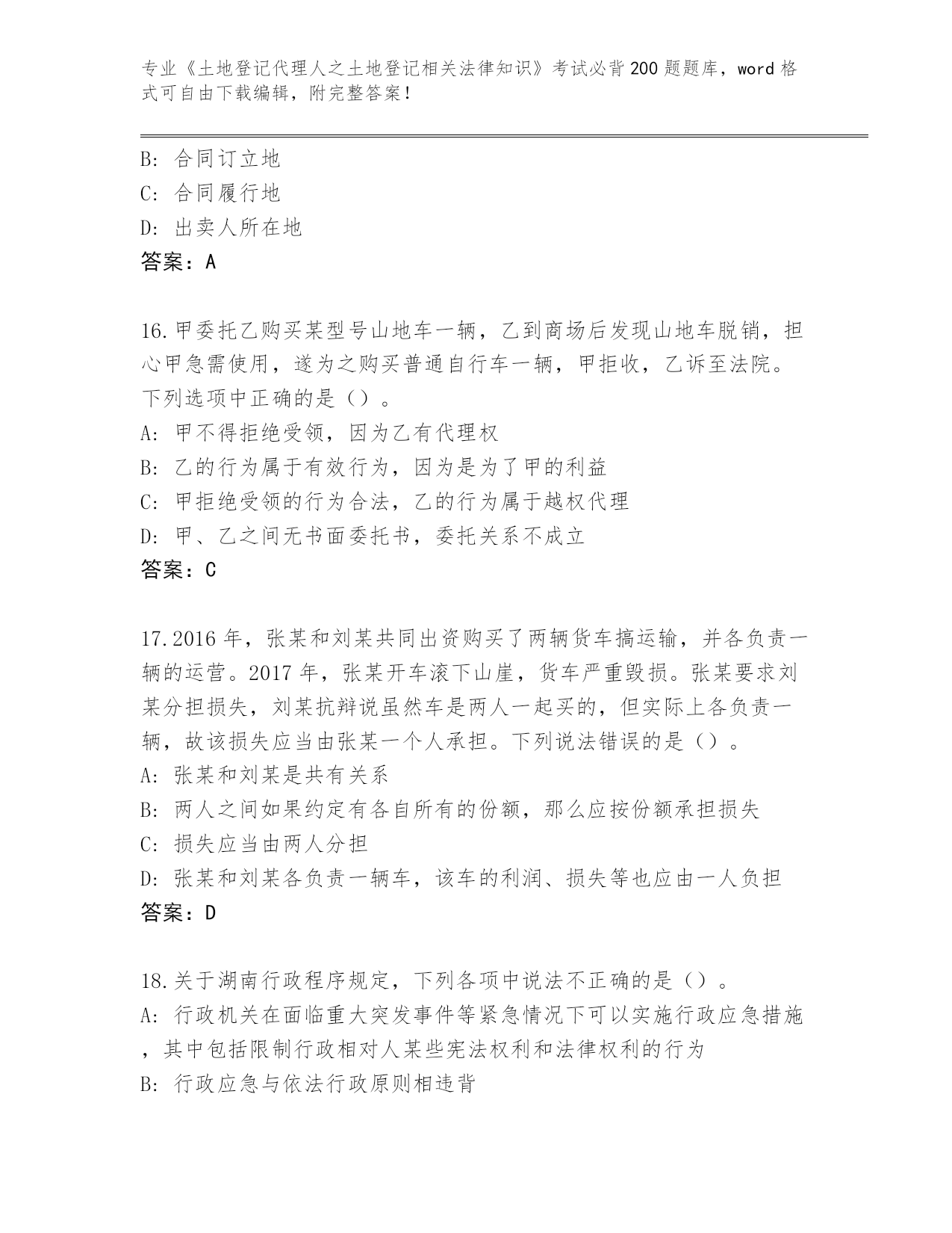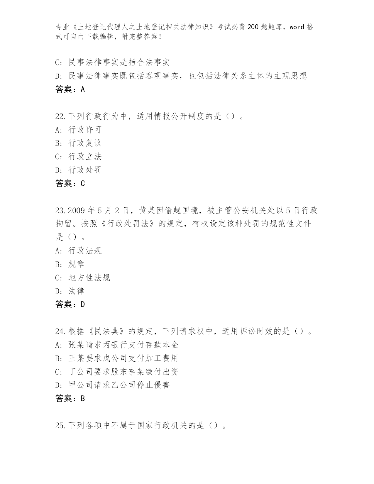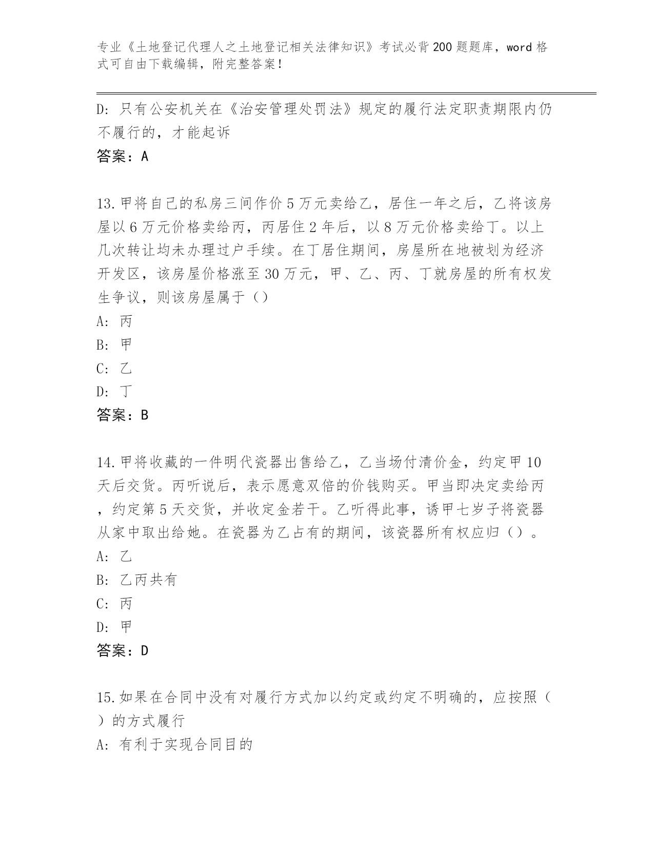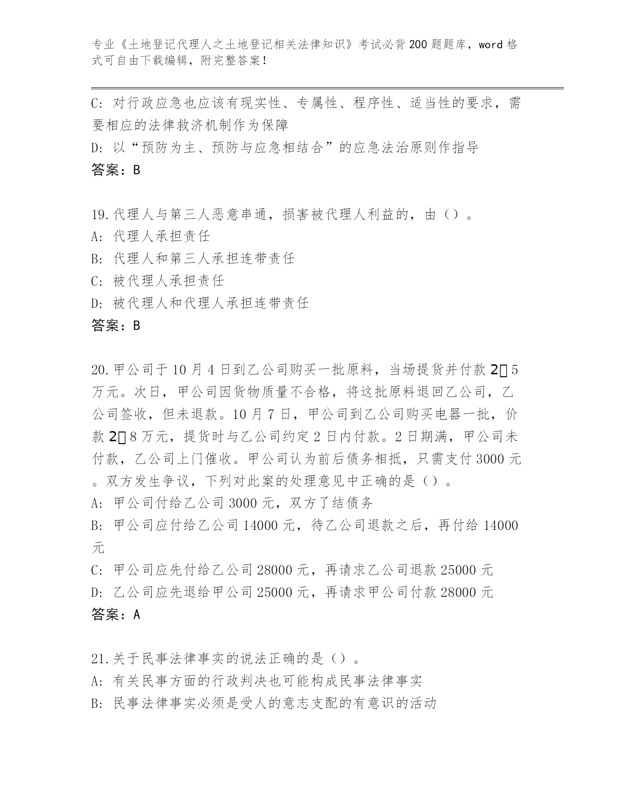 2024黑龙江省泰来县《土地登记代理人之土地登记相关法律知识》资格考试必刷200题真题(网校专用)