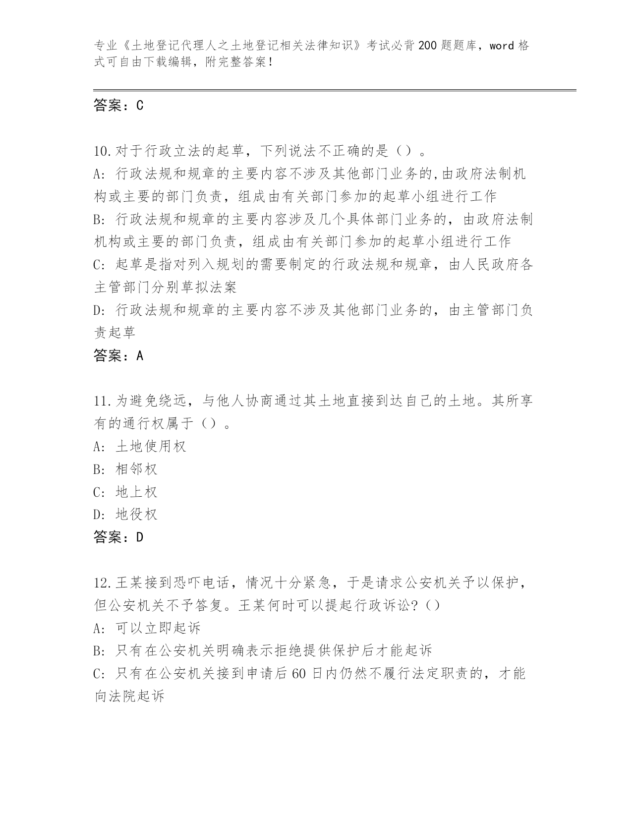 陕西省吴堡县历年《土地登记代理人之土地登记相关法律知识》考试必背200题题库大全(考点提分)