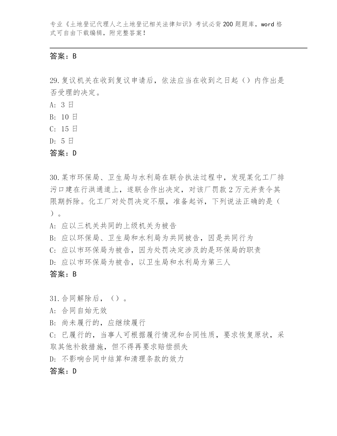 完整版河北省隆化县《土地登记代理人之土地登记相关法律知识》资格考试必背200题完整题库带解析答案
