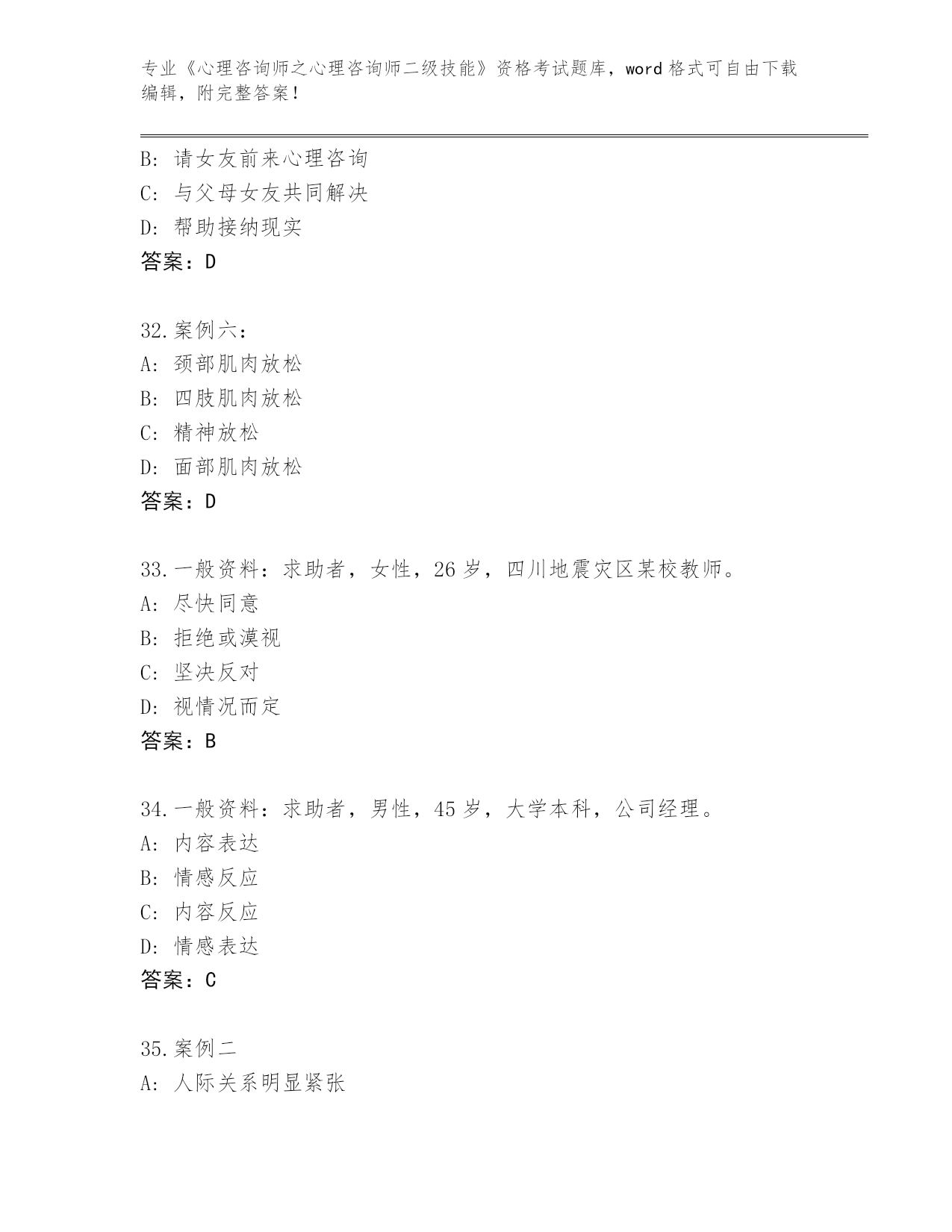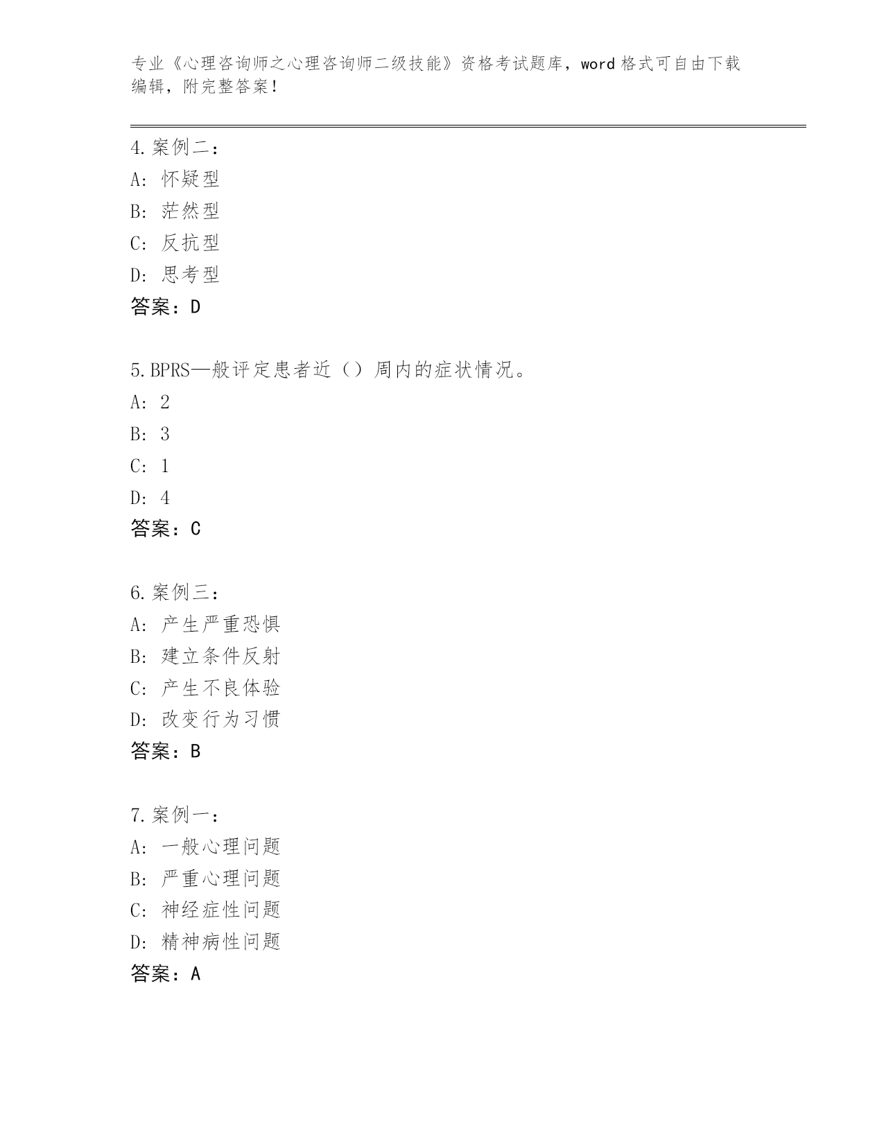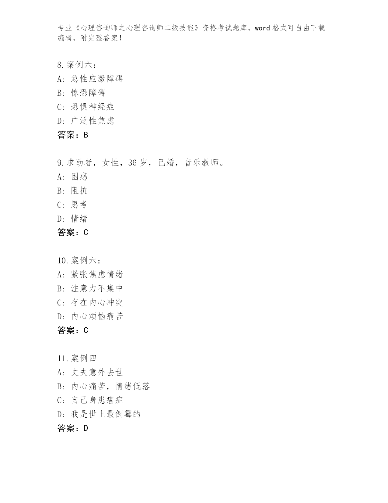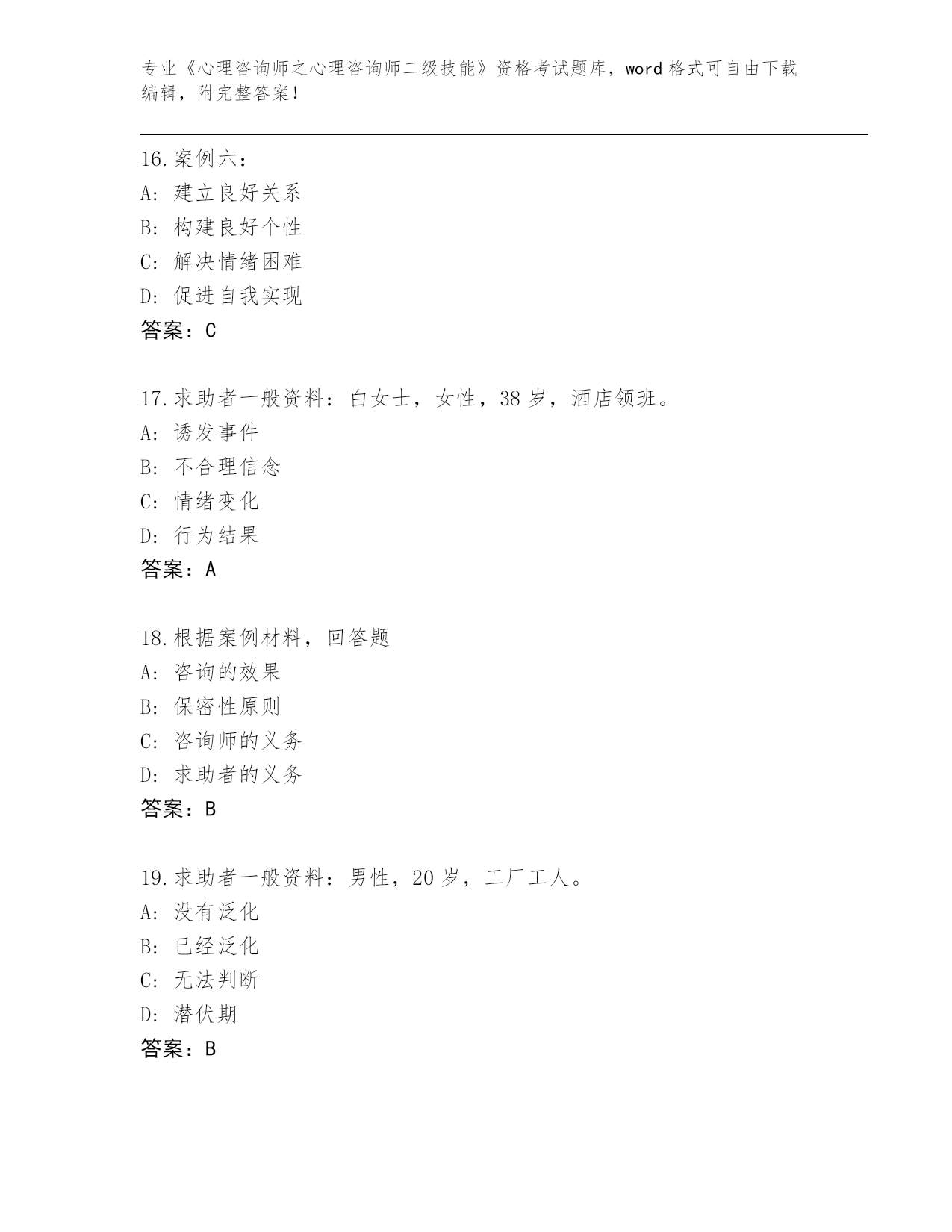 整理河南省《心理咨询师之心理咨询师二级技能》考试通关秘籍题库含答案(巩固)