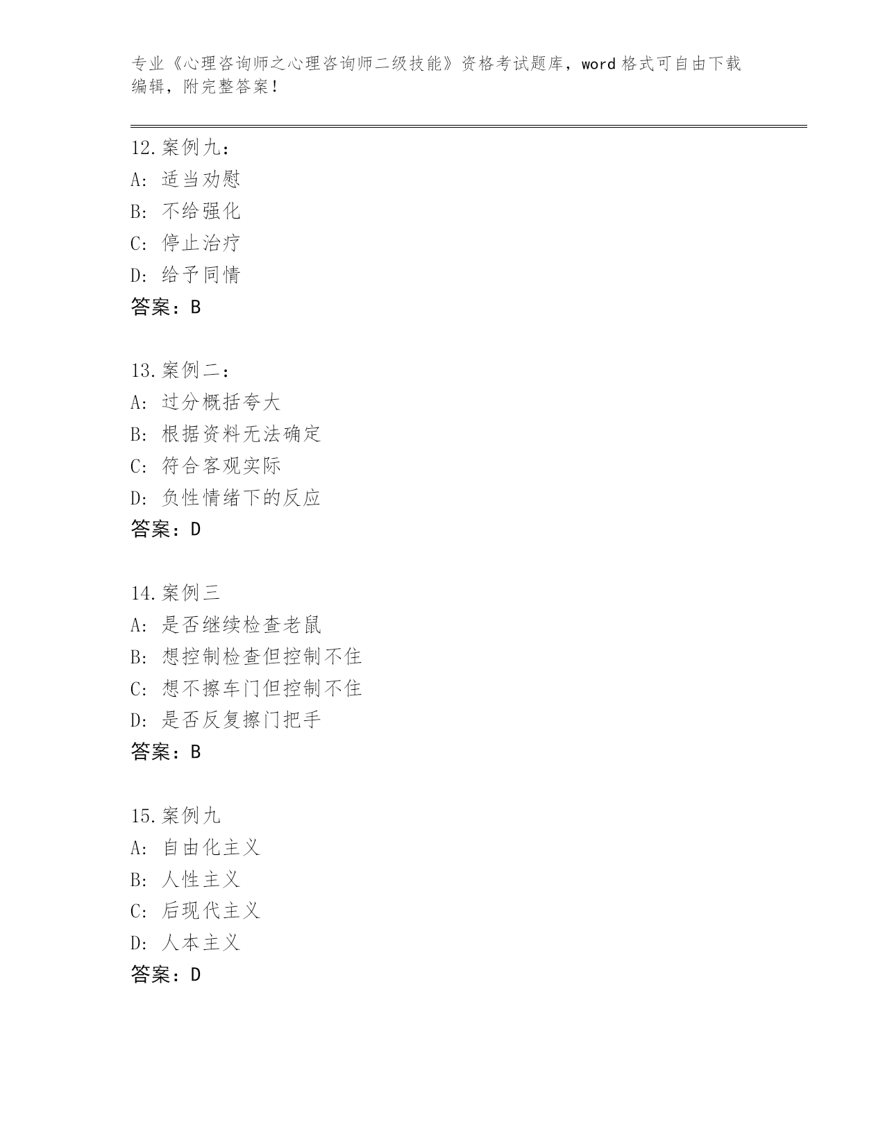 河南省召陵区2024年《心理咨询师之心理咨询师二级技能》资格考试必背200题真题及答案