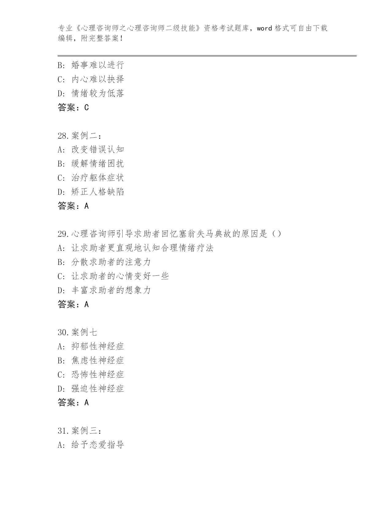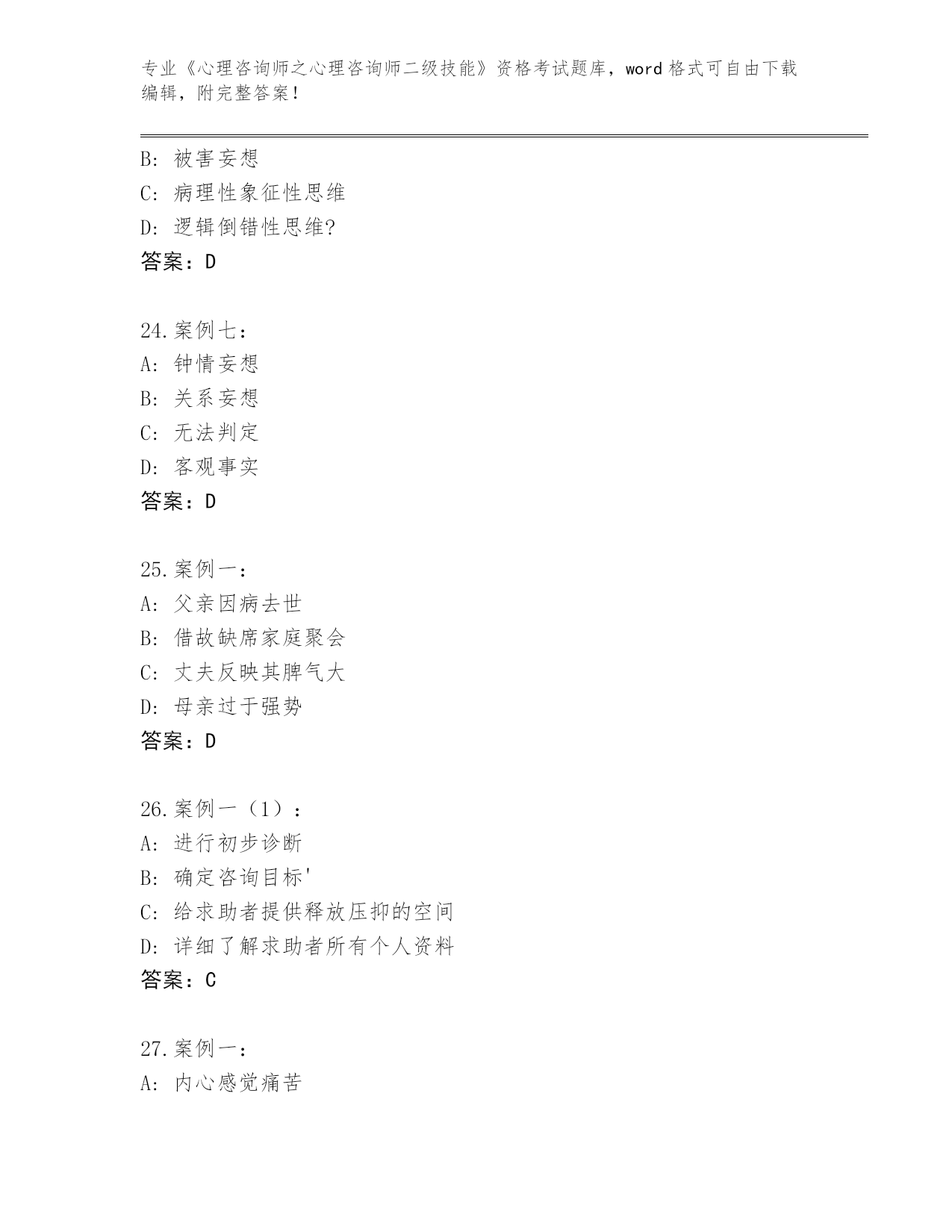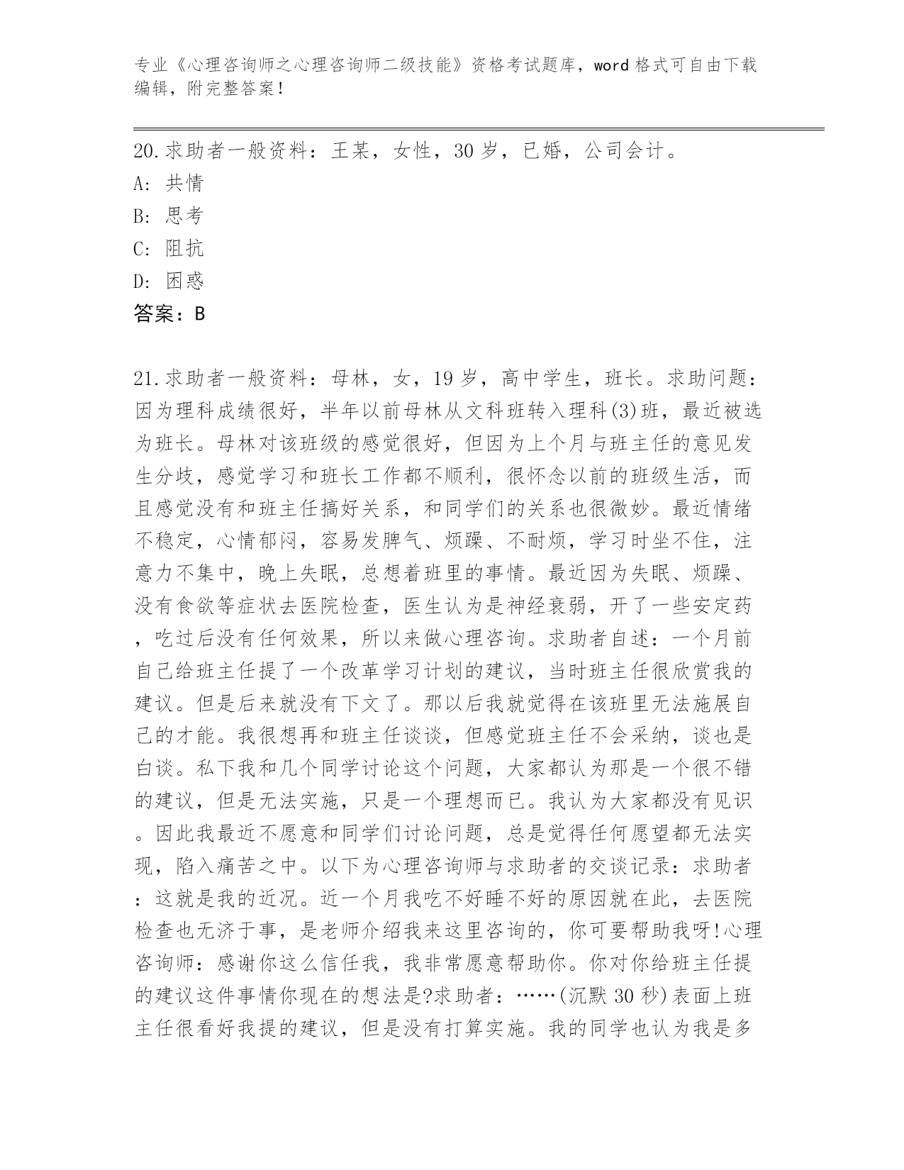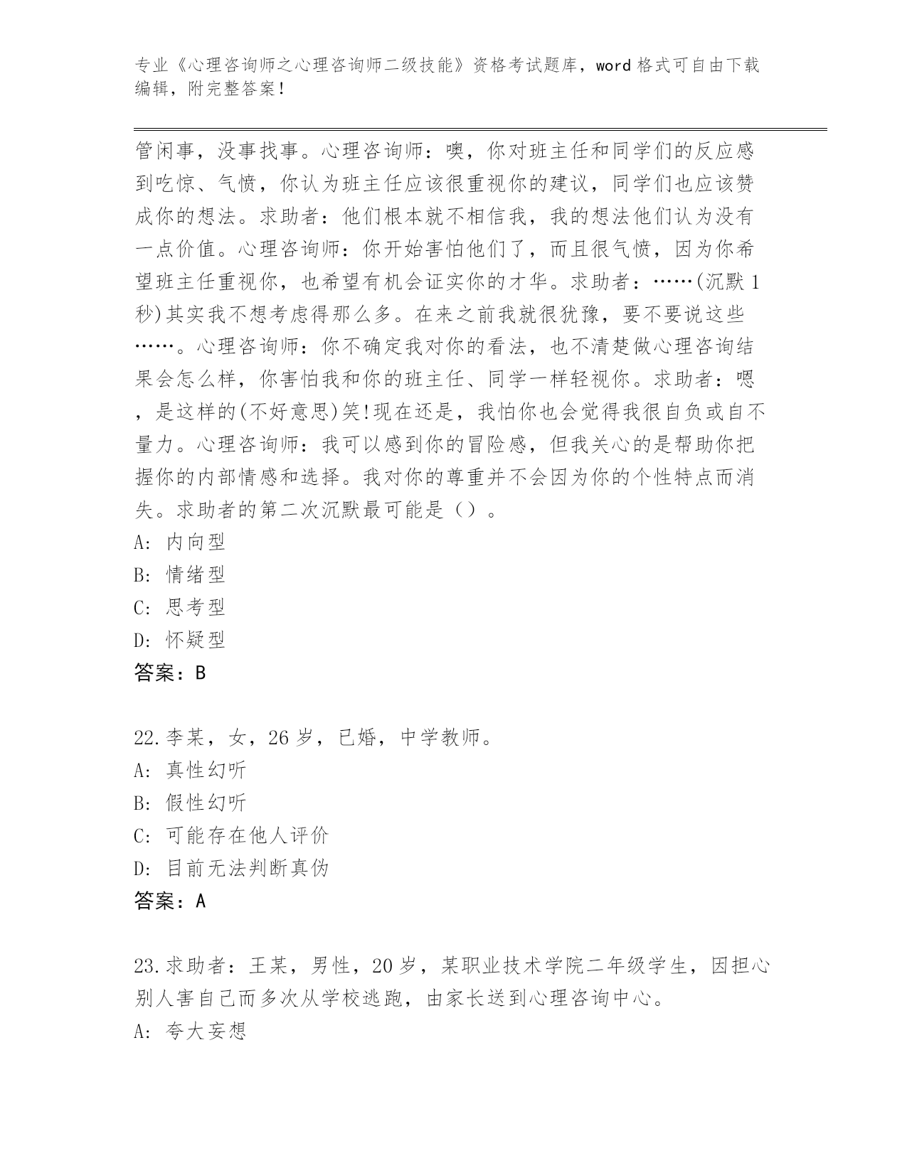 2024年贵州省播州区《心理咨询师之心理咨询师二级技能》资格考试通关秘籍题库(巩固)