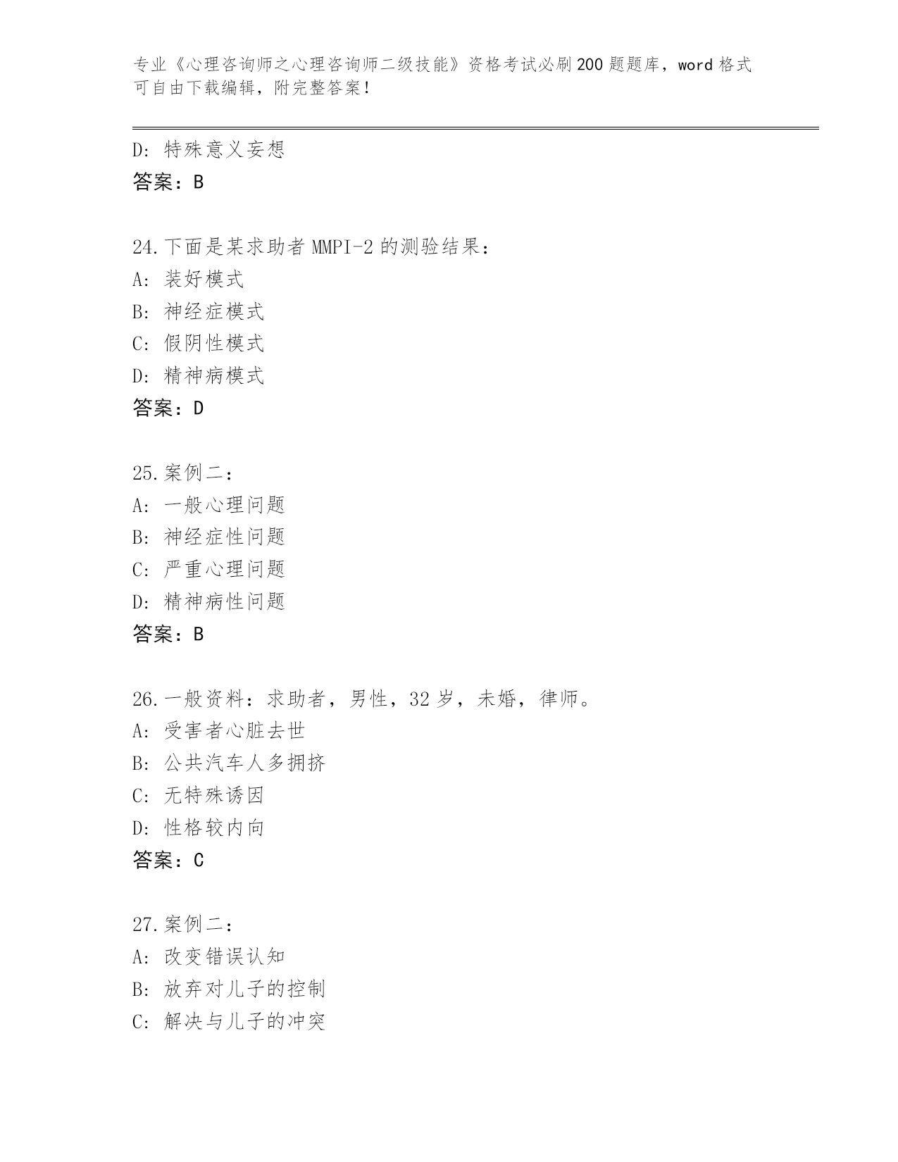 云南省隆阳区2024年《心理咨询师之心理咨询师二级技能》资格考试必刷200题大全【巩固】