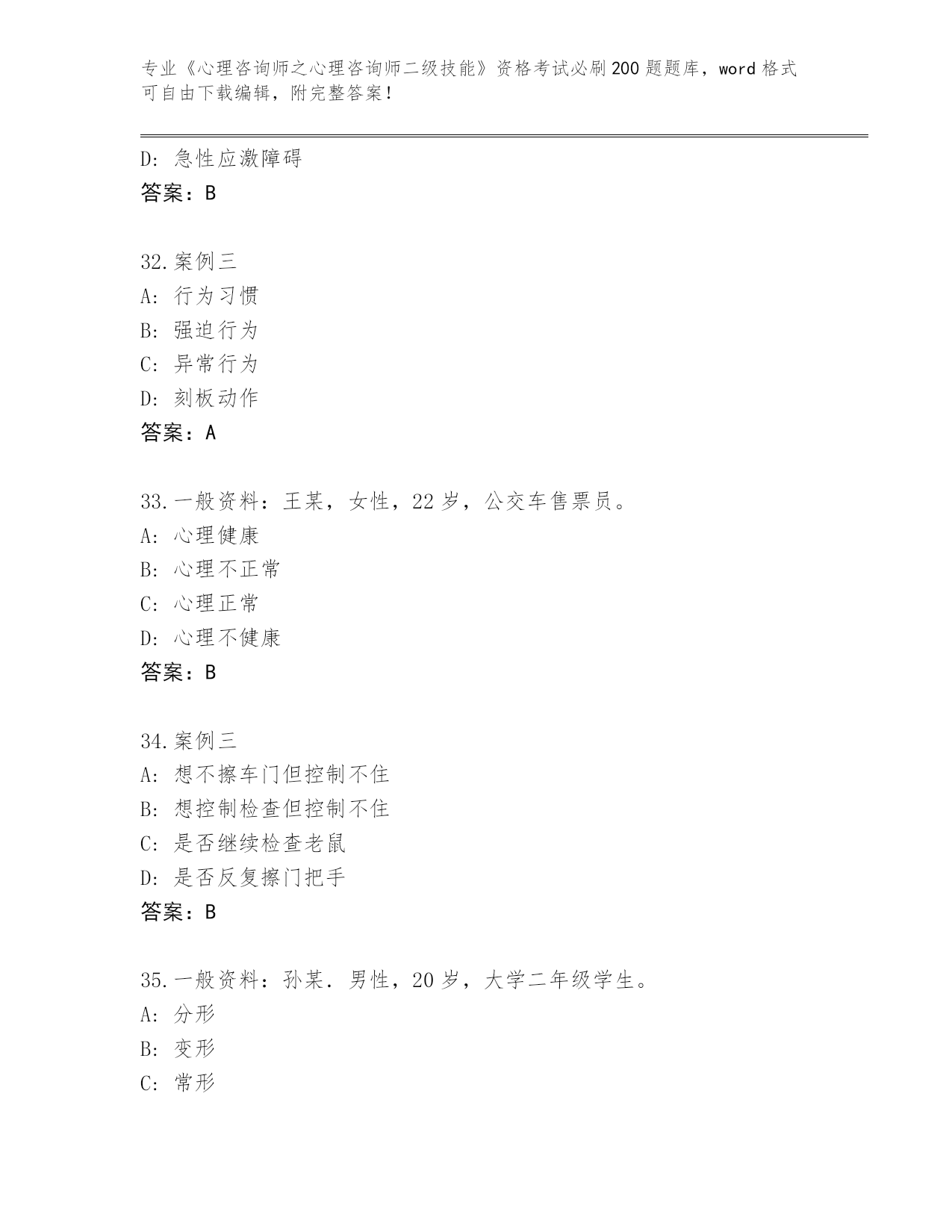 云南省历年《心理咨询师之心理咨询师二级技能》考试必刷200题大全答案下载
