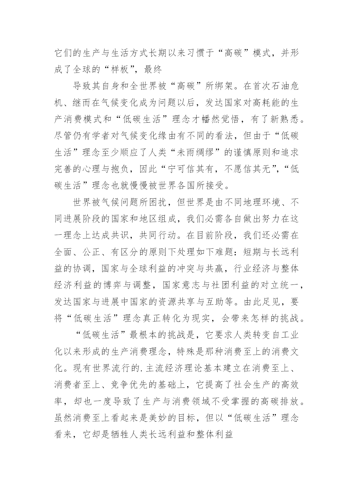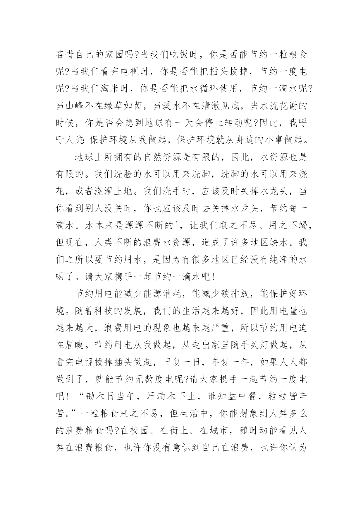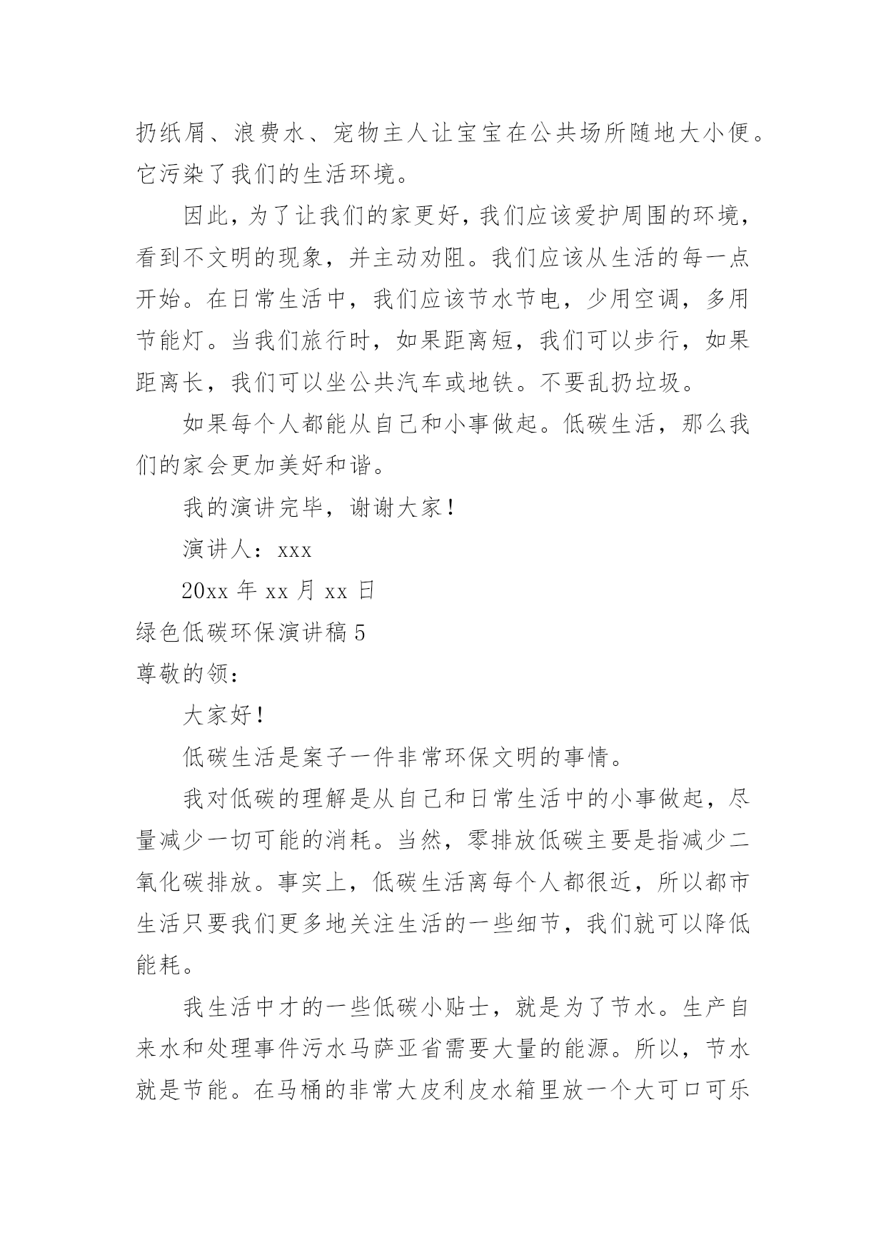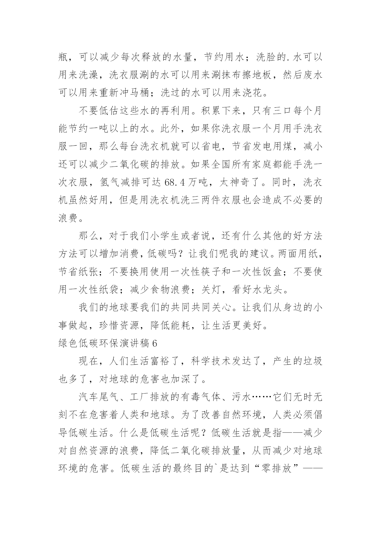 绿色低碳环保演讲稿[荐]绿色低碳环保演讲稿15篇演讲稿的内容要根据具体情境、具体场合来确定,要求情感真实,尊重观众。在社会发展不断提速的今天,越来越多人会去使用演讲稿,相信许多人会觉得演讲稿很难写吧,下面是小编收集整理的绿色低碳环保演讲稿,希望对大家有所帮助。绿色低碳环保演讲稿1亲爱的老师们,亲爱的学生们:大家好!我今天演讲的题目是《低碳生活》。同学们,你们在空调房玩电脑的时候,坐私家车玩的时候,在西餐厅享受美味牛排的时候,有没有想过“低碳”的问题?低碳生活是指减少日常作息所消耗的能量,减少二氧化碳的排放。现在,我们生活的地球面临的一个严重问题是如何有效控制二氧化碳的排放。的确,在现实生活中,工厂排放的废气、汽车、摩托车越来越多,人们大量砍伐树木、使用一次性用品。人类的各种行为正在污染地球的臭氧层。如果任其发展,地球在不久的将来肯定会被淹没。一些科学家认为,照这样下去,地球可能只有200年的'寿命。为了我们碧水蓝天的家,同学们,一定要行动起来,弥补。从现在开始,从我开始,从生活的每一点开始。例如:1、少开摩托车和汽车,多开电动车,多骑自行车。2、少吃肉制品,因为肉制品在生产过程中会产生大量的碳。3、少看电视,多看书。4、多棵树。5、少用塑料袋,自带购物袋。同学们,让我们为地球的美好明天贡献一份力量!绿色低碳环保演讲稿2老师、同学们:大家好!20xx年底的气候大会中“低碳生活”是个新概念,提出的却是世界可持续进展的老问题,它反映了人类因气候变化而对将来产生的担忧,世界对此问题的共识日益增多。目前的主流看法是,导致气候变化的过量碳排放是在人类生产和消费过程中消失的,要削减碳排放就要相应优化和约束某些消费和生产活动。笔者以为,对占主流、有共识的“低碳生活”理念主旨可以概括为“适度吃、住、行、用,不铺张,多运动”。如以中国传统文化来解释这一理念的主要,还可再简化为“勤、俭”二字。“低碳生活”这一理念着眼于人类将来。近几百年来,以大量矿石能源消耗和大量碳排放为标志的工业化过程让发达国家在碳排放上遥遥领先于进展中国家。当然也正是这一工业化过程使发达国家在科技上领先于其他国家,也令它们的生产与生活方式长期以来习惯于“高碳”模式,并形成了全球的“样板”,最终导致其自身和全世界被“高碳”所绑架。在首次石油危机、继而在气候变化成为问题以后,发达国家对高耗能的生产消费模式和“低碳生活”理念才幡然觉悟,有了新熟悉。尽管仍有学者对气候变化缘由有不同的看法,但由于“低碳生活”理念至少顺应了人类“未雨绸缪”的谨慎原则和追求完善的心理与抱负,因此“宁可信其有,不愿信其无”,“低碳生活”理念也就慢慢被世界各国所接受。世界被气候问题所困扰,但世界是由不同地理环境、不同进展阶段的国家和地区组成,我们必需各自做出努力在这一理念上达成共识,共同行动。在目前阶段,我们还必需在全面、公正、有区分的原则下处理如下难题:短期与长远利益的协调,国家与全球利益的冲突与共赢,行业经济与整体经济利益的博弈与调整,国家意志与社团利益的对立统一,发达国家与进展中国家的资源共享与互助等。由此足见,要将“低碳生活”理念真正转化为现实,会带来怎样的挑战。“低碳生活”最根本的挑战是,它要求人类转变自工业化以来形成的生产消费理念,特殊是那种消费至上的消费文化。现有世界流行的.主流经济理论基本建立在消费至上、消费者至上、竞争优先的基础上,它提高了社会生产的高效率,却也一度导致了生产与消费领域不受掌握的高碳排放。虽然消费至上看起来是美妙的目标,但以“低碳生活”理念看来,它却是牺牲人类长远利益和整体利益的短视行为。所以,选择“低碳生活”理念,就意味着我们必需拿出足够的政治士气来进行一次资源和利益的再协调和再安排,而且我们还必需要有足够的力量,并预备相应的行动手段来端详我们的消费习惯。“低碳生活”向人类提出的是前所未有的问题,没有现成的阅历、理论与选择模式,我们唯一的选择就是创新,创新我们的生活模式,以爱护地球家园、为人类将来造福为宗旨。绿色低碳环保演讲稿3亲爱的老师、同学们:大家好!低碳生活是我们人人向往的,但由于我们人类各种不良的行为,打破了这个美好的低碳梦。随着世界日益发达,许许多多小汽车,摩托车,电瓶车……交通工具陆续在我们这个家园中降临了,人们纷纷都把它们一个个带回了家,当成自己家中的一员。而正当我们在家中欢乐时,我们的大家园正在遭受着重重的迫害和深深的打击。我们大家心中的低碳梦就在此刻破碎了!小花美丽的脸蛋染上了灰蒙蒙的烟气,小草直挺挺的身躯被可恶的脚踩得直不起身子。春节的到来,家家户户都纷纷到集市上买了美丽的烟花和炫彩的爆竹,放寒假的前几天,学校都告诫我们大家在寒假生活中尽量不要放那些烟花爆竹,因为天气的`影响,放烟花爆竹会使我们呼吸的空气更加有毒,有害,会对我们的身体带来严重的伤害。我