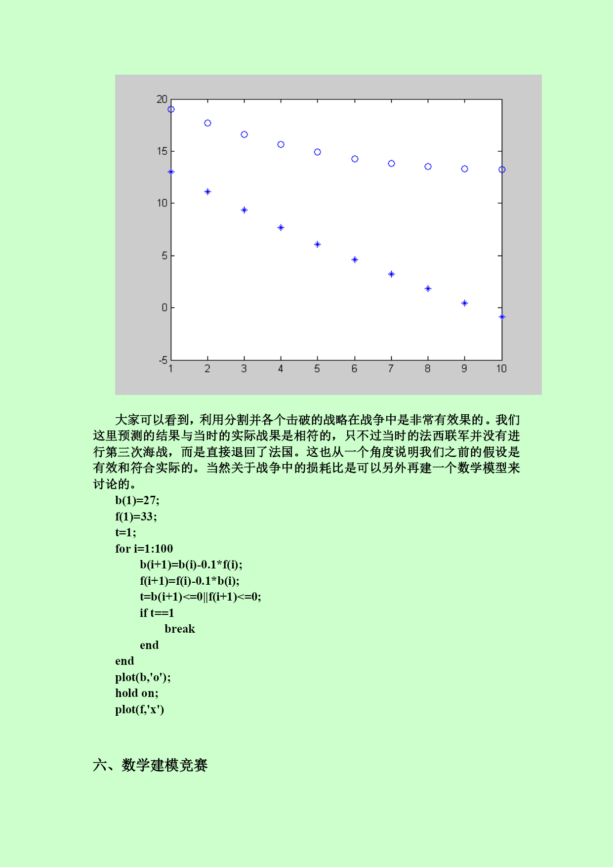 数学模型与数学建模一、为什么需要数学模型随着电子计算机的出现和科学技术的迅猛发展,数学的应用已不再局限于传统的物理领域,而正以空前的广度和深度逐步渗透到人类活动的各个领域。生物、医学、军事、社会、经济、管理……,各学科、各行业都涌现出大量的实际课题,亟待人们去研究、去解决。当今社会的发展充分体现出了以数学建模为中心的“数学技术”在各个方面发展中所起的重要作用。可以说在许多重大高科技行动中,从事先设计、制订方案到信息传递和指挥控制,处处依赖于数学技术。为了能对被研究的对象进行系统深入地分析,掌握它的特征和规律,对它的静态和动态性质予以评价,并预测它的变化趋势,进而做出正确的决策,同时对它进行有效的管理和控制,就必须建立被研究对象的数学模型。数学建模已成为对被研究对象的特性进行系统研究和仿真的必不可少的基础。从这一意义上讲,可以说数学建模是一切科学研究的基础。没有一个较好的数学模型就不可能得到较好的研究结果,所以,建立一个较好的数学模型乃是解决实际问题的关键之一。二、数学建模对于我们有什么用处对于同学们来说,数学建模可以帮助大家深化对所学数学知识的认识,并初步掌握一定的科研能力。很多人都认为在现行的大学的课程中,其中60%是无用课程,还有20%是可用可不用的,只有20%是必须的。这一现象反眏了我国高等教育在一定程度上存在着弊端,高校数学教育也是如此。传统的数学教育不论是在教学内容上,还是在教学方式上都与当今的数学发展与实际需要严重脱轨。1、传统的数学教育内容陈旧,内容与实际、时代脱轨。数学是研究现实世界中的空间形式与数量关系的一门科学,而形与数的进一步拓广再加上迅速发展的计算与应用的“异体受精”,使人们对数学是什么的认识也有了进一步的发展,比如一种现代观点就认为数学是模式和秩序的科学。其中模式即指寻求数、空间,科学、计算机以及想象中的模式,数学的研究对象为数、机会、算法和变化的各种模式。今天的现代数学科学包括核心数学(即纯粹数学)、应用数学、统计学和计算数学、高度数学化的领域(计算机科学、理论物理、量子力学、计量经济学等)。而在大中学校中非相关专业的学生所学的数学课程中涉及纯数学较多,其他数学的内容很少,主要是学习传统的大学数学的老三样:高等数学(微积分)、线性代数、概率论与数理统计。正如美国数学家L.A.斯蒂恩所说:“读完高中数学课程的人,大约达到17世纪中叶的数学水平;而大学一年级的微积分,也不过使一些学生的数学水平达到18世纪而已……现在美国人中,能学到一点超过18世纪数学知识的还不到百分之一。”而在中国这个比例恐怕还要小,对于应用数学以及19世纪以后的数学知识,很多人甚至连今天的大学生基本上也是一片空白(至少为严重缺乏)。加之今天的大学教育已大众化,老三样给人以内容陈旧,与实际、时代脱轨的深刻印象。大学数学教育应包括三方面内容:基本知识的传授,进一步自学能力的培养,应用数学知识去解决问题的能力的培养。当前我们的大学教育应该说在传授知识方面是比较成功的,但在培养自学和应用能力上是不够的。2、在教学方式上以教师讲授为主,学生被动学习现代教育的思想、理论、观点,都是为了适应时代的发展,适应社会对人才需要的变化,在教育改革上提出的更高要求。在人类逐渐步入“信息密集、节奏快变”的信息时代的今天,一个人即使穷毕生精力也难以读完或记住他将从事的工作所必须掌握的知识。一般书架型、工匠型的人才已经不适应知识快速更新的信息社会的发展需要,而素质全面,接受继续教育能力强,智能型,有创新精神的人才,则更适应信息时代的激烈竞争。而现行数学教学方式主要为“教师讲,学生听(记笔记),做习题,改习题,考试”,该方式单一,学生始终被动。3、从认识论上分析,缺实用的两头从认识论上分析数学应从实践中来,经过人类的抽象思维总结成理论,然后再将理论应用到实践中去,指导人们的生产生活。所以数学是按“实践——理论——实践”发展到今天的,其中第一步为建立数学模型,后一步为检验(相符程度、好的程度)。但是现行的大学数学学习主要是中间部分即理论,如高等数学(微积分)、线性代数、概率论与数理统计等,缺实用的两头。这样学生自然会问“数学有什么用?”。4、从技术手段上分析,对数学软件一无所知目前我们的大学数学教学很少甚至根本不用计算机,学生对数学软件几乎一无所知。学生的数学学习被淹没在抽象的概念与各种复杂的解题过程中,无法使学生将静态的理解变为动态的分析,将感性认识由外部形态深入到事物的内部结构来把握事物的内在规律和本质特征,当然启迪学生的创造思维更无从谈起。我国有关专家呼吁:“目前我国理工科大学的数学教育存在着与当代科学技术的发展不相适应的矛盾,其中工科类院校尤为突出”,“计算机的影响,理应不断反映到数学教育中来”。其实在数学教学中如何使用技