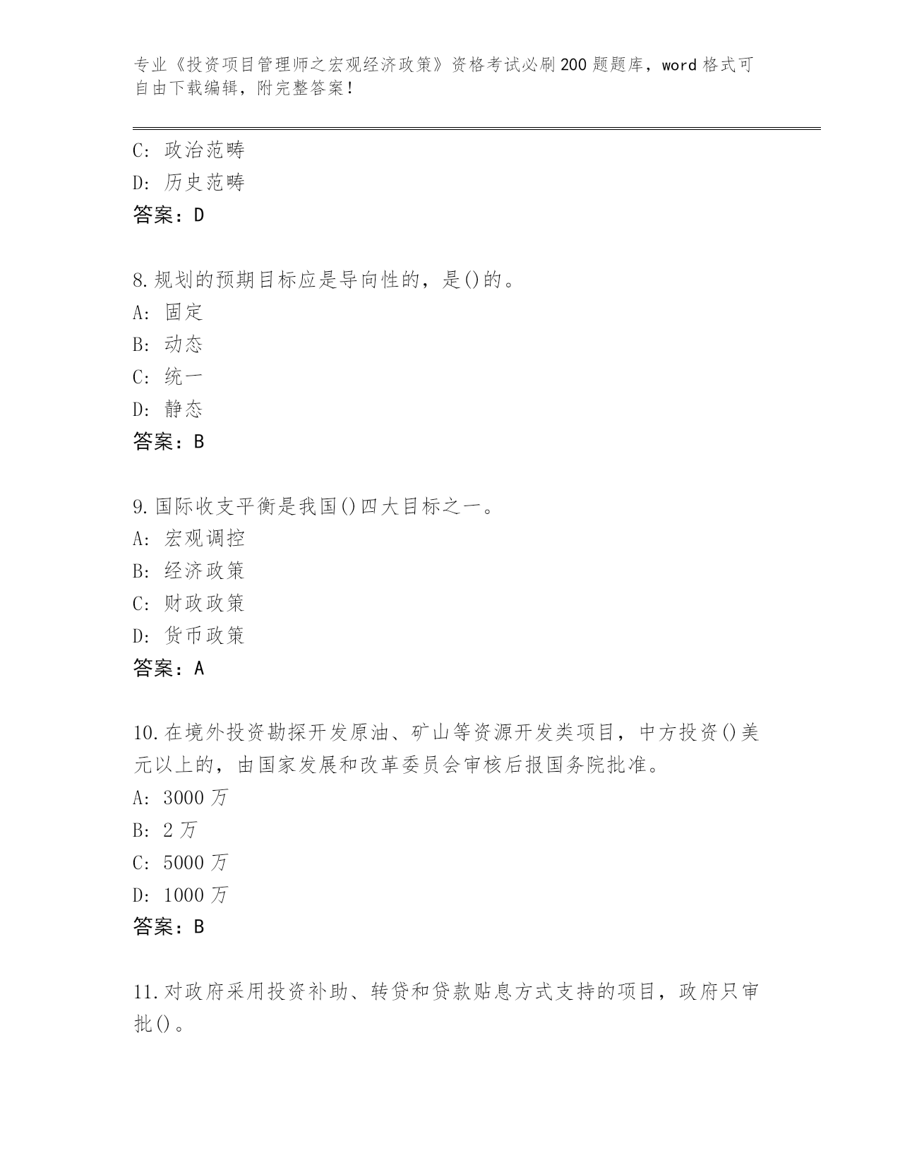 江西省整理《投资项目管理师之宏观经济政策》资格考试必刷200题真题(各地真题)