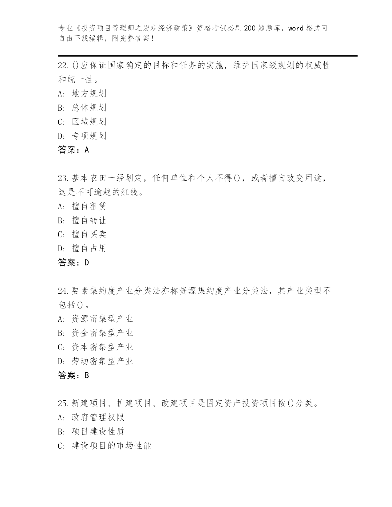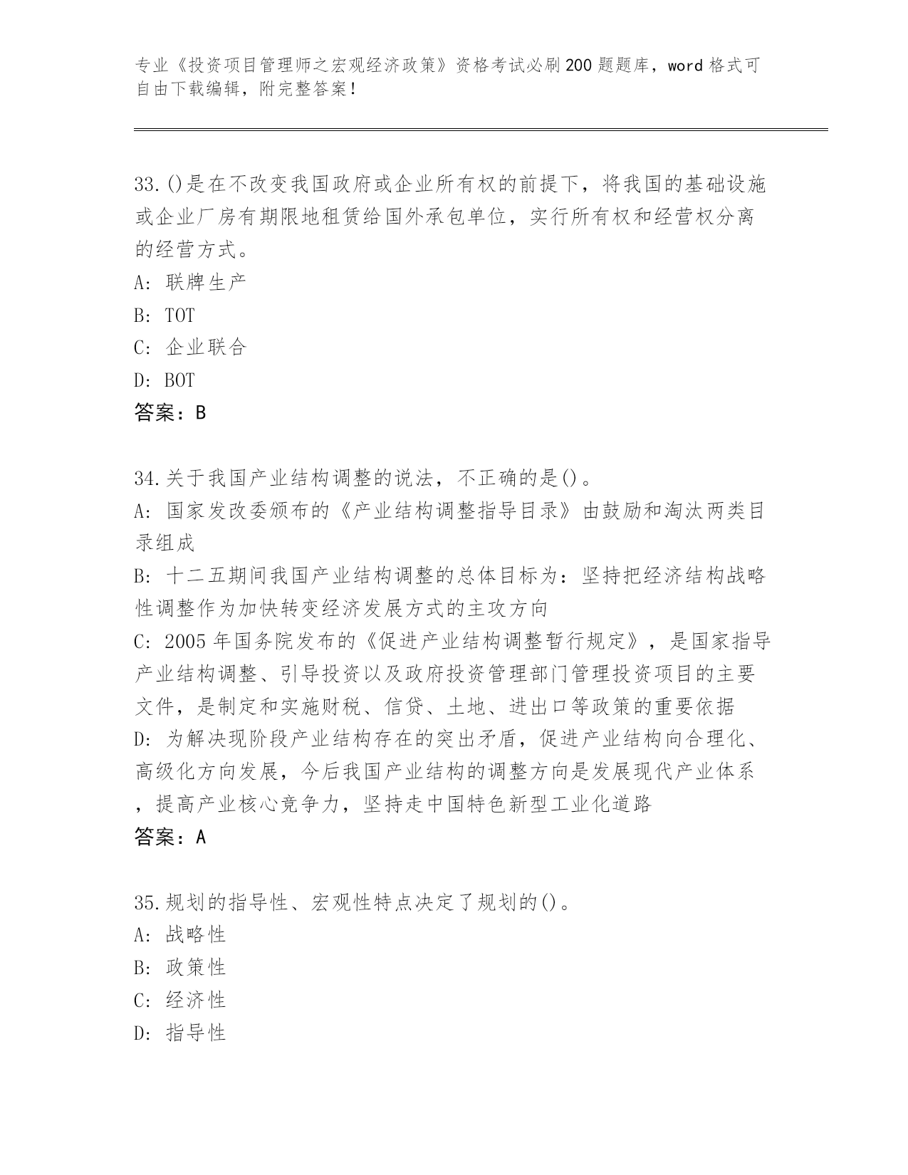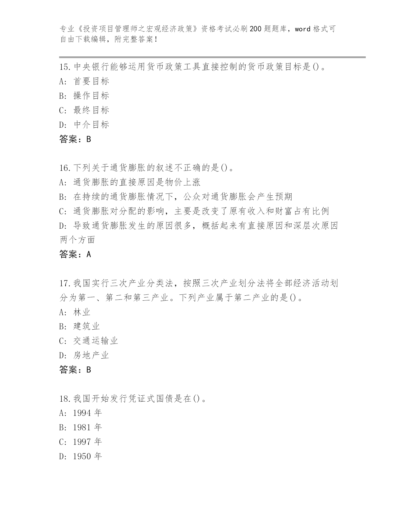 2023-2024年安徽省临泉县《投资项目管理师之宏观经济政策》资格考试必刷200题完整题库(各地真题)