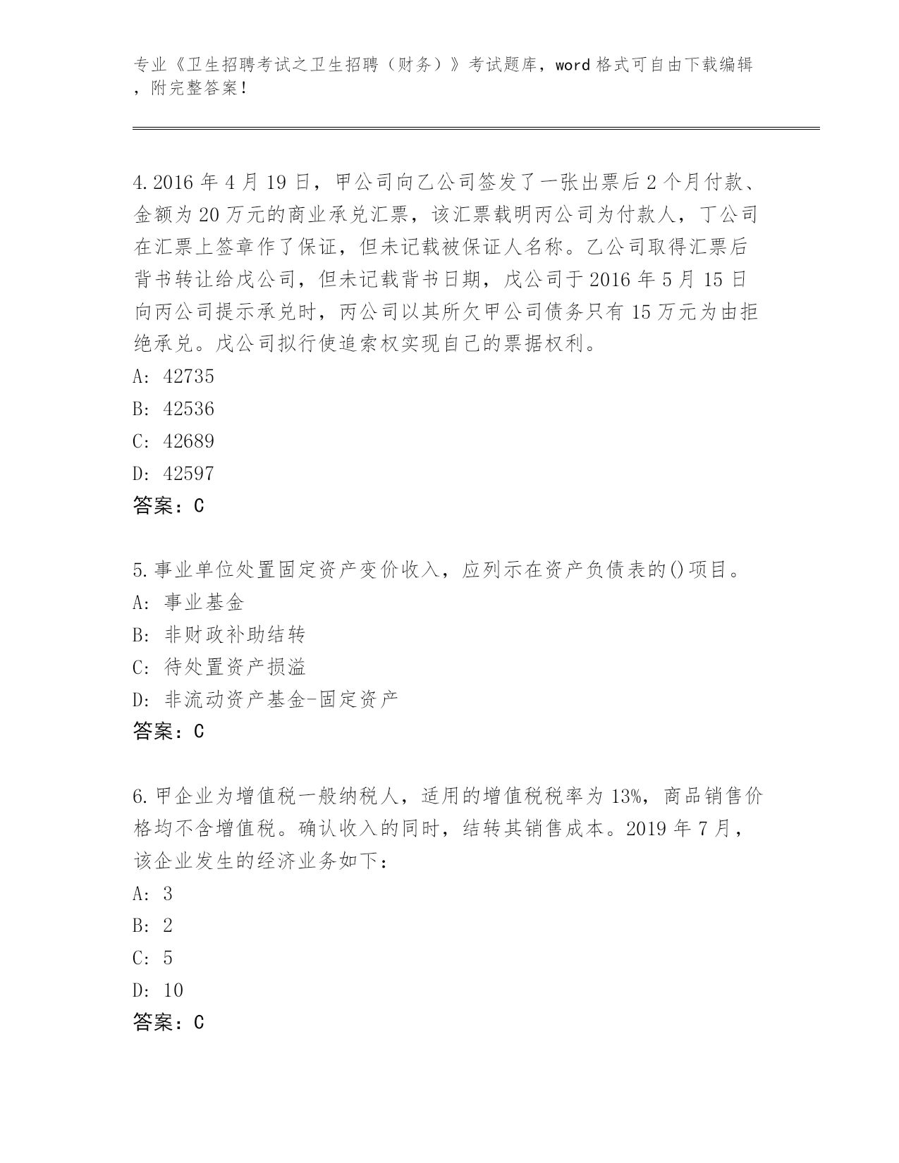 福建省大田县2024年《卫生招聘考试之卫生招聘(财务)》考试必刷200题真题有完整答案