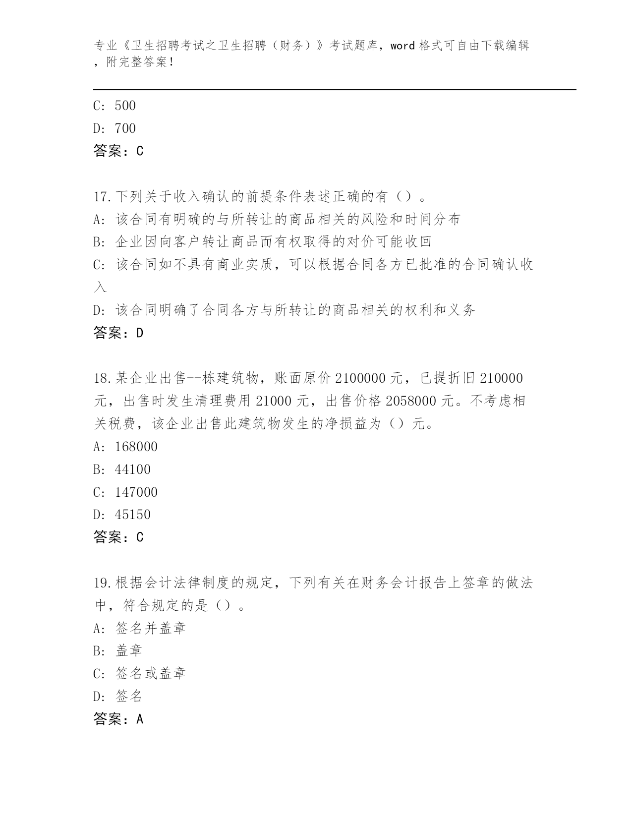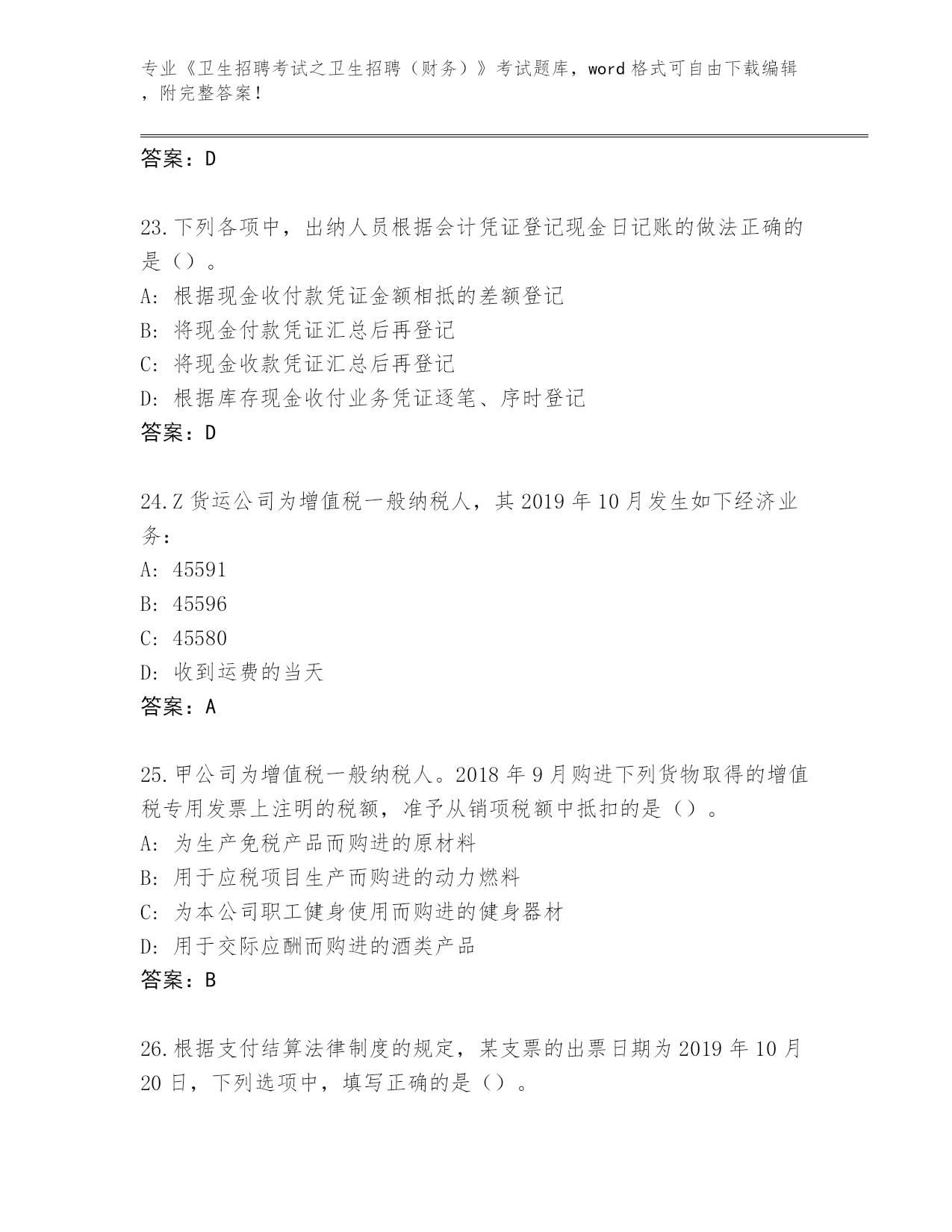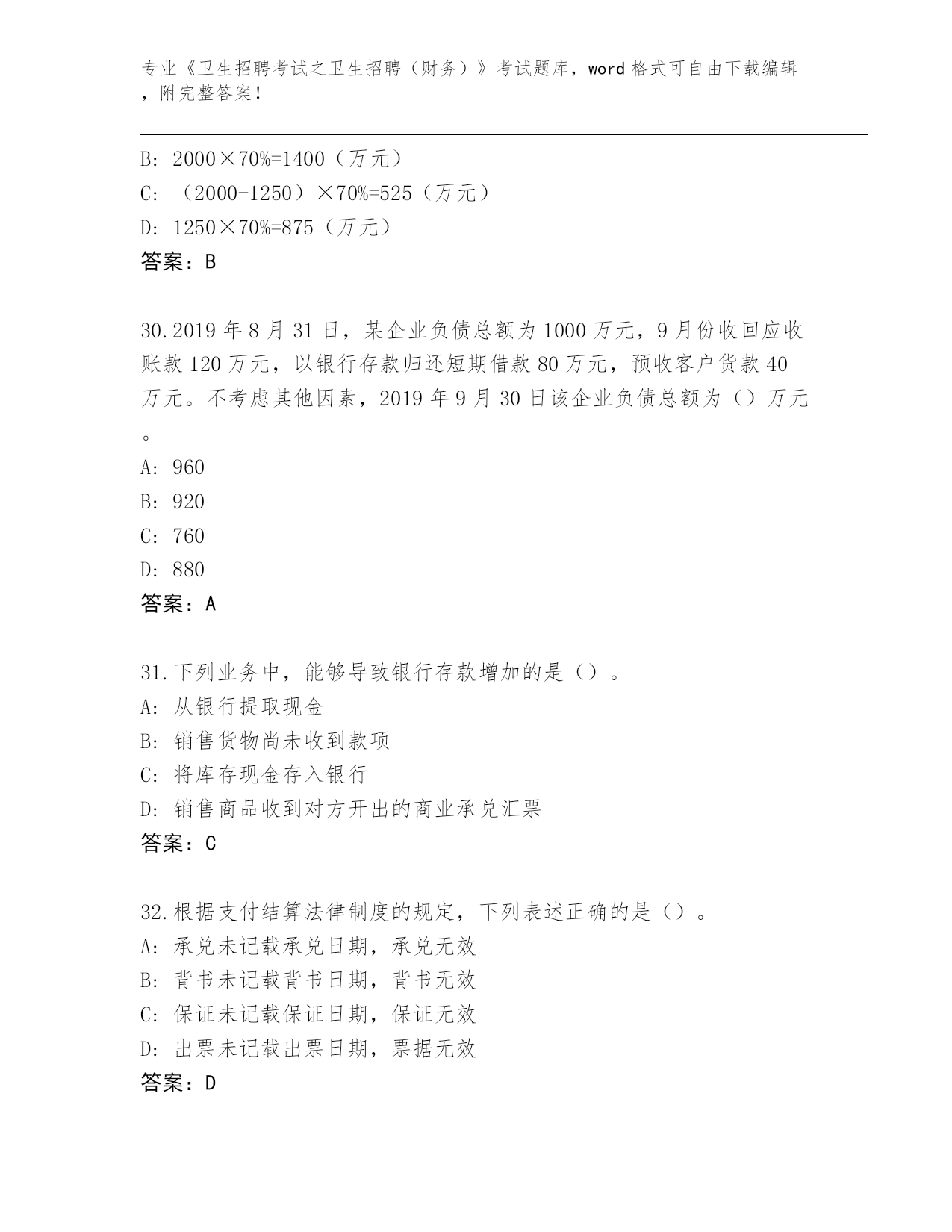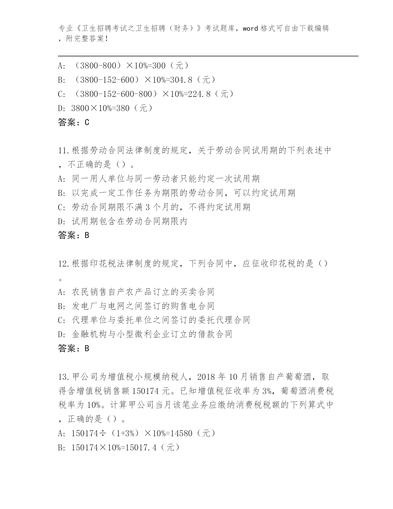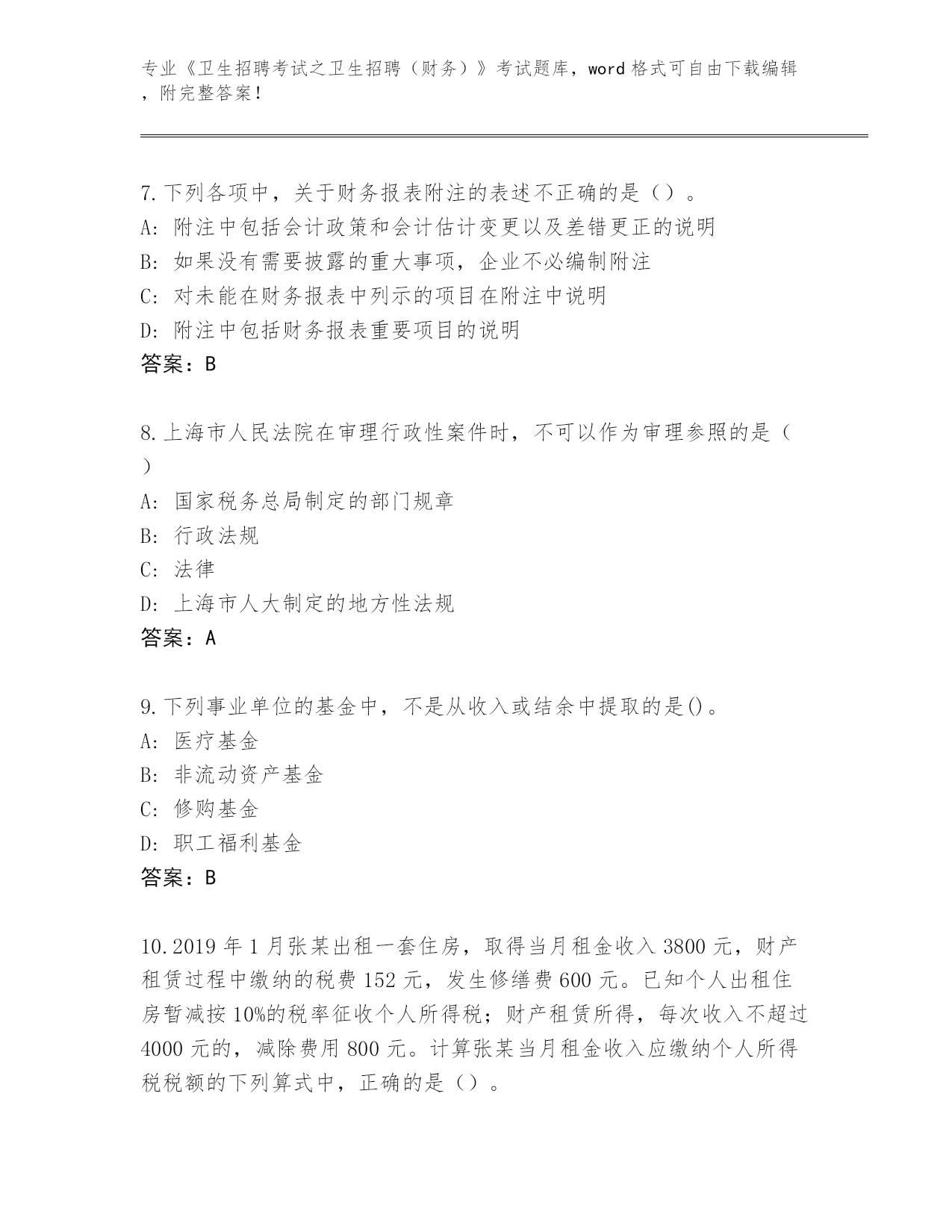 福建省大田县2024《卫生招聘考试之卫生招聘(财务)》资格考试必刷200题王牌题库附答案