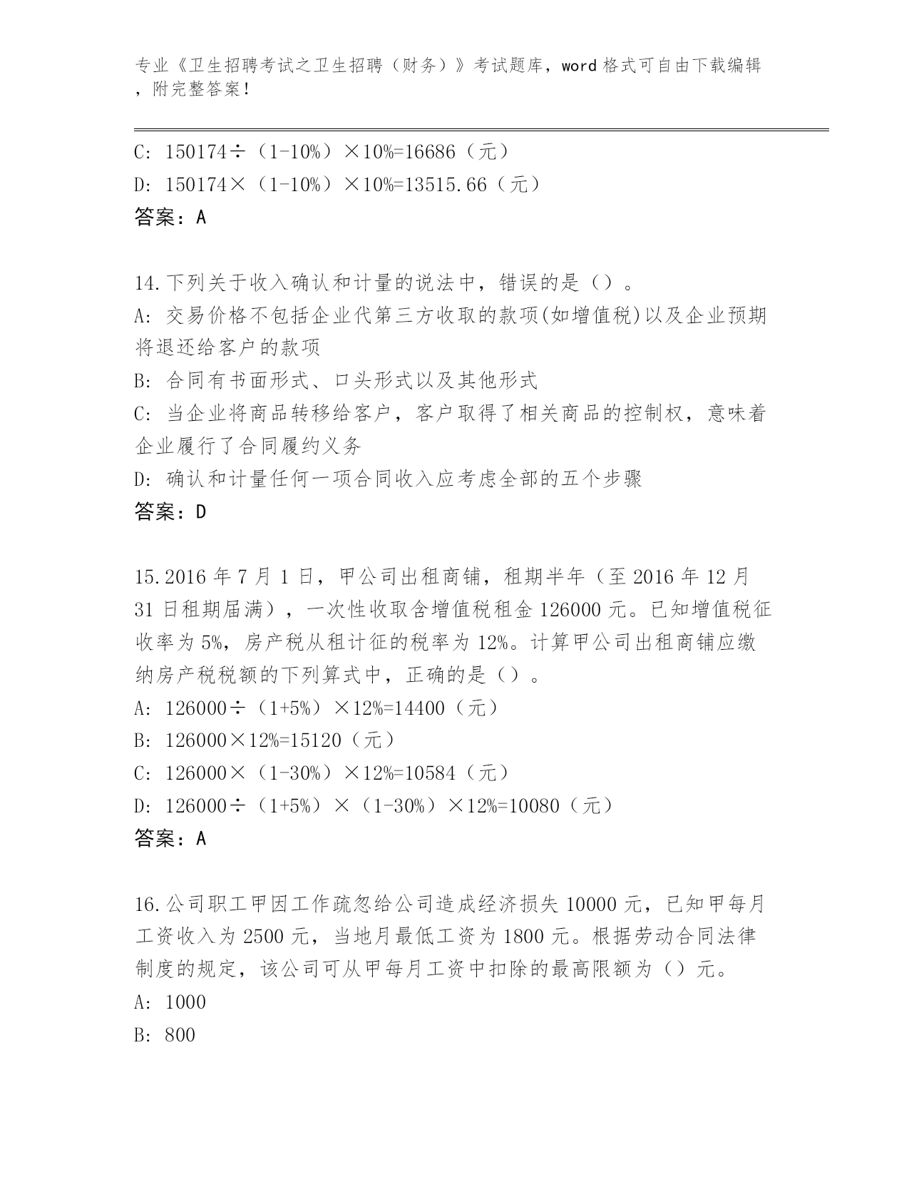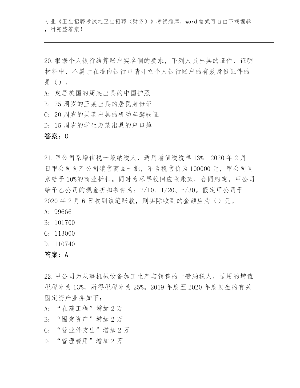 福建省2024年《卫生招聘考试之卫生招聘(财务)》资格考试真题题库(达标题)