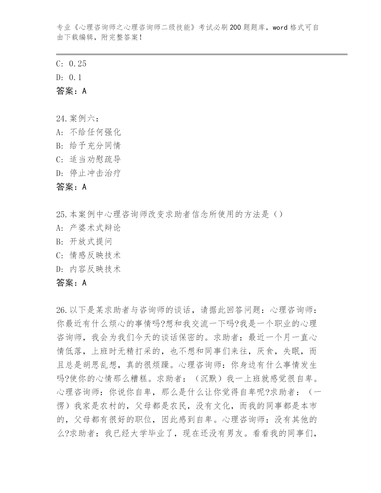 四川省美姑县2024年《心理咨询师之心理咨询师二级技能》考试必刷200题题库含答案(黄金题型)
