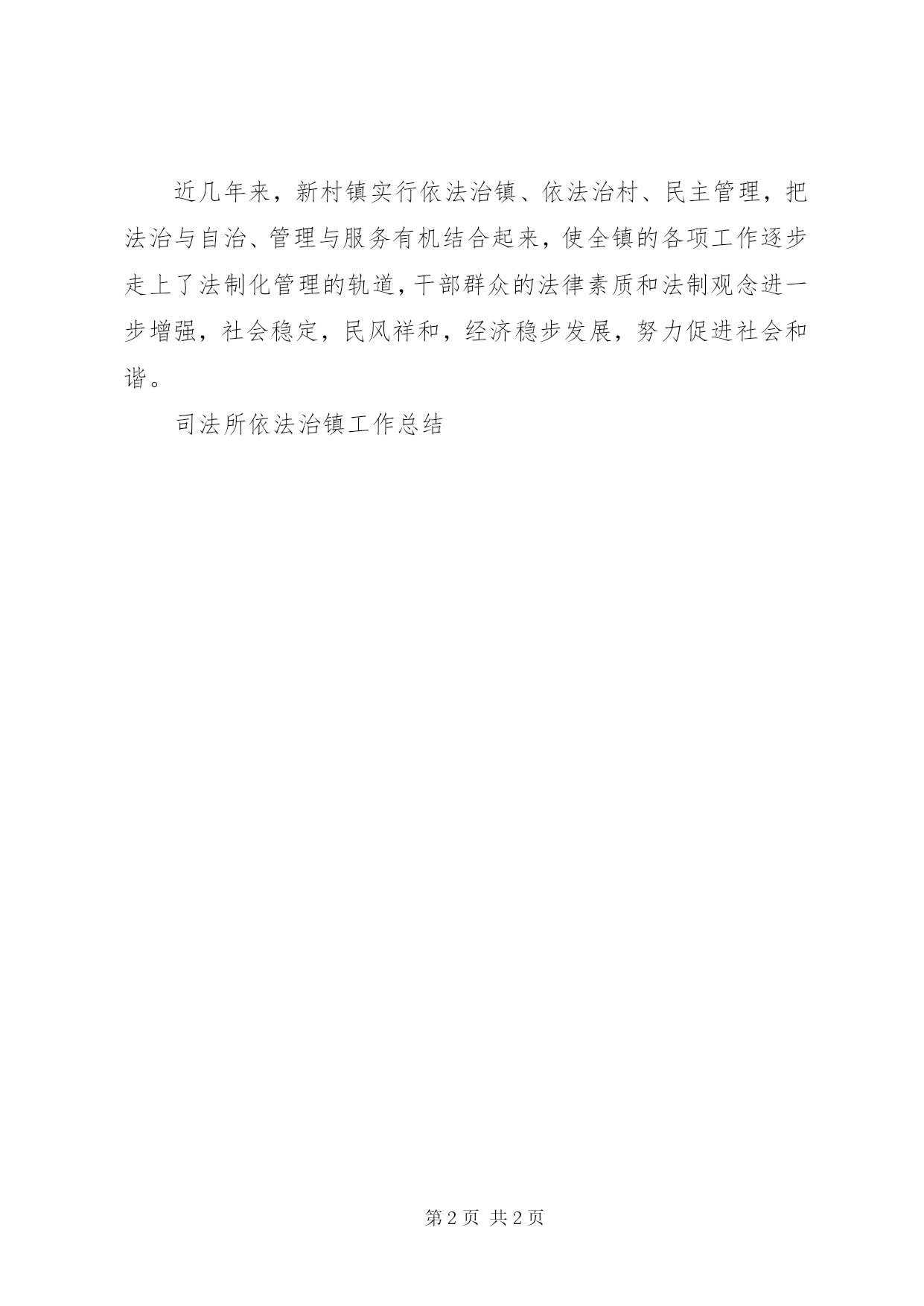 第PAGE\*Arabic\*MERGEFORMAT2页共NUMPAGES\*MERGEFORMAT2页司法所依法治镇工作总结紧抓住司法行政执法人员这个关键。为进一步强化管理和依法治镇力度,新村镇配齐了强有力的司法队伍,除司法调解员外,还聘任两位同志从事司法、综治工作,强化教育培训,持证上岗。3、紧紧抓住企业经营管理人员这个关键。有计划地对企业管理人员进行以《合同法》、《企业法》和民事法律、企业改制等有关法律法规为主要内容的培训,几年来累计培训达810人(次)。4、紧紧抓住青少年法制教育及两劳人员帮教这个关键。聘请公、检、法、司人员到镇中小学进行法制宣传,镇综治、司法部门有关人员经常深入学校,进行法制教育辅导,深入开展“法律进校园、小手拉大手”活动。经常举办法律知识讲座、报告会,发放《中小学法律教育手册》5000余册,举办法制讲座一百多场(次),受教育师生1万人(次)。对“两劳”人员,新村镇司法、综治、治安部门更是密切合作,做到底子清、责任清,方法多样、措施得力,并动之以情,晓之以理,循循善诱地实施帮教。5、紧紧抓住普法示范村建设这个关键。根据全镇依法治理示范工程规划和新村镇依法治镇实施方案,新村镇先后在12个村抓了三个示范点。这些重点村,由镇主要领导亲自抓,一人包一点,树立典型,分类指导,取得了良好效果。近几年来,新村镇实行依法治镇、依法治村、民主管理,把法治与自治、管理与服务有机结合起来,使全镇的各项工作逐步走上了法制化管理的轨道,干部群众的法律素质和法制观念进一步增强,社会稳定,民风祥和,经济稳步发展,努力促进社会和谐。司法所依法治镇工作总结