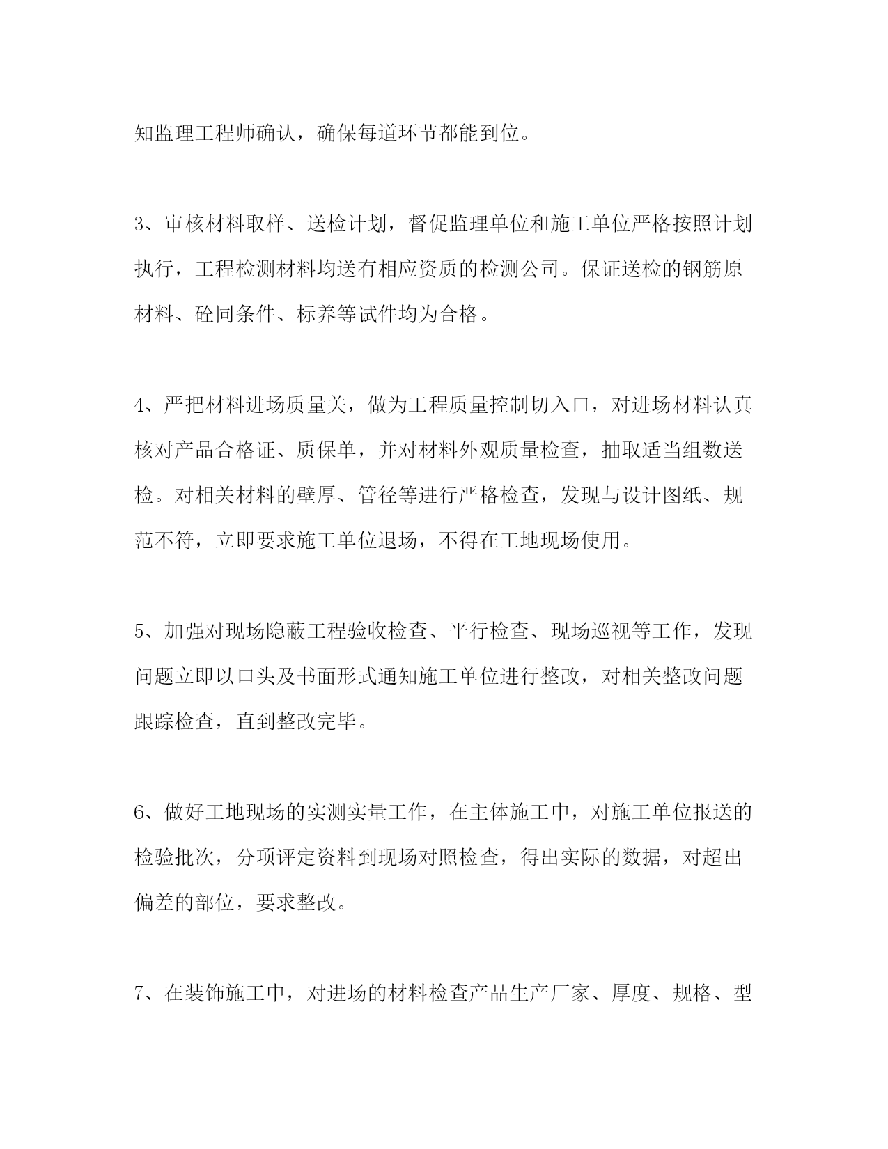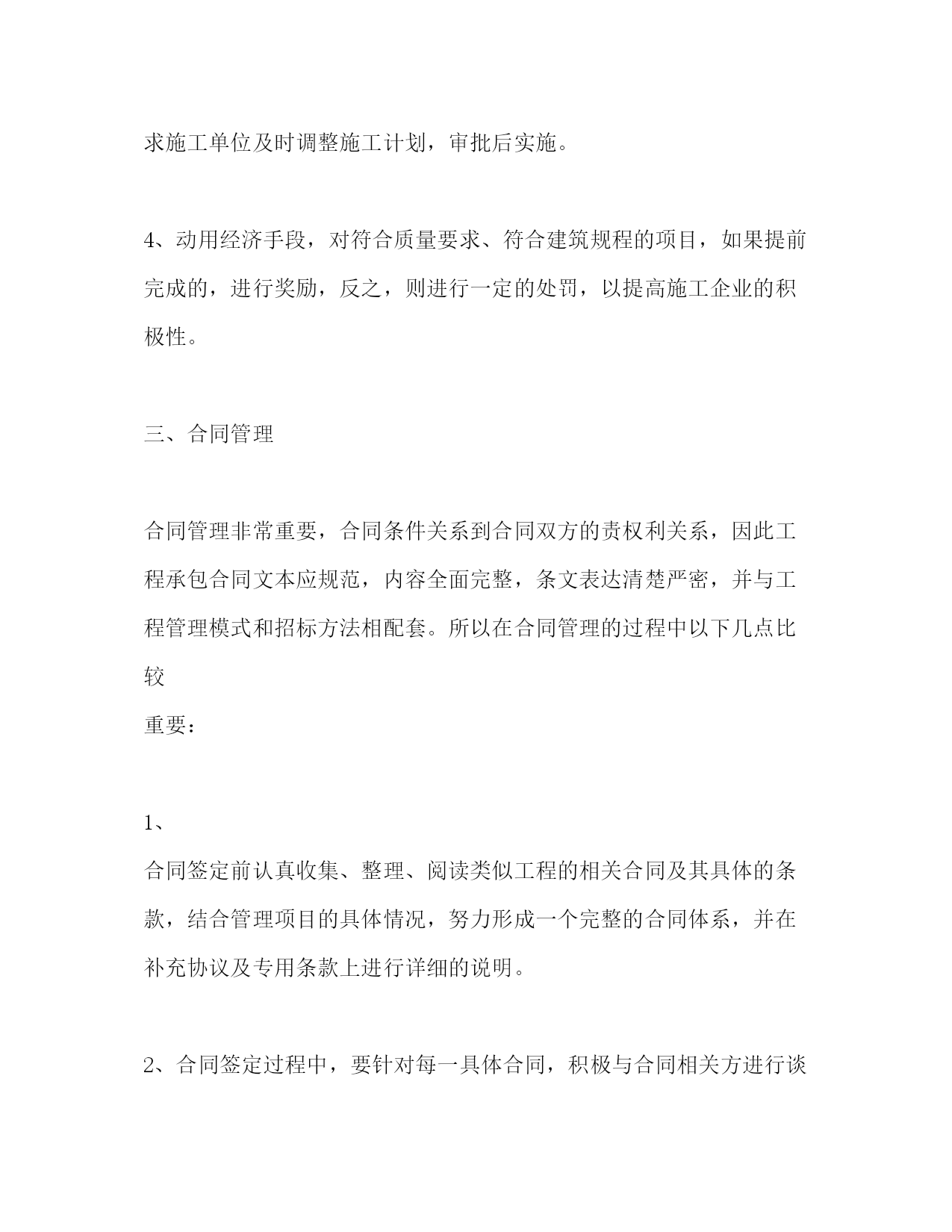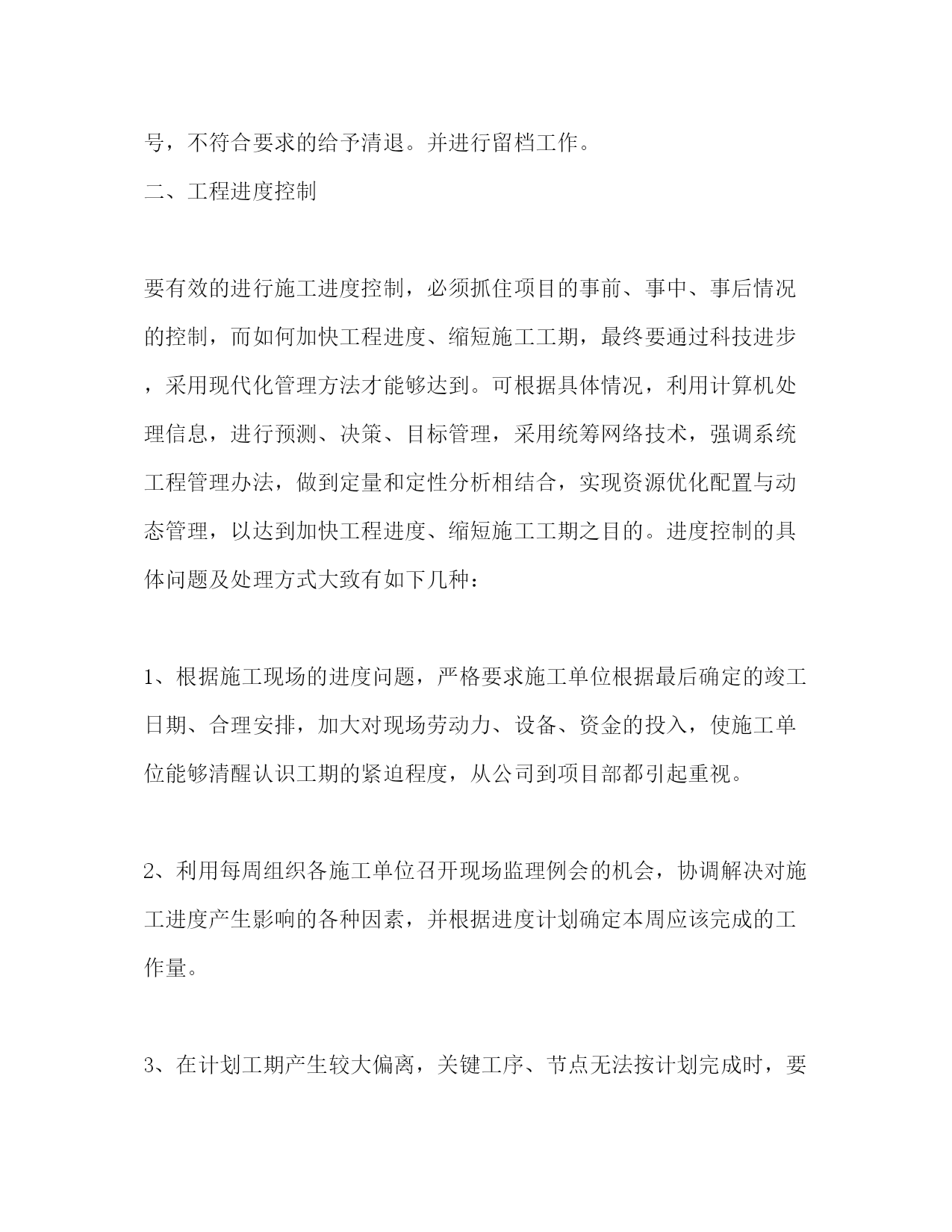 PAGE此资料由网络收集而来,如有侵权请告知上传者立即删除。资料共分享,我们负责传递知识。项目管理技术工作总结(精选多篇)第一篇:工程项目管理专业技术工作自我总结作为项目管理人,要以专业技术为依托,以工程项目管理为中心,先进的工程建设理念,明确项目成本、质量、进度和安全目标。扎实的工程建设理论和技术管理知识、丰富的现场施工经验是做好工程项目管理的基础;这就需要在平时的工作中不断积累和总结,让实践与理论更好地沉淀于能力上,更好去管理协调。一、对于整个施工过程中的技术实施,主要还是在于工程的质量,质量不合格,其它一切也就白谈了。影响施工项目的质量因素主要是人、材、机、方法和环境。所以如何控制好质量是关键。1.要熟悉工程建设中的各种材料的技术性质和质量要求;材料要严格检查验收,正确合理使用,建立管理台帐,进行收、发、储、运等环节的技术管理,避免混料和将不合格的原材料使用到工程上。2.对各工序的施工工艺充分地把握,严格按施工方案施工;全面分析,预防为主,对可能出现质量隐患的,设置控制点,重点防范;控制好整个施工过程的质量通病:质量通病面大量广,危害极大,消除质量通病只要思想重视,施工过程严格按施工验收规范进行施工,遵守施工程序和操作规程,贯彻技术责任,严格检查、层层把关,绝大多数质量通病都能消除。二、当今社会是一个讲效率的社会,时间就是金钱,质量保证了,进度也要跟得上,要合理地赶进度,对各种资源优化搭配,从而节省管理资源,节约管理成本。三、建立项目核算制,对项目进行成本控制,人、材、机、管是构成成本的主要费用;人工费严格按工程量计算,优化劳动力,减少返工,杜绝滥用工,施工要按工期严格进行,严禁窝工,无故停工,用工要按时按量(定量定工);材料在在提取使用前,施工主要负责人要熟悉施工图纸,对所用的材料的数量做到心中有数,要按时按量提取材料,尽量控制材料使用量,严格按照图纸施工,多用材料和少用材料土建工长都要以洽商的形式反映在书面上。也就是说主要负责人要对提取的材料严格把关,严禁多提错提。在现场要有人专门盯工程质量,依图施工,严禁浪费材料,丢失材料。工人对施工工艺不了解会导致浪费材料,还要防止工人盗窃施工材料和施工工具;机械施工方案的选择,要合理配置机械,提高使用率;管理人员要严格配置,架构要合理,管理人员素质、技术、办事效率要高,缩短工期,减少管理成本;优化整个施工过程各工序的施工工艺,综合衡量,通过改变工艺,搞高效率,减少人、材、机,从而降低成本。四、要以人为本,安全第一,明确安全目标、减少和消除生产过程中的事故,保证人员健康安全和财产免受损失;统一安全生产管理,制定周密的安全措施,建全规章制度,保证在多项目、多部位、多工种施工的条件下有序地进行工作,对使用一些特殊建筑材料性能、使用方法,要明确进行技术交底,控制好人、物的不安全状态、改善生产、生活环境。在工作中要多观察,多动脑,多学习,并且不断提高交际能力,增强管理协调能力,以良好的思想品德、敬业的合作精神和奉献创新意识来回报社会的。第二篇:专业技术工作总结(项目施工管理浅谈)-那山杉202005ok专业技术工作总结——项目管理浅谈本人自1999年毕业后,先后工作于杭州国通信息系统有限公司、台州中泰置业有限公司及台州万邦置业有限公司,在这十余年的工作历程中,我从一个学生逐步成长为有一定技术基础和管理能力专业技术人员。在工作中,对于项目管理的认识逐渐清晰,有失败也有成功,有教训也有喜悦,也更进一步明确了项目管理的主要性,在此总结一点个人的观点如下:项目管理主要分为项目的前期阶段、项目的实施阶段、项目的运行阶段。在项目的实施阶段又分为设计阶段、施工阶段、试运行阶段。这里,我们主要讨论项目的施工管理,项目施工阶段的管理主要包括质量控制、进度控制、投资的控制以及合同管理和安全文明施工的管理等五方面内容,下面我将通过自己近几年的工作体会对上述五方面的内容作一些简单的论述。一、工程质量控制百年大计、质量为本,质量是一个项目好坏的根本指标,所以在施工过程中,项目质量的好与差,直接反映出管理的好与差,我们必须调动一切资源、想尽一切办法,严格按照施工规范、施工规程进行施工管理,其中以下的工作是特别不能够放松的。1、作为业主,组织举行第一次工地例会,在会议上提出施工质量必须达到设计、规范要求,并提出质量控制方面应注意的相关事宜;在会议上跟参建的各方有个初步的认识和沟通,使大家明白项目要达到什么样的要求。2、工程施工前,要求承包商完善和健全质量保证体系,包括项目经理、技术负责人在内的质检、资料、施工员等“五大员”必须到位,要求承包商对每一道工序的检验,加强自检职能,经自检合格后才能通知监理工程师确认,确保每道环节都能到位。3、审核材料取样、