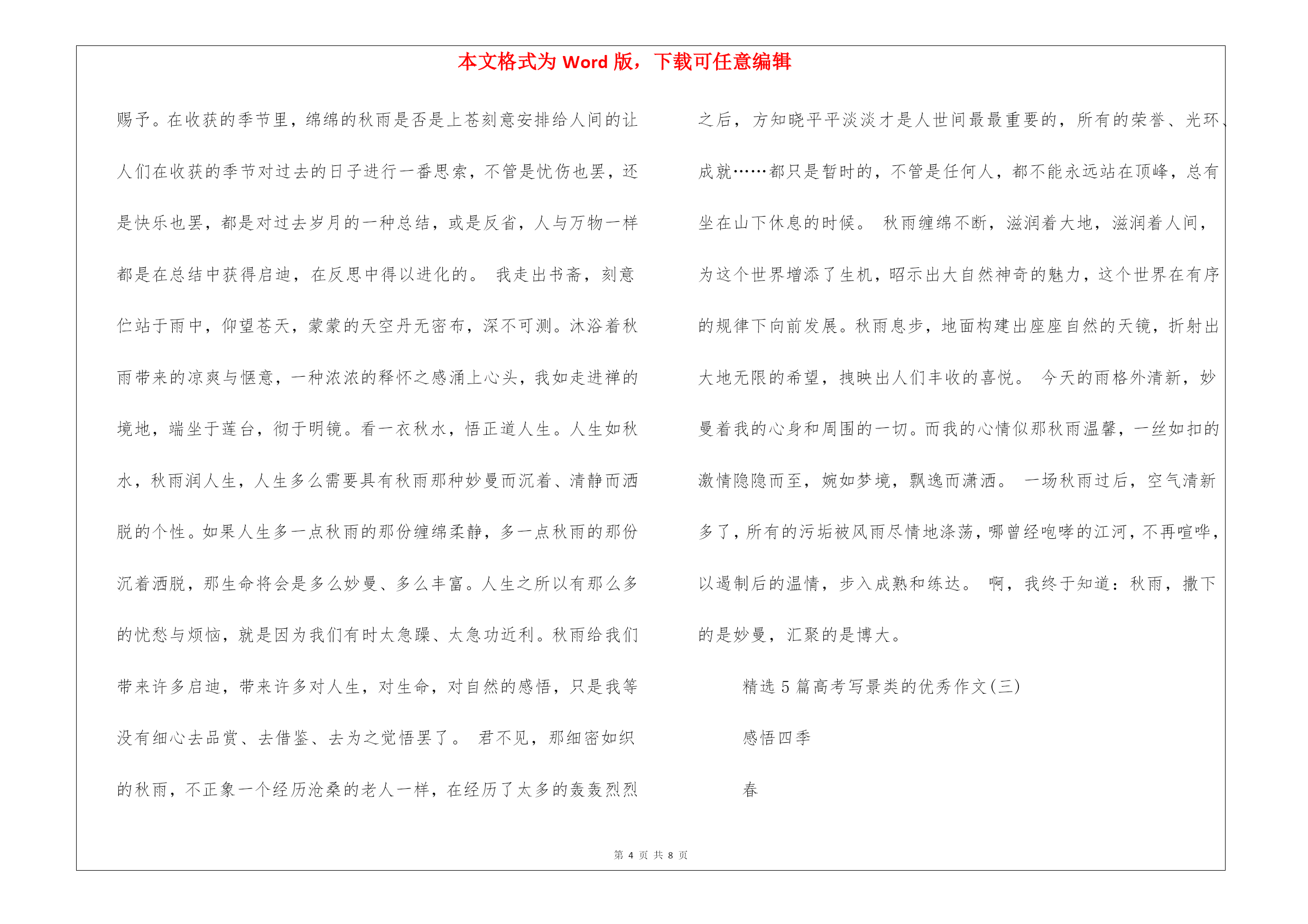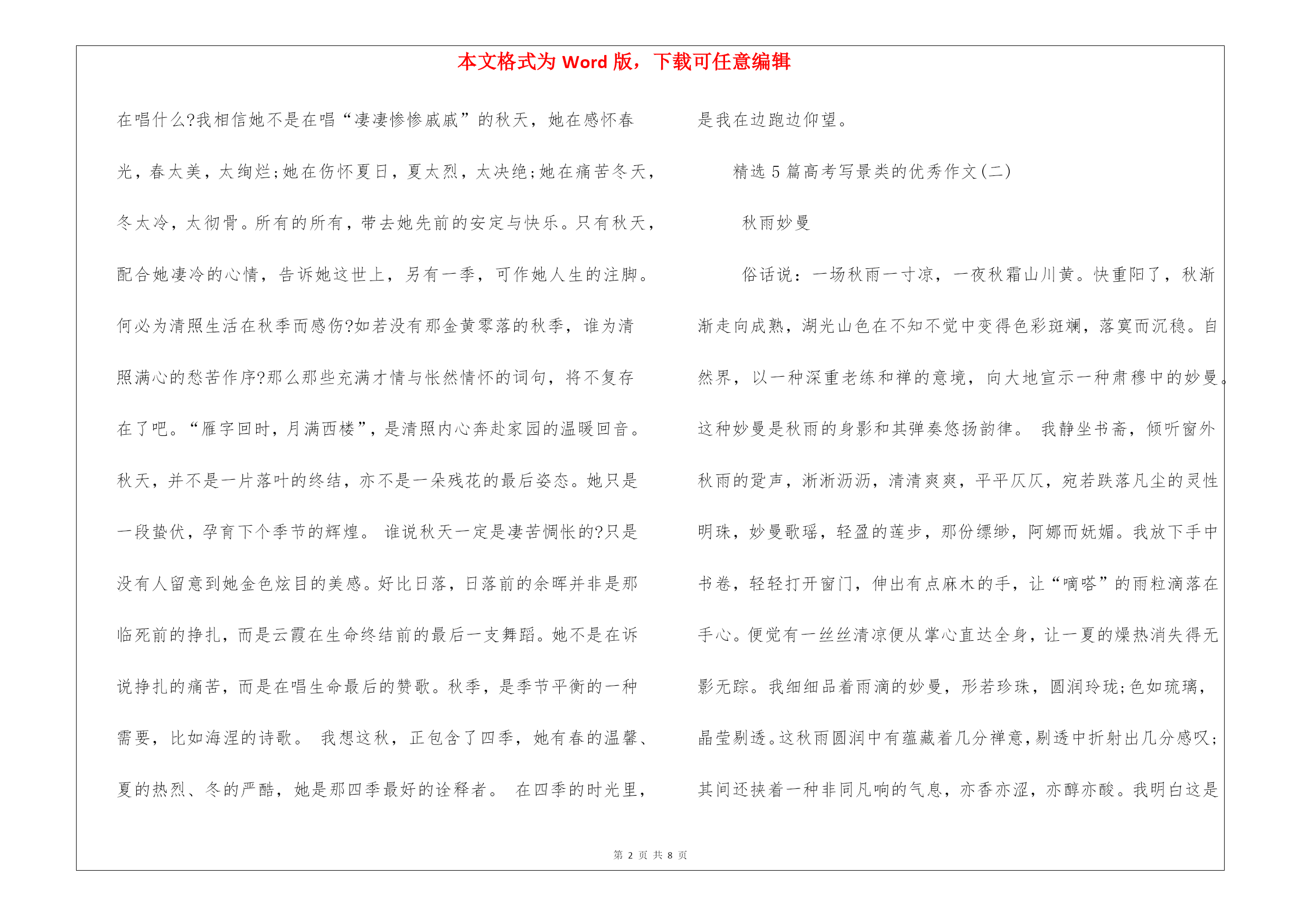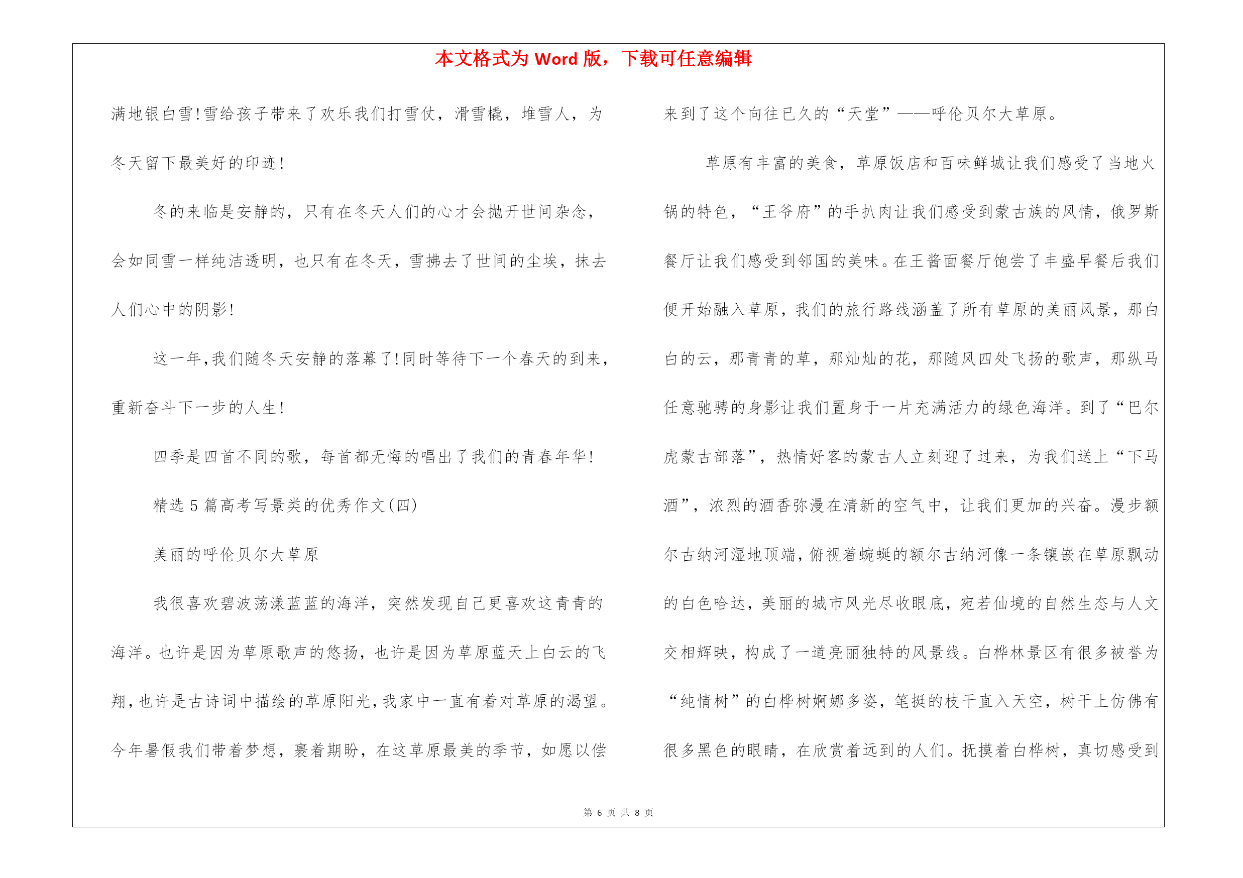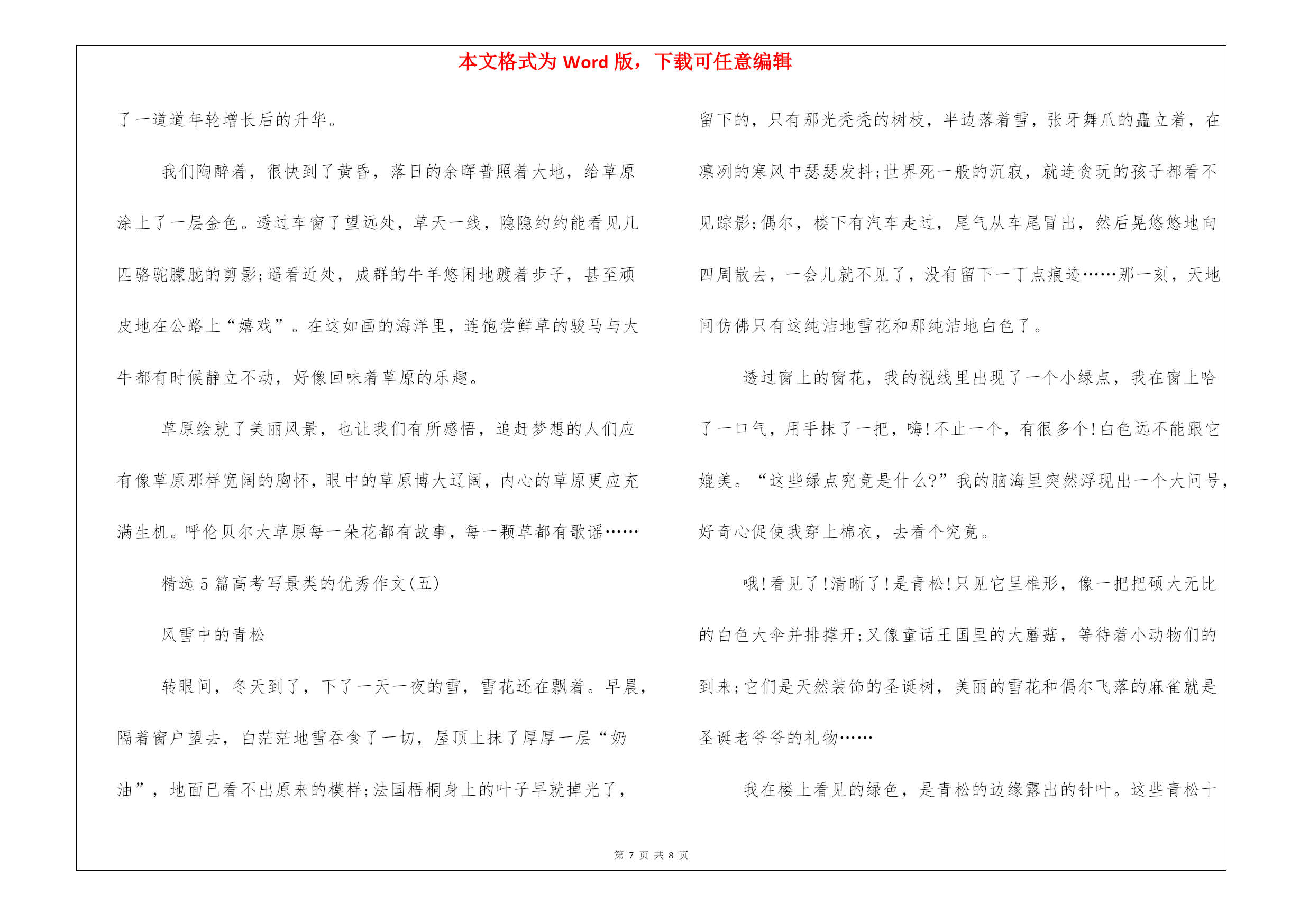 (免费下载)精选5篇高考写景类的优秀作文(TXT下载).docx