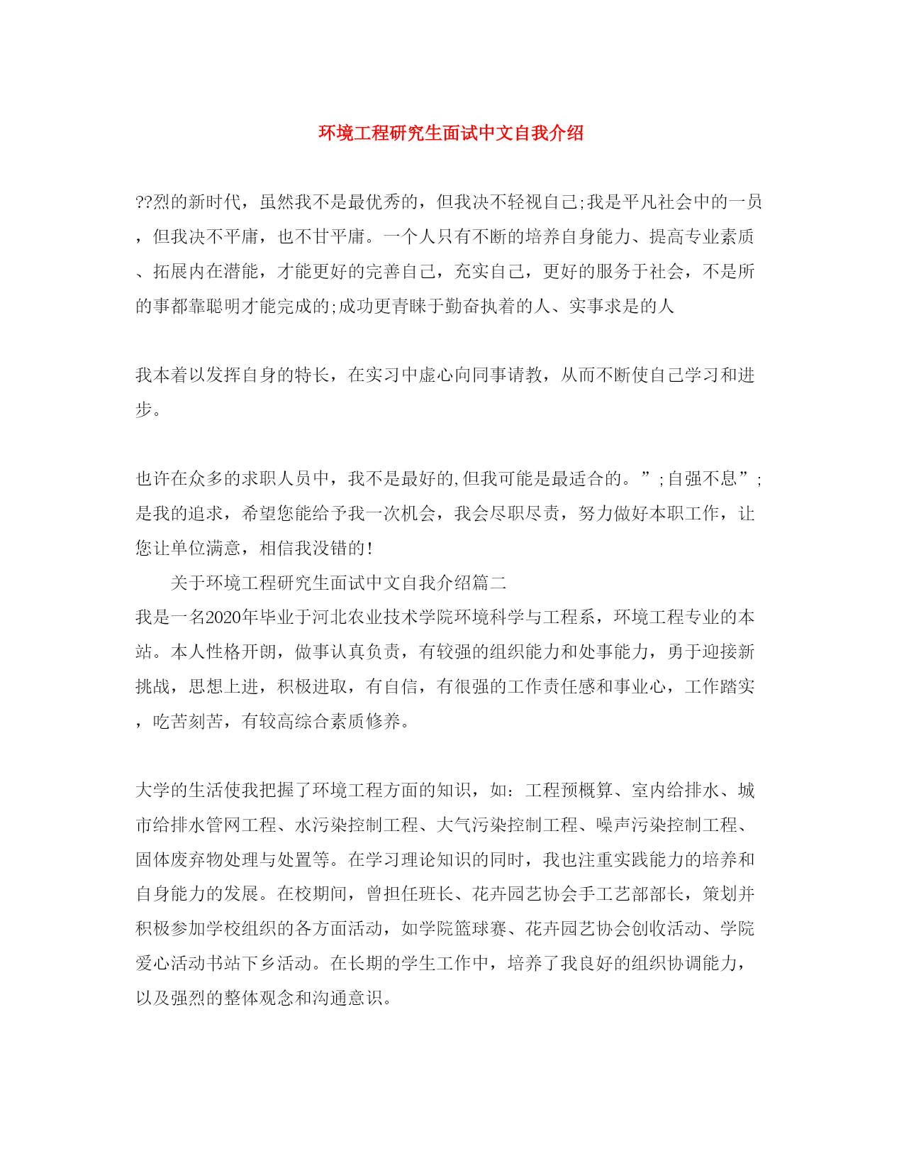 此资料由网络收集而来,如有侵权请告知上传者立即删除。资料共分享,我们负责传递知识。环境工程研究生面试中文自我介绍??烈的新时代,虽然我不是最优秀的,但我决不轻视自己;我是平凡社会中的一员,但我决不平庸,也不甘平庸。一个人只有不断的培养自身能力、提高专业素质、拓展内在潜能,才能更好的完善自己,充实自己,更好的服务于社会,不是所的事都靠聪明才能完成的;成功更青睐于勤奋执着的人、实事求是的人我本着以发挥自身的特长,在实习中虚心向同事请教,从而不断使自己学习和进步。也许在众多的求职人员中,我不是最好的,但我可能是最适合的。”;自强不息”;是我的追求,希望您能给予我一次机会,我会尽职尽责,努力做好本职工作,让您让单位满意,相信我没错的!关于环境工程研究生面试中文自我介绍篇二我是一名2020年毕业于河北农业技术学院环境科学与工程系,环境工程专业的本站。本人性格开朗,做事认真负责,有较强的组织能力和处事能力,勇于迎接新挑战,思想上进,积极进取,有自信,有很强的工作责任感和事业心,工作踏实,吃苦刻苦,有较高综合素质修养。大学的生活使我把握了环境工程方面的知识,如:工程预概算、室内给排水、城市给排水管网工程、水污染控制工程、大气污染控制工程、噪声污染控制工程、固体废弃物处理与处置等。在学习理论知识的同时,我也注重实践能力的培养和自身能力的发展。在校期间,曾担任班长、花卉园艺协会手工艺部部长,策划并积极参加学校组织的各方面活动,如学院篮球赛、花卉园艺协会创收活动、学院爱心活动书站下乡活动。在长期的学生工作中,培养了我良好的组织协调能力,以及强烈的整体观念和沟通意识。此外,我并不仅仅满足只把握大学课程所规定的知识,在计算机方面我把握了officXX软件的操纵、autocadXX等知识;在英语方面,获得了国家英语四、六级证书,有较强的英语阅读和写作能力;在实际操纵上,获得国家分析工中级职业资格证书。我非常想应聘贵公司的预算员职业,由于我充分的相信自己通过过往众多实践中的能力胜任这份工作!我拥有的是年轻的***,假如您把信任和希看给我,那么我的自信、我的***,我的能力,将是您最满足的答案!