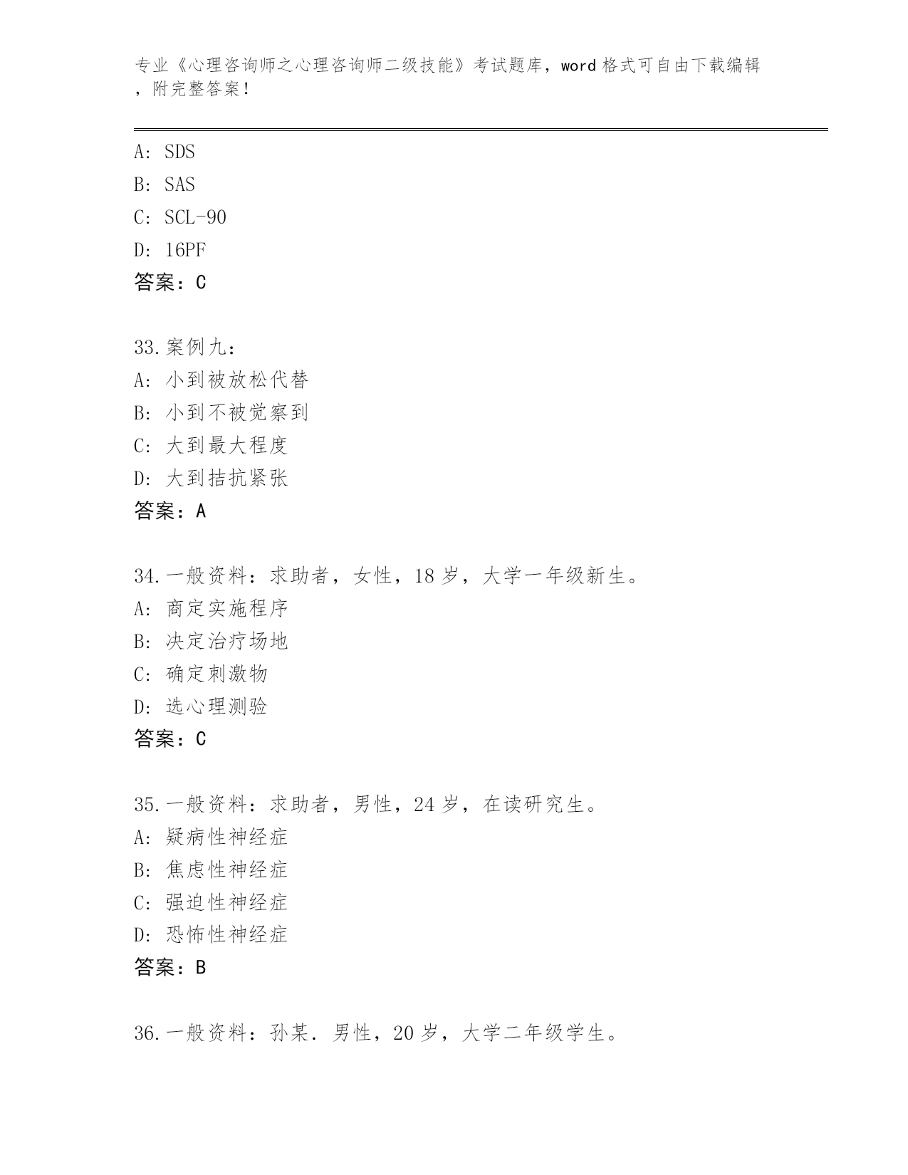 四川省2024《心理咨询师之心理咨询师二级技能》考试必考200题含答案(达标题)