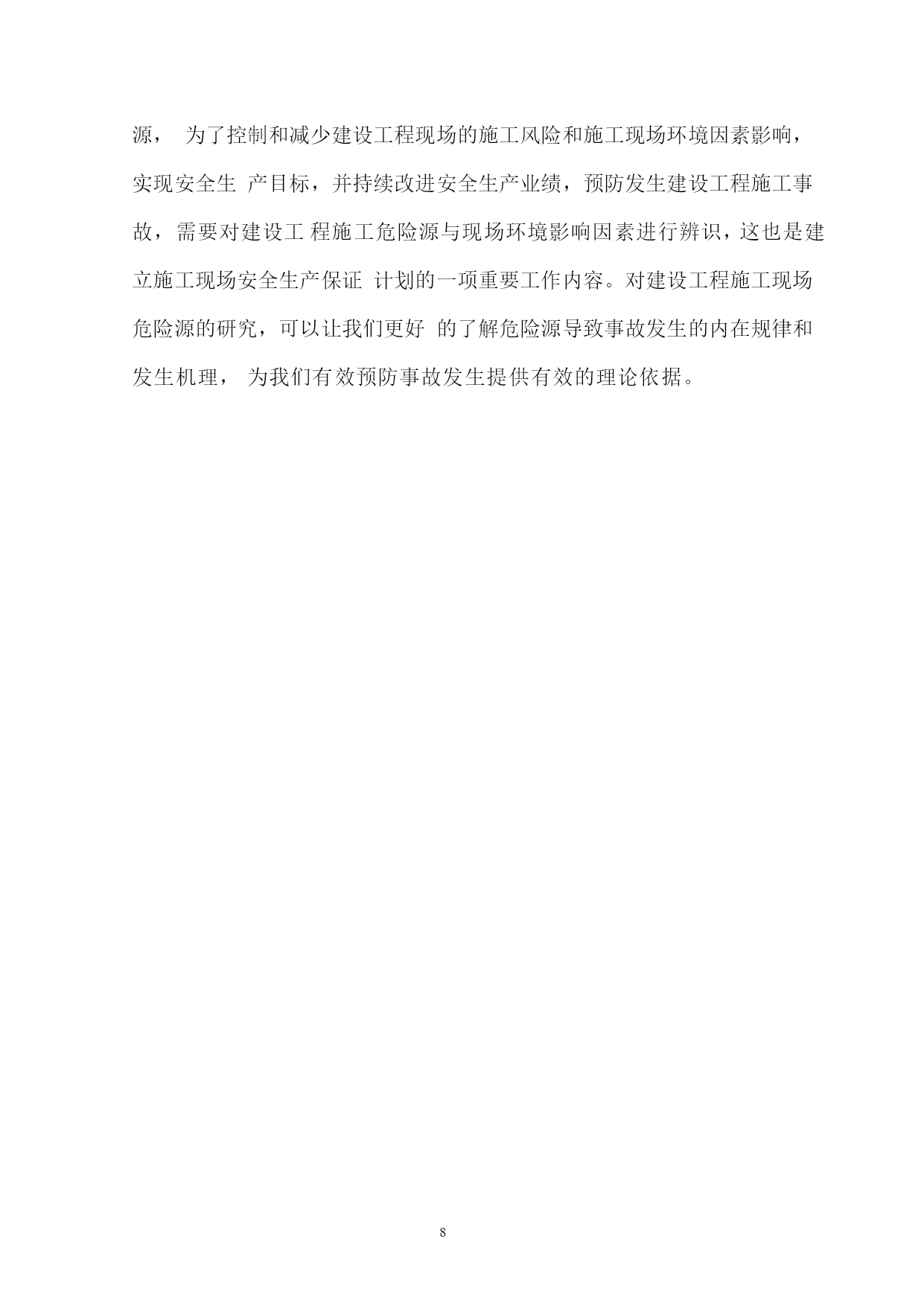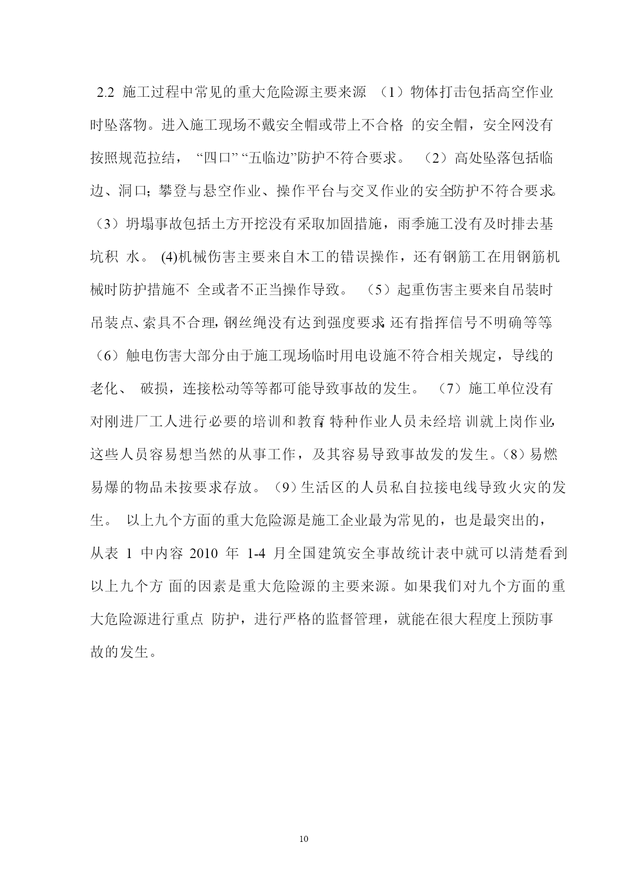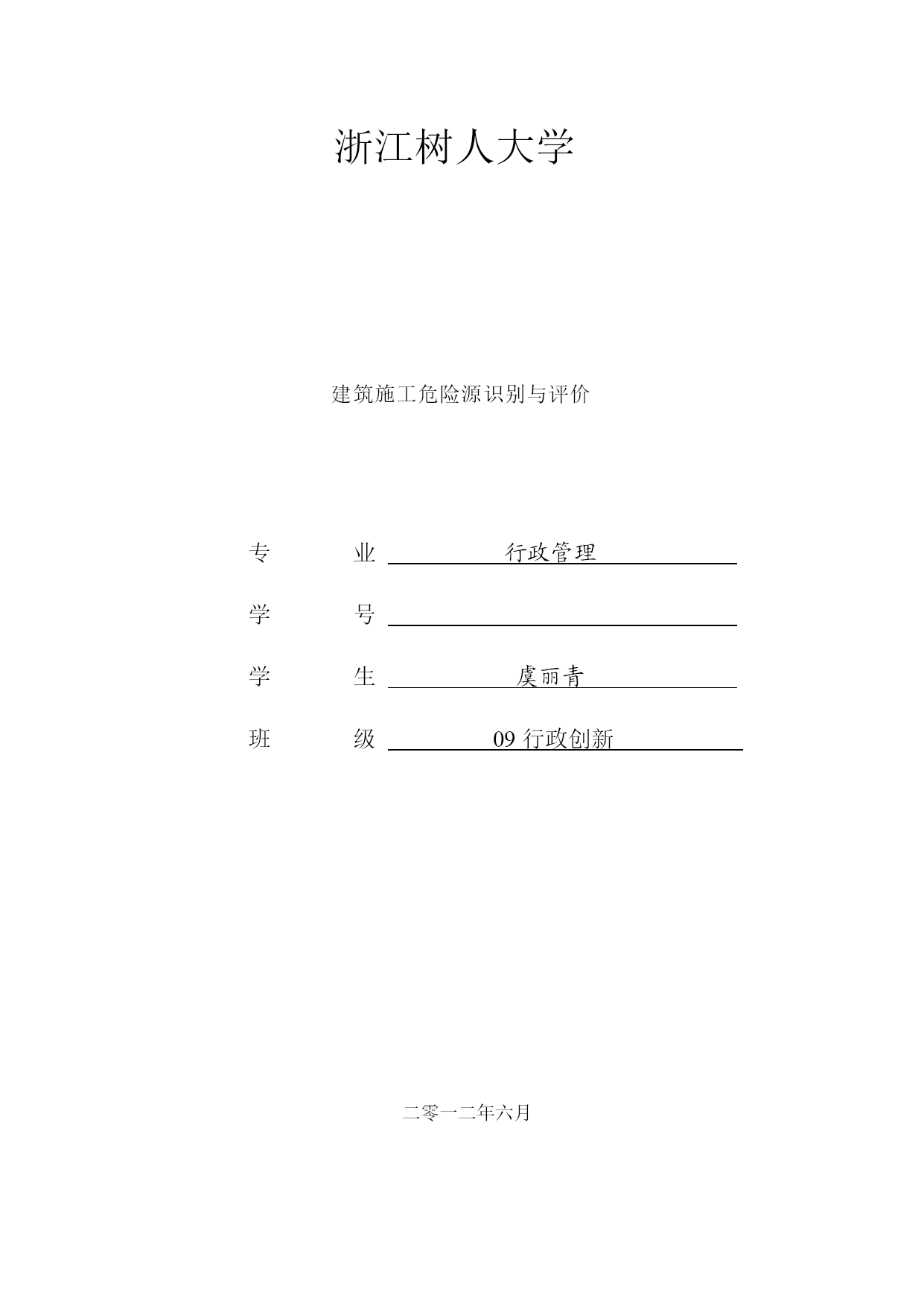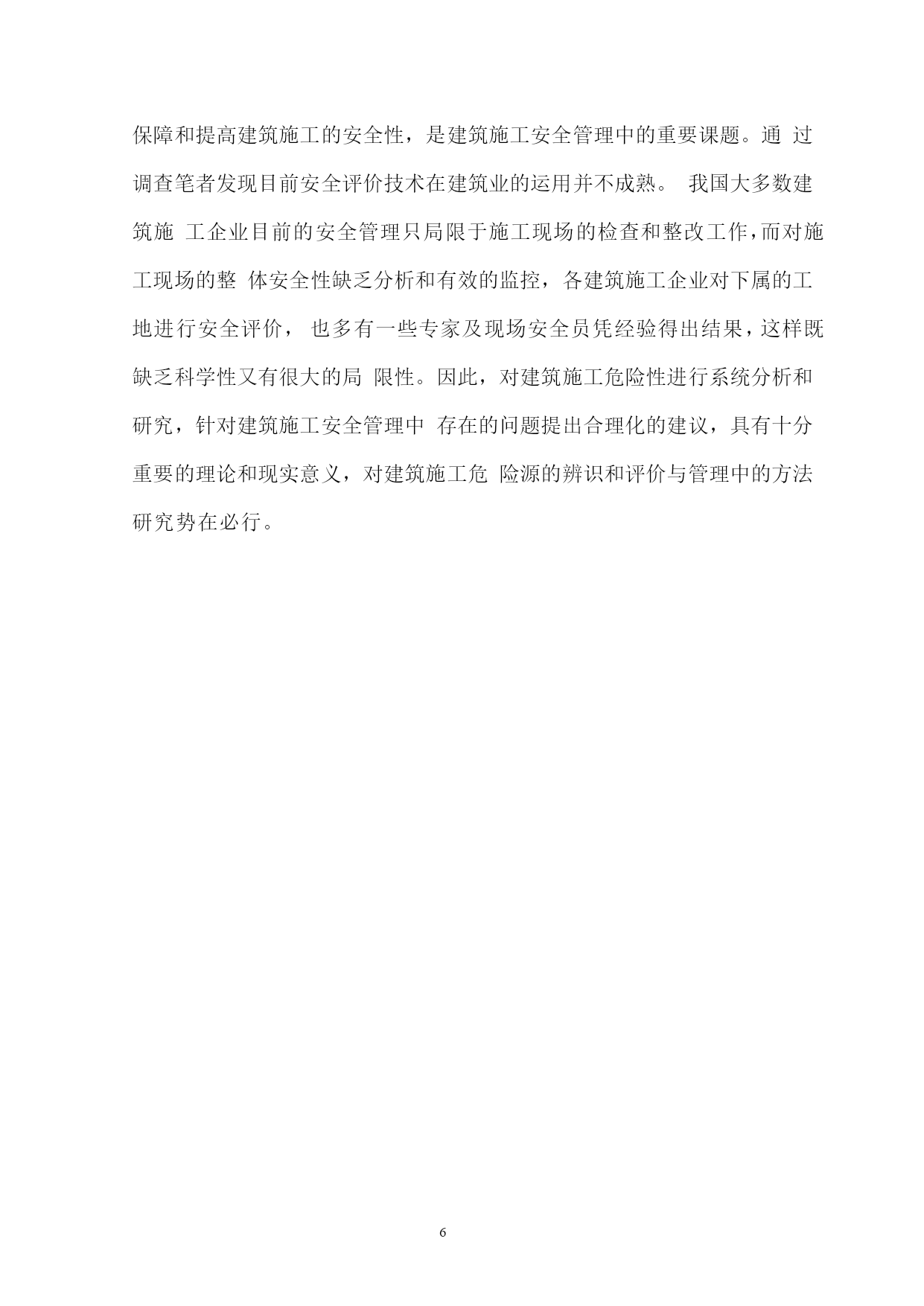 浙江树人大学建筑施工危险源识别与评价专业行政管理学号学生虞丽青班级09行政创新二零一二年六月目录INDEX\h"—M—"\o"S"\c"2"\z"2052"TOC\o"1-3"\h\z\uHYPERLINK\l"_Toc225703787"内容摘要............................................................................................1IHYPERLINK\l"_Toc225703789"1绪论......................................................................................................21.1问题提出..........................................................................................................2HYPERLINK\l"_Toc225703791"1.2建筑危险源辨识与评价的发展现状41.3HYPERLINK\l"_Toc225703792"建筑危险源辨识和评价的目的和意义5HYPERLINK\l"_Toc225703794"2建筑施工重大危险源辨识6HYPERLINK\l"_Toc225703795"2.1建筑施工重大危险源的认定和分类6HYPERLINK\l"_Toc225703796"2.2施工过程中常见的重大危险源主要来源7HYPERLINK\l"_Toc225703797"2.3重大危险源的监控和隐患治理8HYPERLINK\l"_Toc225703798"2.4重大危险源的安全管理对策措施9HYPERLINK\l"_Toc225703800"2.5小结12HYPERLINK\l"_Toc225703801"3建筑施工过程安全评价13HYPERLINK\l"_Toc225703802"3.1安全评价的定义、方法和分类13HYPERLINK\l"_Toc225703803"3.2事故树分析方法的定义、作用及基本程序15HYPERLINK\l"_Toc225703804"4结论17I内容摘要建筑业从业人数众多,建设工程规模巨大,搞好建设工程的安全生产关系着千万人民群众的生命和财产安全。本文将围绕建筑施工中的危险源辨识与管理中的安全评价方法展开研究,进行建筑施工危险源识别、风险评价和风险控制,并针对建筑施工中重大危险源及其分类,重大事故预防以及重大危险源的管理进行研究,提出了相应安全对策措施,并针对具体案例运用事故树的分析方法分析模板坍塌事故,得出的结论制定具体的预防措施。通过本文的分析和研究不仅为查明建筑施工固有的或潜在的各种危险因素及设计、施工和管理提供理论指导和技术依据,而且对提高建筑施工企业安全投入的经济性具有现实意义。最后对本文研究进行了总结,并对下一步工作进行了展望。关键词建筑施工危险源;安全评价;事故树分析;安全对策措施建筑施工危险源识别与评价1绪论问题提出建筑业是高风险的行业,安全形势十分严峻。建筑施工因具有作业流动性大、露天作业多、产品体积大、形式多样、施工周期长、劳动强度大和作业人员更换频率等特点,经常会出现高处坠落、物体打击、触电、机械伤害、坍塌等安全事故。我国建筑业近年来事故虽然得到很大程度的遏制,但整体情况与发达国家还有很大差距。这主要是因为,随着我国经济体制改革的不断深化,建设生产经营单位的经济成分日趋多样化,由国有、集体经济成分变为国有、股份制、私营、外商投资、个体工商户并存的多样化形式,而且私营和外商投资越来越多,房地产和市政建设投资进一步加大。同时,建筑业的发展,对安全技能、安全意识、安全生产科学管理方面提出了更新的要求。尤其是新材料、新技术、新工艺、新设备在建设工程上的应用,是的工程建设进度大大加快,施工难度也不断加大,所以新的危险因素也随之出现,使得事故发生的概率变大了。据统计,2000年,全国建筑职工死亡人数还没有超过1000人,2001年死亡人数为1045人,2002年死亡人数为1292人,2003年死亡人数为1512人,2004年死亡人数为1324,2005年死亡人数为1193人。就全国来看整体有下降趋势,但我们分析各省份2009年建筑事故起数和死亡人数就不难发现都比上一年同比上升。如何保障和提高建筑施工的安全性,是建筑施工安全管理中的重要课题。通过调查笔者发现目前