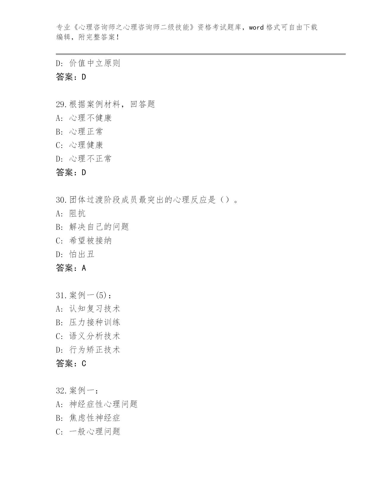 黑龙江省乌马河区《心理咨询师之心理咨询师二级技能》资格考试完整题库【全国通用】
