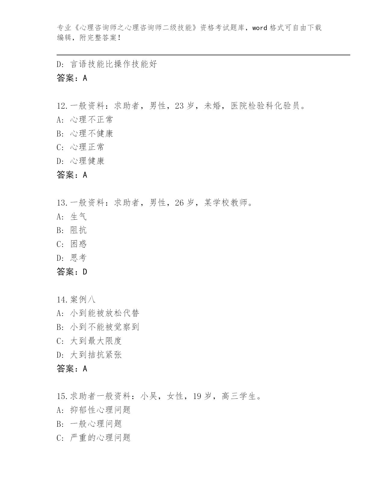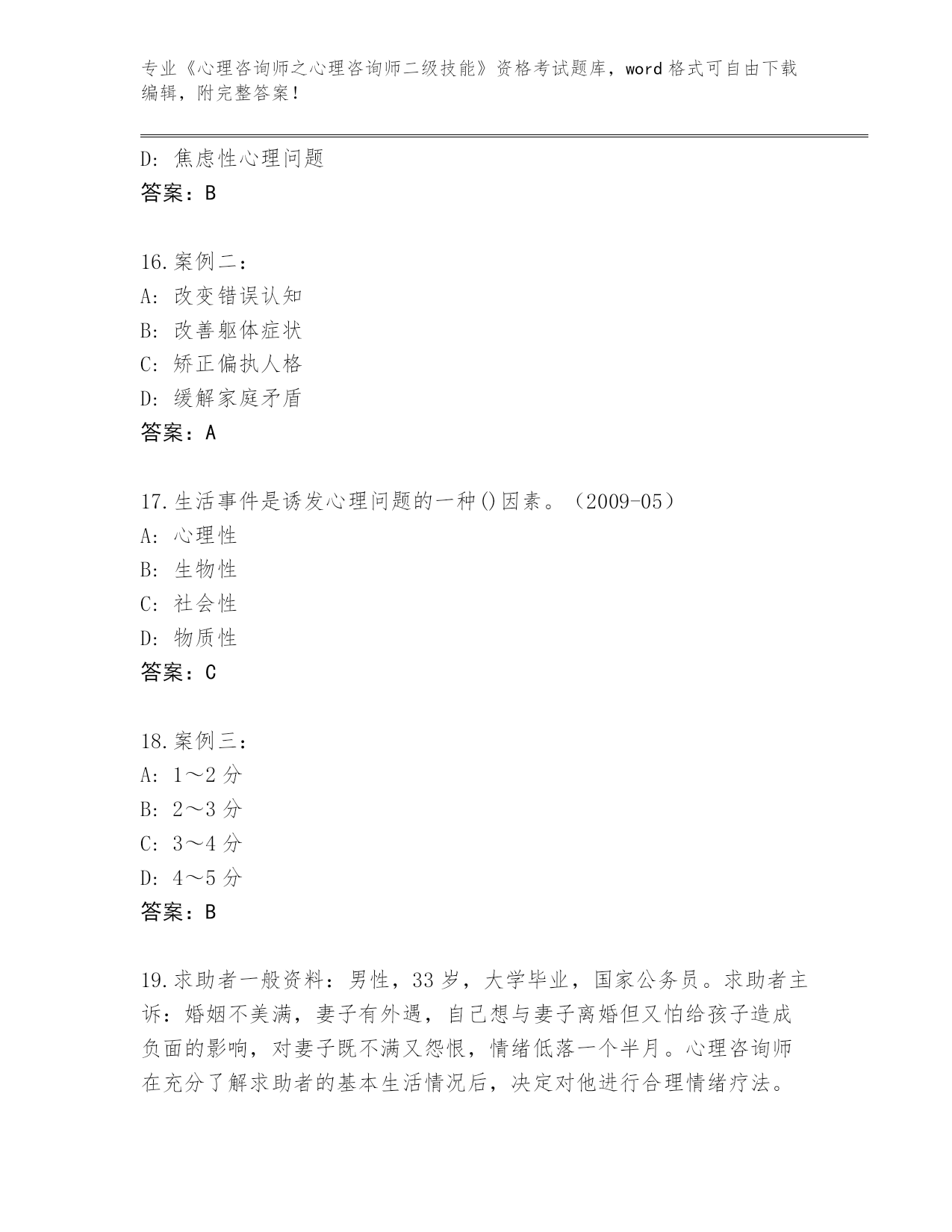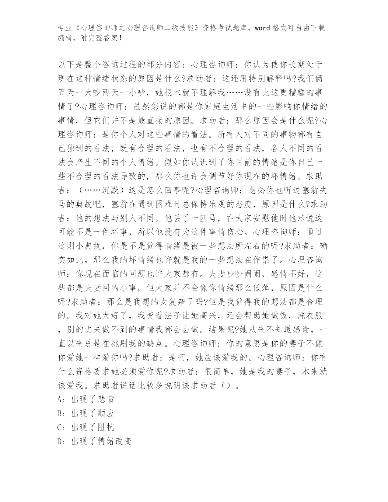 完整版河南省《心理咨询师之心理咨询师二级技能》资格考试【名校卷】
