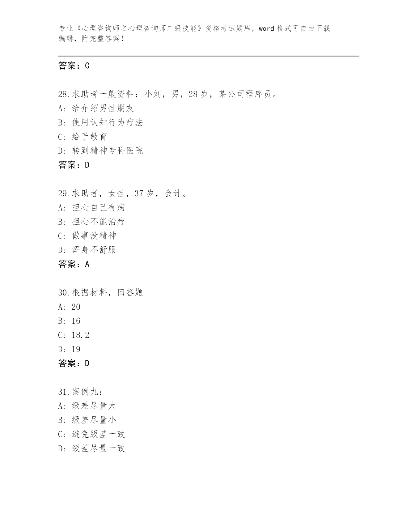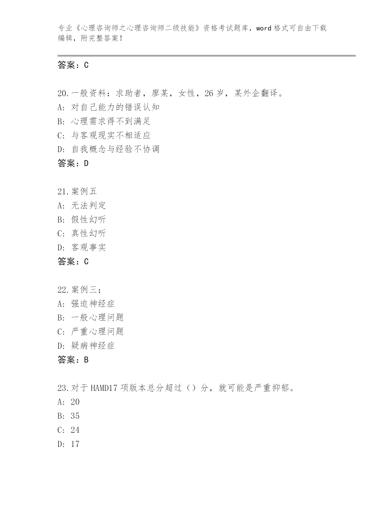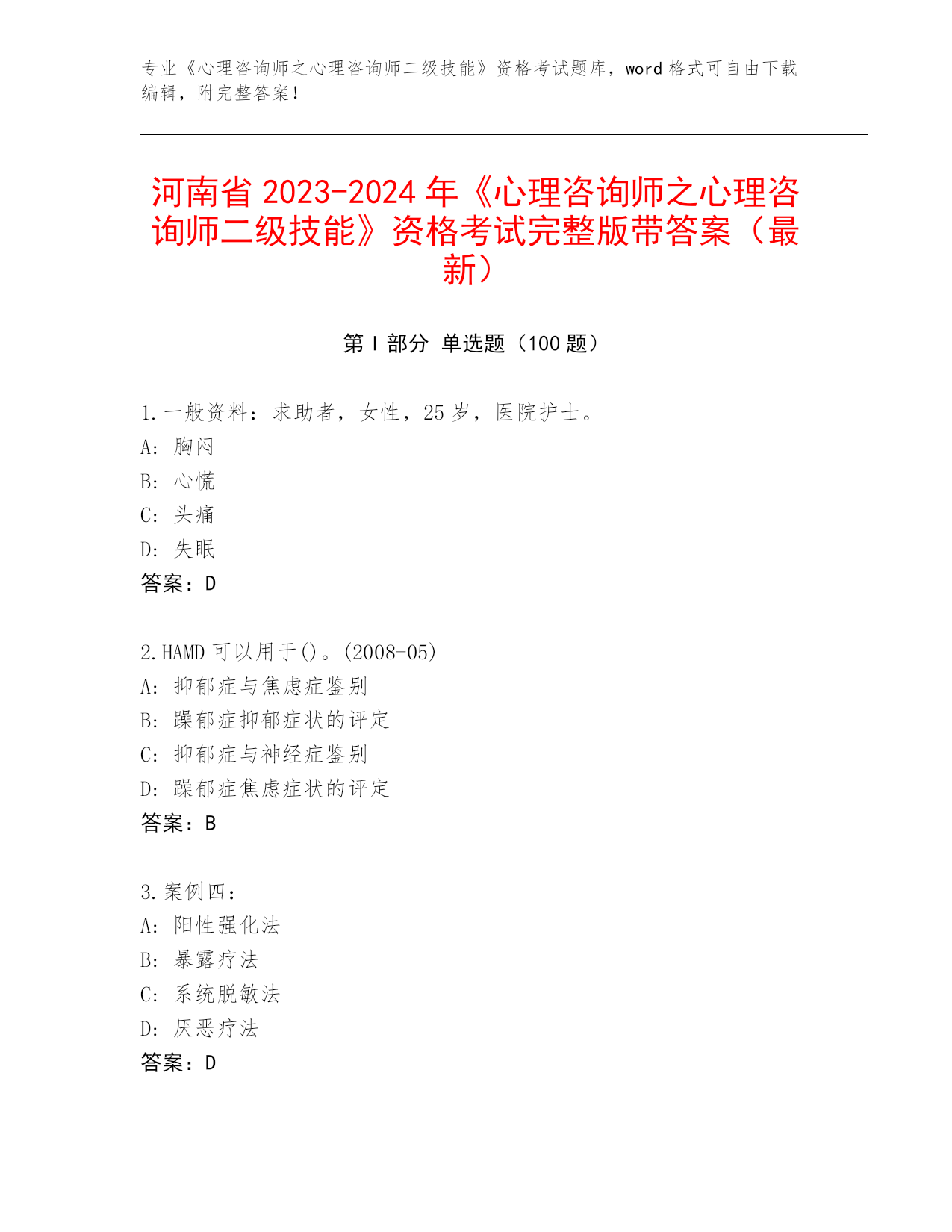 完整版河南省《心理咨询师之心理咨询师二级技能》资格考试【名校卷】