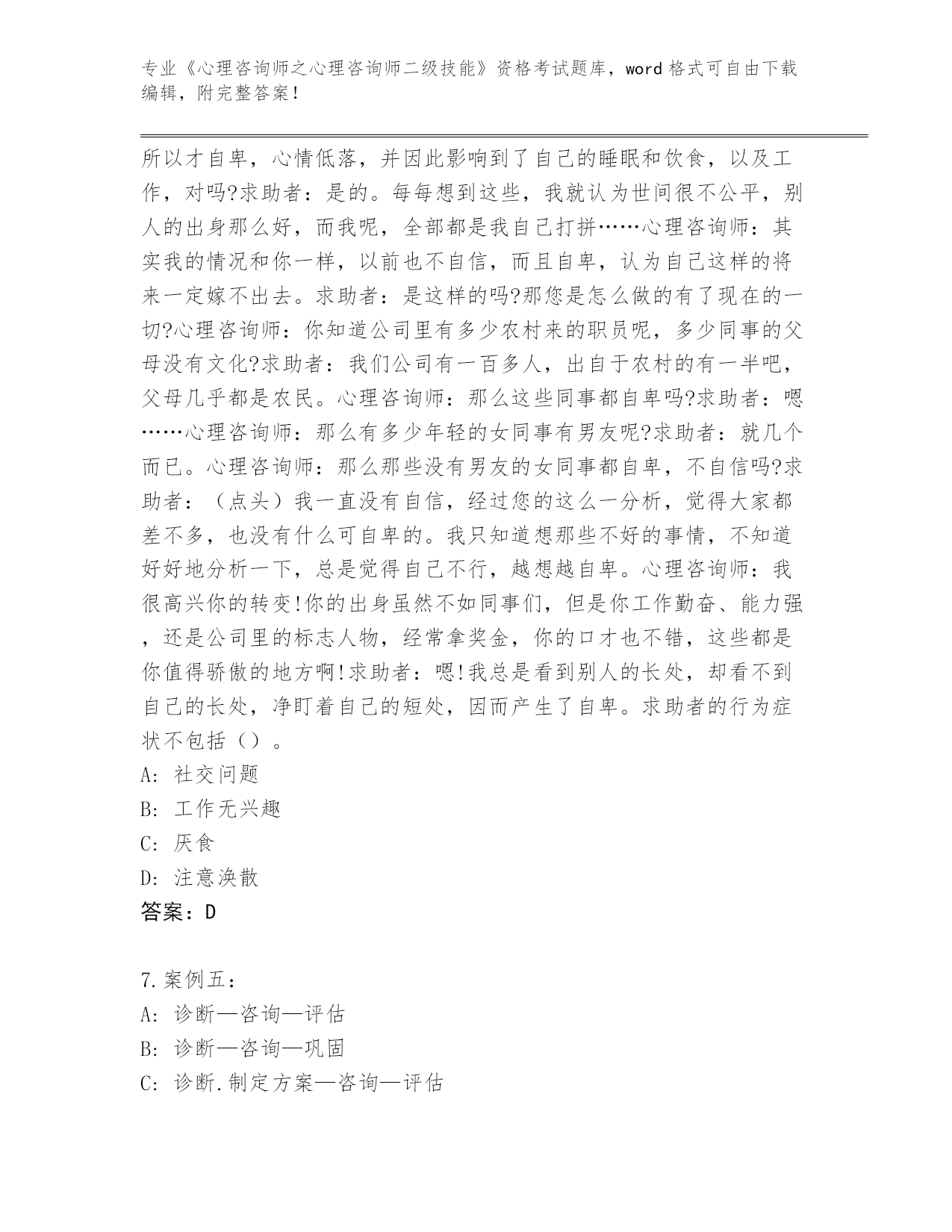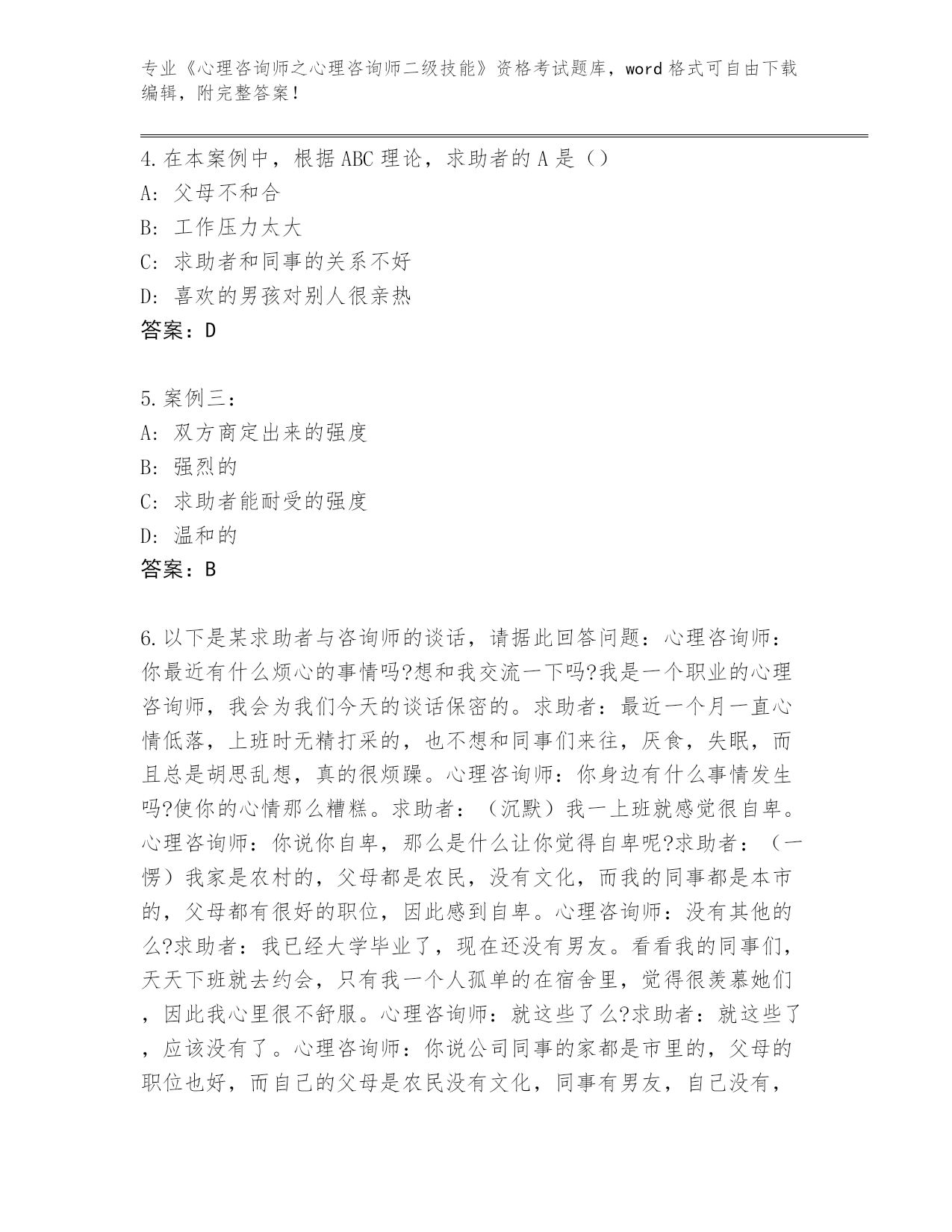河南省内部使用《心理咨询师之心理咨询师二级技能》资格考试完整版带答案(黄金题型)