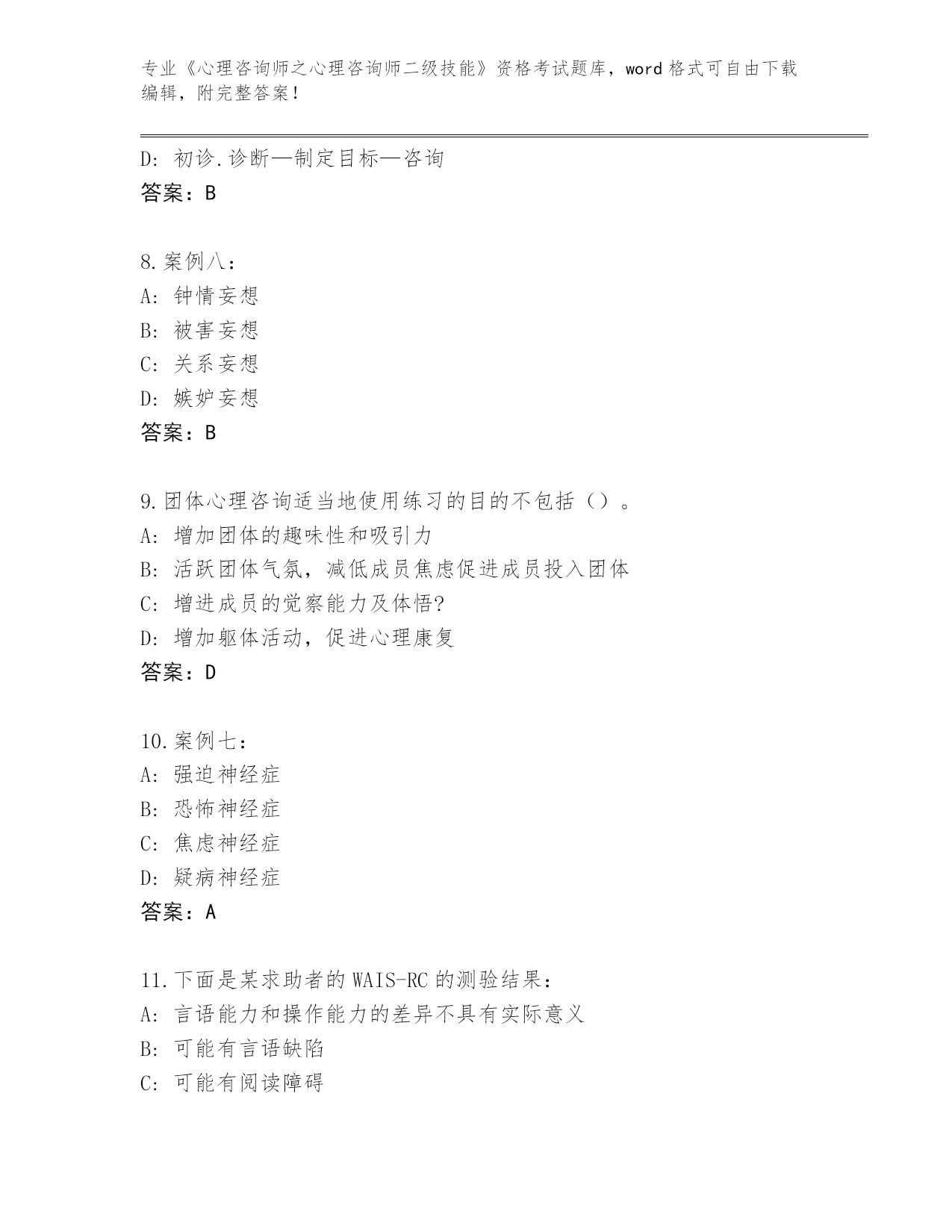 整理河南省《心理咨询师之心理咨询师二级技能》资格考试完整题库带答案(完整版)