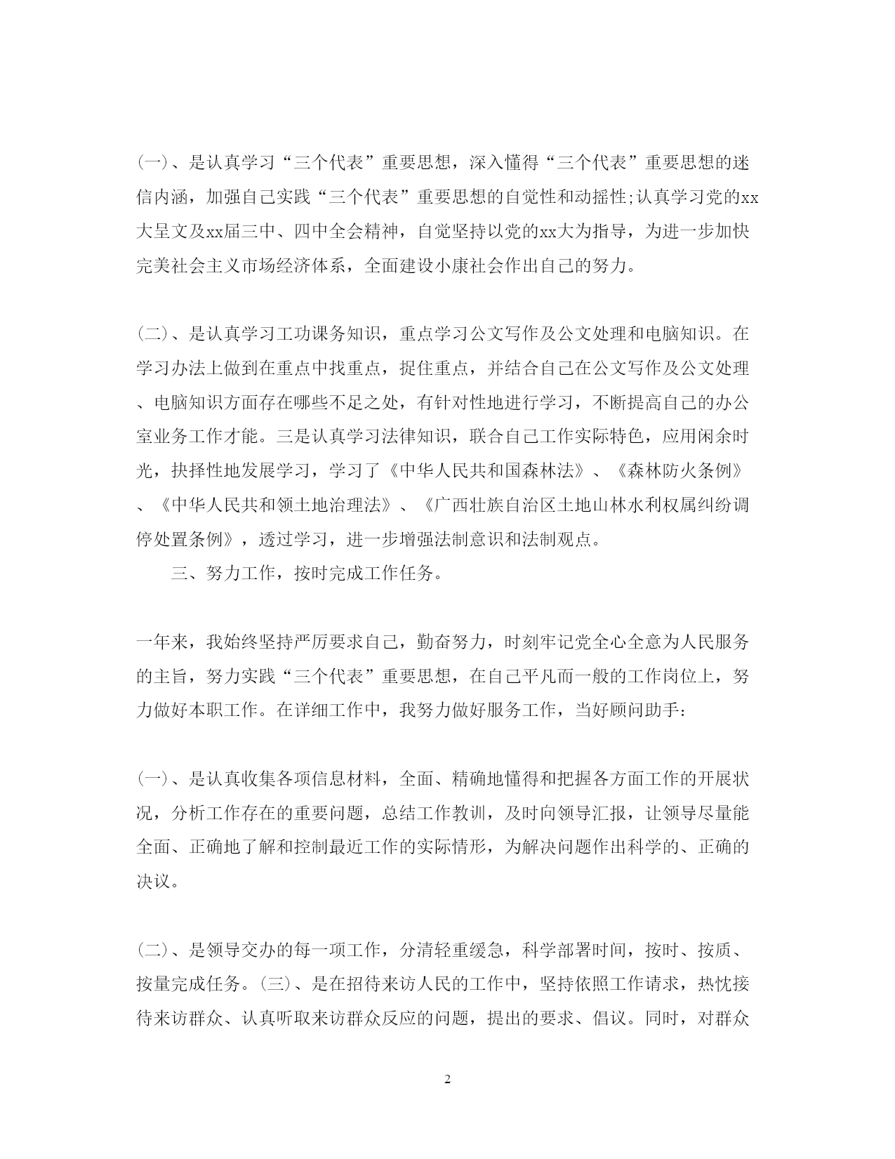此资料由网络收集而来,如有侵权请告知上传者立即删除。资料共分享,我们负责传递知识。PAGEPAGE7公务员的试用期总结范文每个职业都会有试用期的,公务员也不例外,那公务员试用期总结怎么写呢?下面小编就和大家分享公务员试用期总结,来欣赏一下吧。公务员试用期总结(一)试用期一年来,我坚持以马克思列宁主义,毛泽东思想,邓小平理论和“三个代表”主要思想为指导,自觉加强理论学习,认真学习“三个代表”重要思想、党的xx大演讲以及xx届三中全会精神,耐心研究业务知识,努力提高理论知识和业务工作水平。遵纪遵法,努力工作,认真实现引导交办的各项工作义务,在同道们的关怀、支撑和辅导下,我在思想、学习和工作等方面都有了很大的进步。现总结如下:一、严于律已,自觉加强党性锤炼,党性涵养和政治思想觉醒进一步提高一年来,我始终坚持应用马克思列宁主义的态度、观点和方式论,运用辩证唯物主义与历史唯物主义去剖析和察看事物,是非分明,坚持真谛,坚持正确的世界观、人生观、价值观,用准确的世界观、人生观、价值观指点本人的学习、工作和生涯实际,在思想上用心构筑抵抗资产阶层民主和自在化、拜金主义、自由主义等所有腐败思想侵蚀的牢固防线。酷爱祖国,热爱中国共产党,热爱社会主义,拥护中国共产党的领导,拥戴改造开放,深信社会主义终极必定克服资本主义,对社会主义充斥必胜的信念。认真贯彻履行党的路线、方针、政策,为加快社会主义建设事业认真做好本职工作。工作踊跃自动,勤恳努力,不畏艰巨,渎职尽责,在平常的工作岗位上作出力不胜任的奉献。二、强化理论和业务学习,不断提高自身综合素质。我器重增强实践跟业务常识学习,在工作中,持续一边工作一边学习,一向进步本身综合素质程度。(一)、是认真学习“三个代表”重要思想,深入懂得“三个代表”重要思想的迷信内涵,加强自己实践“三个代表”重要思想的自觉性和动摇性;认真学习党的xx大呈文及xx届三中、四中全会精神,自觉坚持以党的xx大为指导,为进一步加快完美社会主义市场经济体系,全面建设小康社会作出自己的努力。(二)、是认真学习工功课务知识,重点学习公文写作及公文处理和电脑知识。在学习办法上做到在重点中找重点,捉住重点,并结合自己在公文写作及公文处理、电脑知识方面存在哪些不足之处,有针对性地进行学习,不断提高自己的办公室业务工作才能。三是认真学习法律知识,联合自己工作实际特色,应用闲余时光,抉择性地发展学习,学习了《中华人民共和国森林法》、《森林防火条例》、《中华人民共和领土地治理法》、《广西壮族自治区土地山林水利权属纠纷调停处置条例》,透过学习,进一步增强法制意识和法制观点。三、努力工作,按时完成工作任务。一年来,我始终坚持严厉要求自己,勤奋努力,时刻牢记党全心全意为人民服务的主旨,努力实践“三个代表”重要思想,在自己平凡而一般的工作岗位上,努力做好本职工作。在详细工作中,我努力做好服务工作,当好顾问助手:(一)、是认真收集各项信息材料,全面、精确地懂得和把握各方面工作的开展状况,分析工作存在的重要问题,总结工作教训,及时向领导汇报,让领导尽量能全面、正确地了解和控制最近工作的实际情形,为解决问题作出科学的、正确的决议。(二)、是领导交办的每一项工作,分清轻重缓急,科学部署时间,按时、按质、按量完成任务。(三)、是在招待来访人民的工作中,坚持依照工作请求,热忱接待来访群众、认真听取来访群众反应的问题,提出的要求、倡议。同时,对群众要求解决但一时又解决不了的问题认真说明,耐烦做好群众的思想工作,让群众信任政府。在同志们的关心、支持和赞助下,各项服务工作均取得了美满完成任务的好成就,得到领导和大众确定。回想一年来的工作,我在思想上、学习上、工作上取得了新的先进,但我也意识到自己的不足之处,理论知识水平还比拟低,现代理公技巧还不强。今后,我必定认真战胜毛病,发挥成绩,自觉把自己置于党组织和干部的监视之下,刻苦学习、勤奋工作,做一名及格的国民公务员,为全面建设小康社会目的作出自己的贡献!公务员试用期总结(二)转眼间加入到公务员这支优秀的队伍中已经有半年的时间了,半年来,我始终热衷于本职工作,严格要求自己,摆正工作位置,时刻持续谦虚、谨慎、律己的态度,在领导的关心栽培和同事们的帮忙支持下,始终勤奋学习、用心进取,努力提高自我,始终勤奋工作,认真履行岗位职责,尽己所能,兢兢业业地做好本职工作,较好地完成了各项工作任务。现将近期思想、工作等方面状况总结如下:一、严于律己,不断提高思想政治素质按照政治坚强、业务精通的要求,我始终以提高自身素质为目标,坚持把学习放在首位,不断提高自身的思想政治素质和业务工作水平。平时认真学习马列主义、毛泽东思想、邓小平理论及“三个代表”重要思想,用心关注中央、省市的有关政策和我们建邺