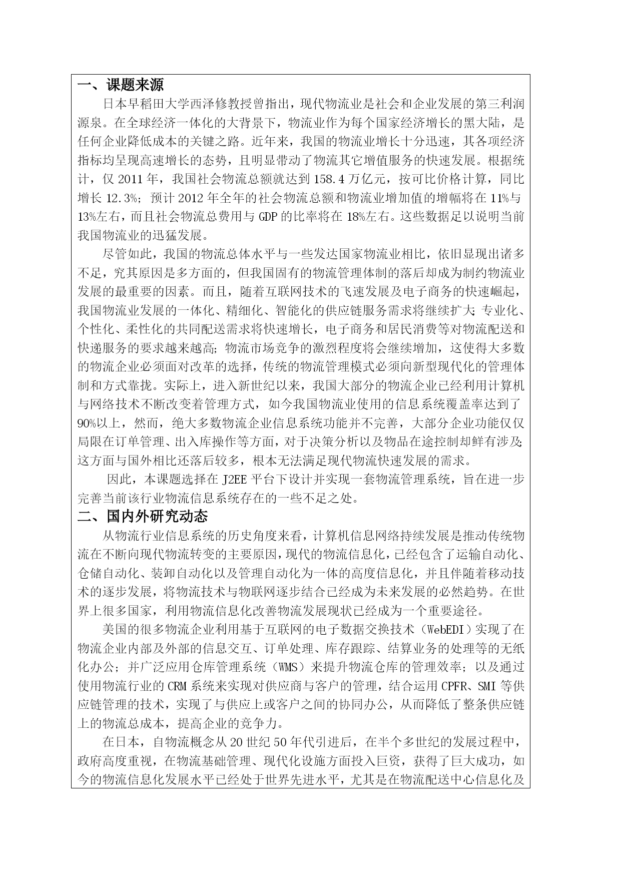 基于J2EE的物流管理系统的设计与实现开题报告.doc